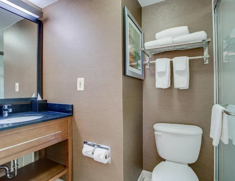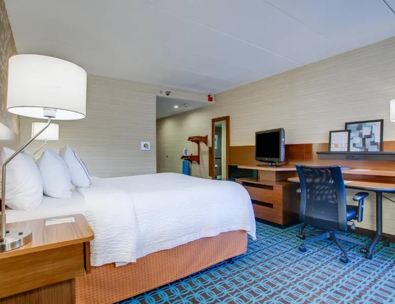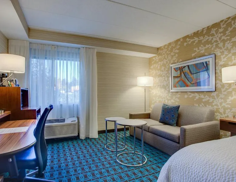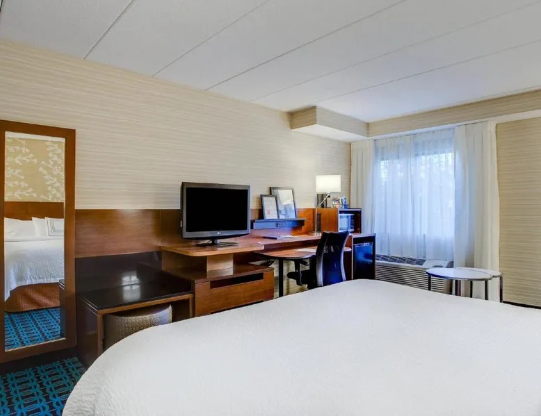 Comfortable Accommodations: Fairfield Inn by Marriott Burlington Williston in Williston offers air-conditioned rooms with private bathrooms, tea and coffee makers, and work desks. Each room includes a bath or shower, hairdryer, and seating area. Modern Facilities: Guests enjoy free WiFi, a fitness center, and a elevator. The hotel provides a 24-hour front desk, minimarket, business area, outdoor seating, and express check-in and check-out services. Free on-site parking is available. Convenient Location: Located 2.5 mi from Burlington International Airport, the hotel is near attractions such as University of Vermont - 6.2 mi), Centennial Field - 5.6 mi), and Green Mountain National Golf Course (25 mi). Highly rated for breakfast, room cleanliness, and staff support. The unit has 2 beds.