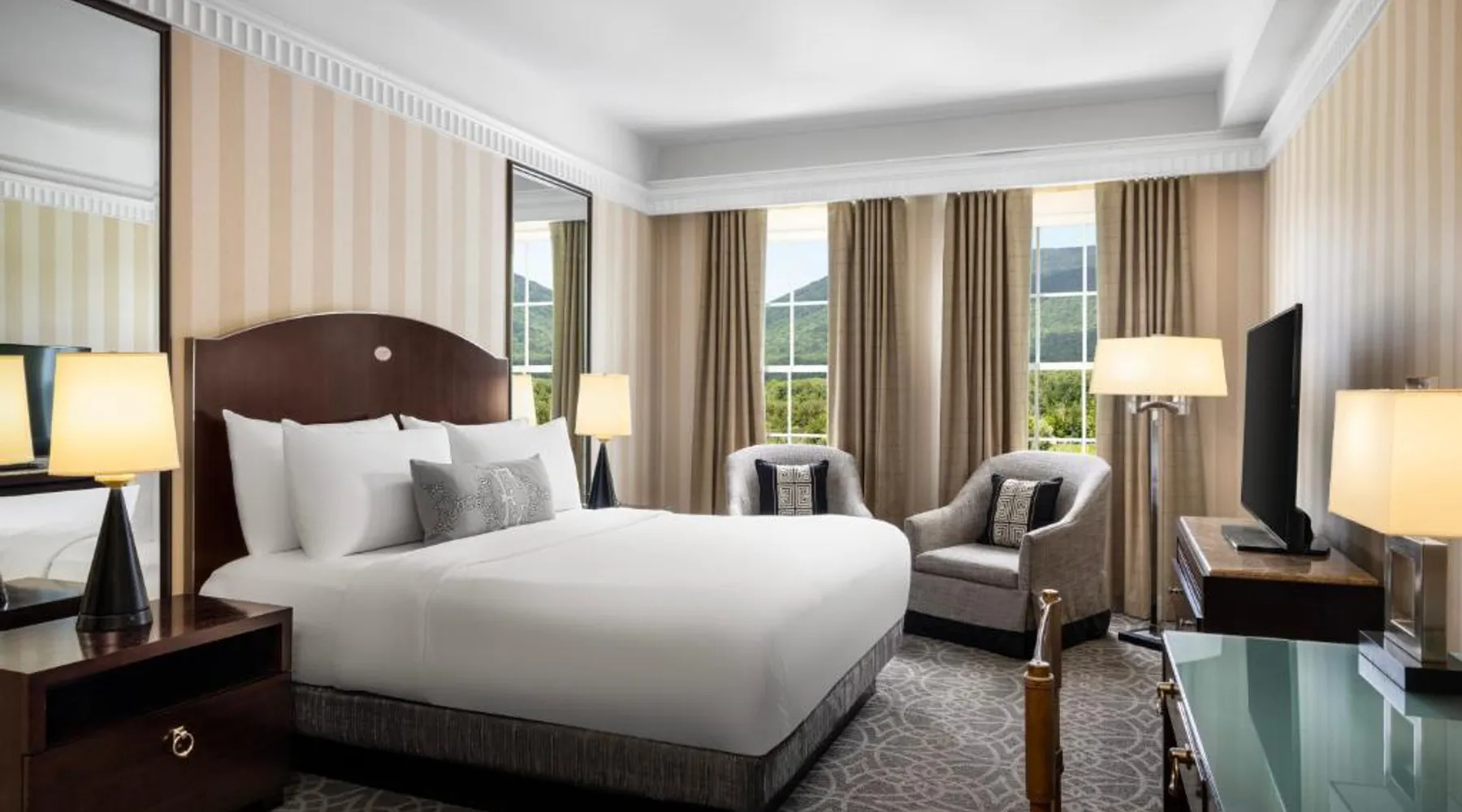 Surrounded by the scenic Green Mountains, this resort features a full-service spa and an 18-hole golf course. Guests can dine at various on-site restaurants. Bromley Mountain skiing is 10 miles away. The Equinox Resort features rooms with a flat-screen TV, private bathroom, and bathrobes. They are decorated in rich colors and plush bedding. Select rooms offer mountain or garden views. Facilities at the Manchester Equinox Resort include an indoor pool, a sauna, and a fitness center. Activities such as horseback riding and off-road driving are available. Enjoy fine dining at The Chop House, the Equinox’s on-site steak house. Dine outdoors at Dormy Grill or sip a cocktail the Falcon Bar. Various shops in Manchester Village are within 1 mile from the hotel. Cross country skiing at Hildene is a 5-minute drive away. This spacious suite features 1 living room, 2 separate bedrooms and 1 bathroom with a shower and free toiletries. The suite has carpeted floors, a seating area with a flat-screen TV with cable channels, air conditioning, a wardrobe, as well as a safe deposit box. The unit has 3 beds.