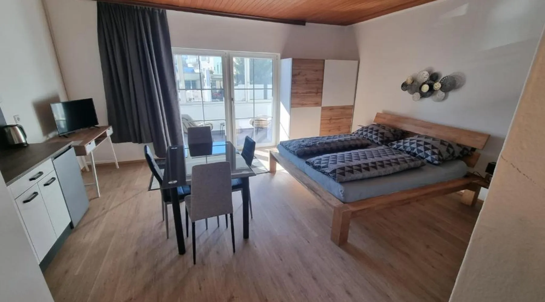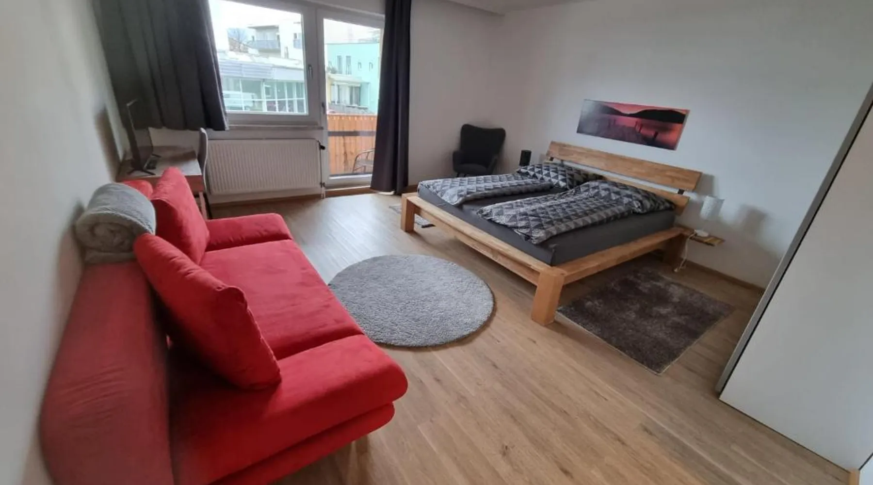 Comfortable Accommodations: Apartment- Zimmer Pernter in Köflach offers a well-appointed apartment with free WiFi and free on-site private parking. Guests enjoy a fully equipped kitchenette, private bathroom, and a balcony with outdoor furniture. Modern Amenities: The apartment features a dining area, work desk, and a seating area. Additional amenities include a tea and coffee maker, coffee machine, microwave, and TV. The kitchen is equipped with a refrigerator, stovetop, toaster, and electric kettle. Convenient Location: Located 24 mi from Graz Airport, the property is close to attractions such as Eggenberg Palace (22 mi) and Graz Central Station (27 mi). Guests appreciate the room cleanliness, convenient location, and the friendly host. Featuring 1 bedroom and 1 bathroom with a shower, this apartment offers a well-fitted kitchenette and a seating area. The fully equipped kitchenette has a stovetop, a refrigerator, kitchenware and a microwave. This apartment features a tea and coffee maker, a dining area, flat-screen TV with cable channels, as well as wine/champagne for guests. The unit has 2 beds.