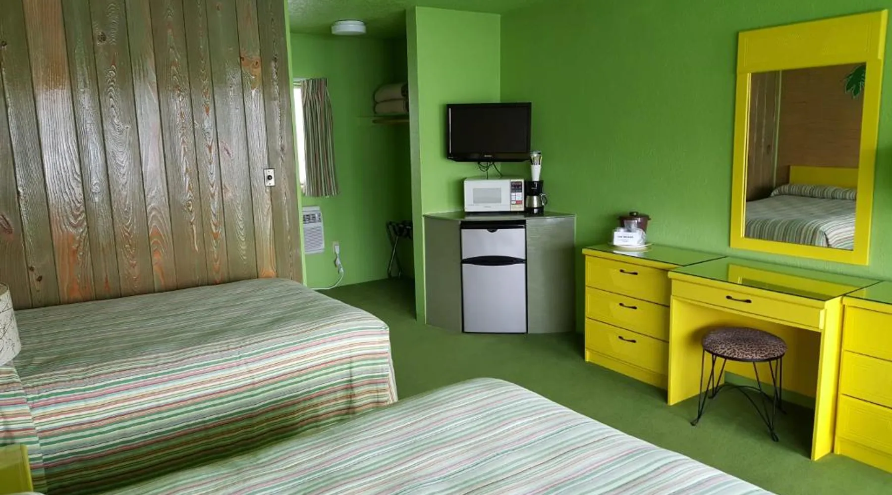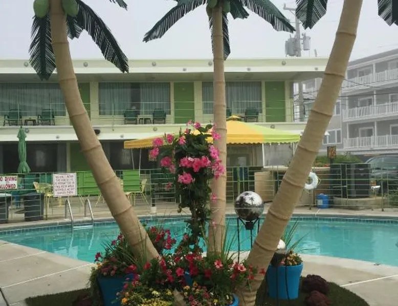 Comfortable Accommodations: Caribbean Motel in Wildwood Crest offers family rooms with private bathrooms, air-conditioning, and free WiFi. Each room includes a refrigerator, microwave, TV, and carpeted floors. Leisure Facilities: Guests can relax on the sun terrace, in the garden, or by the seasonal outdoor swimming pool. The property features an outdoor seating area, picnic spots, and barbecue facilities. Convenient Location: Located 40 mi from Atlantic City International Airport, the motel is a short walk from Wildwood Crest Beach and close to attractions such as Wildwoods Convention Center and Morey's Piers. Guest Satisfaction: Highly rated for its swimming pool, beach access, and room cleanliness, Caribbean Motel ensures a pleasant stay for all visitors. The well-fitted kitchenette has a stovetop, a refrigerator, kitchenware and a microwave. This air-conditioned double room is consisted of of a flat-screen TV with cable channels, a private bathroom as well as outdoor furniture. The unit has 2 beds.