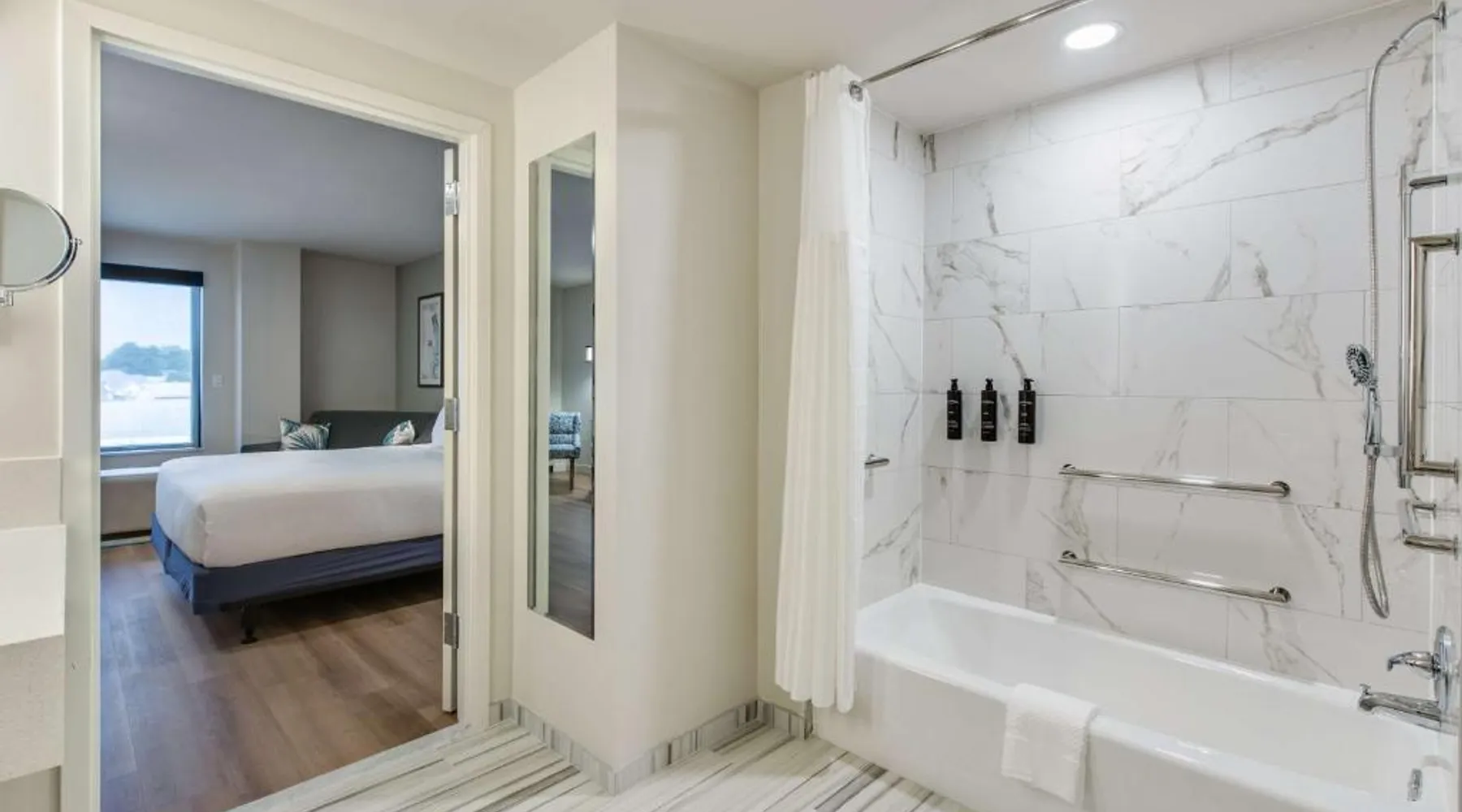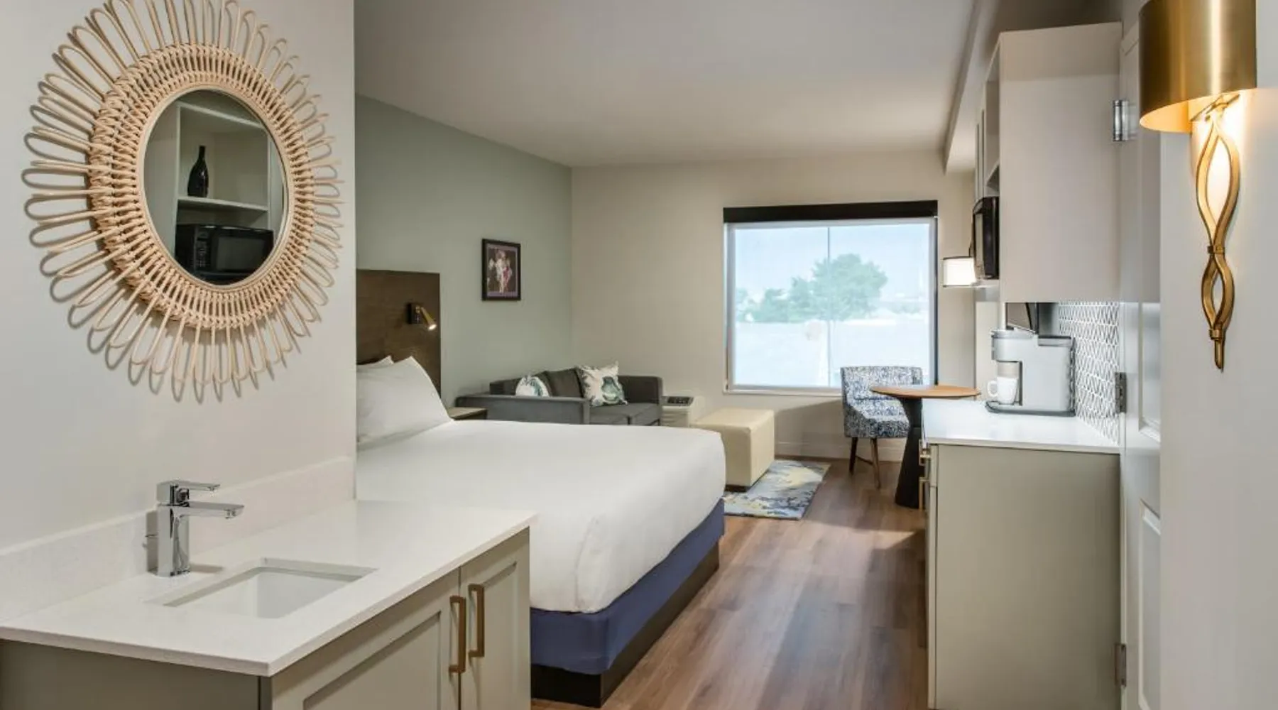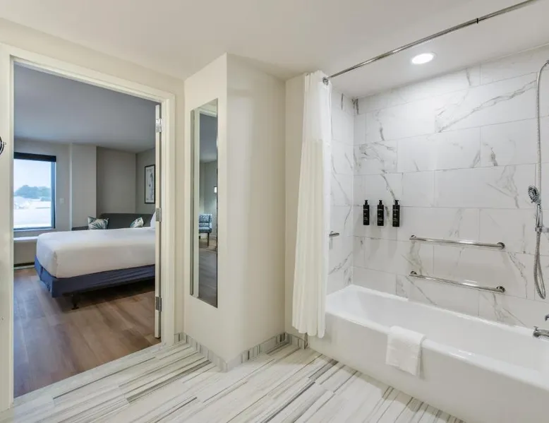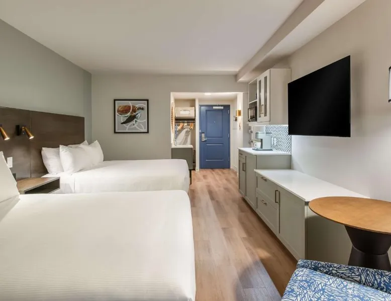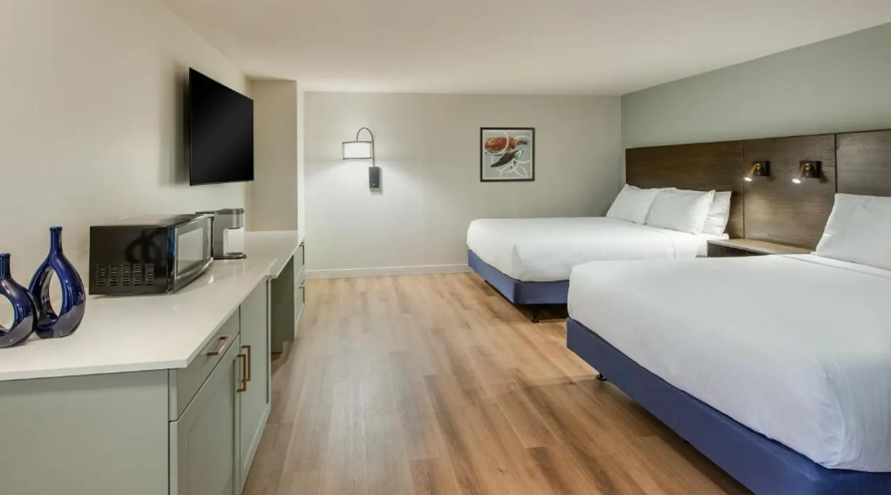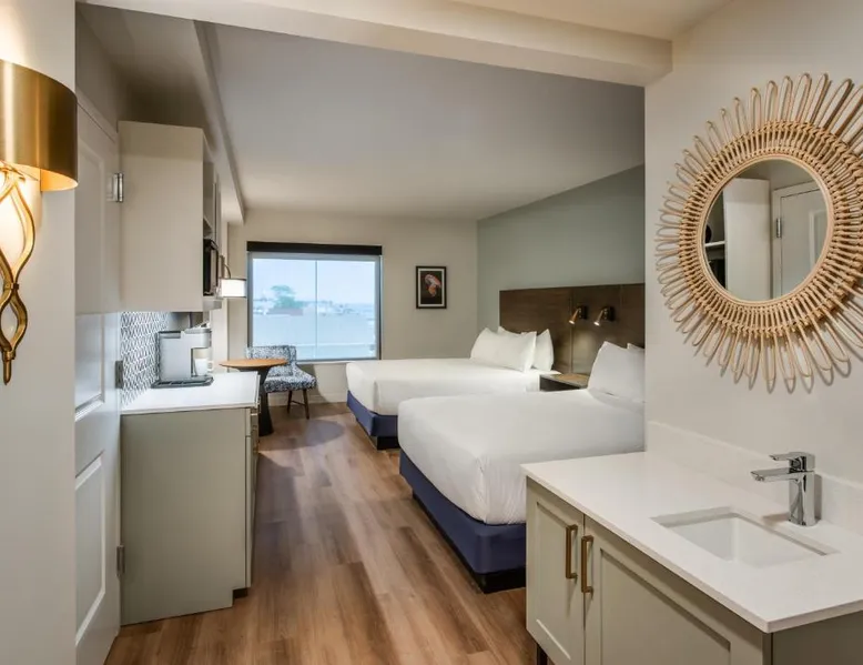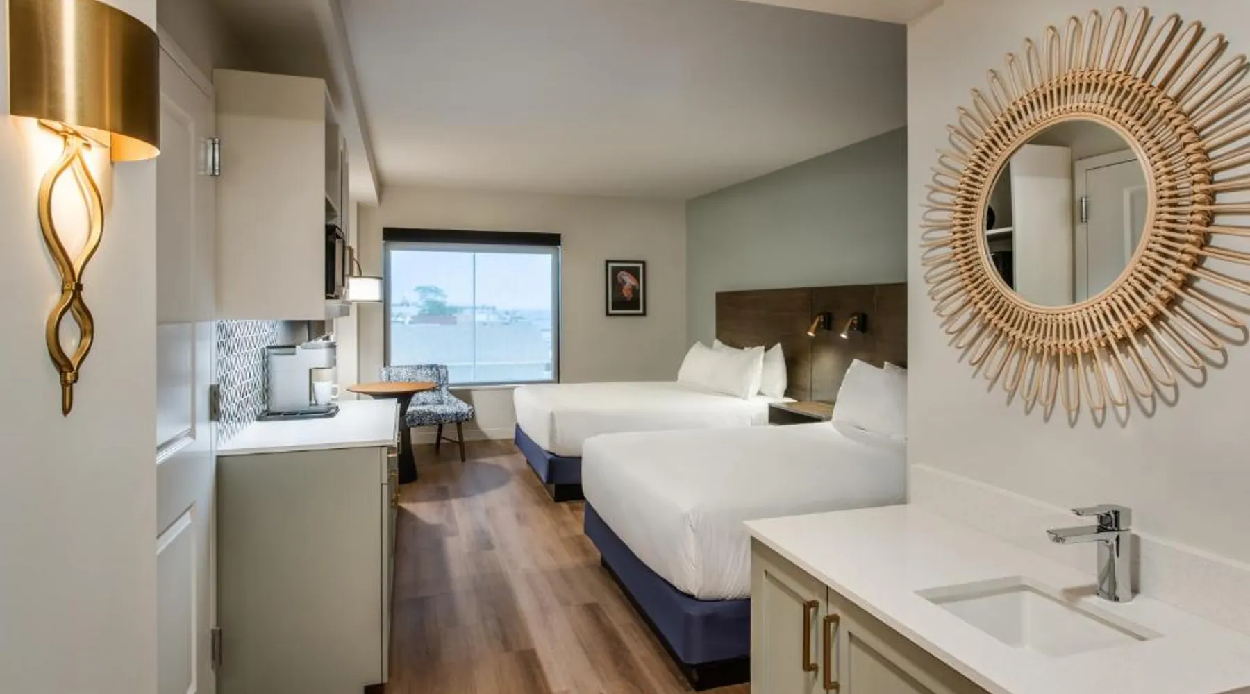 Welcome to Rehoboth Beach’s latest upscale boutique hotel and restaurant experience. This destination property is designed to celebrate one of the greatest natural treasures in one of the most unique (and historic) beach towns in North America. Famous for its distinctive vintage charm, from the beautiful coastal views to the iconic boardwalk, Rehoboth Beach is a must-visit mid-Atlantic Ocean destination filled with artistic appeal, one-of-a kind dining destinations, eclectic shops along with family friendly amusements and attractions for every generation to enjoy. Coast Rehoboth Beach amenities in room include: Coastal modern accommodations Complimentary bottled water Keurig Coffee Maker with local coffee from Rise Up Wet Bar with Mini refrigerator and microwave Luxurious bathrobes Premium bathroom amenities Hotel offerings Complimentary WiFi Complimentary Parking onsite Chilled bottled water upon arrival Rooftop Indoor Pool Rooftop Outdoor Patio with Firepit Fitness center with free weights, Peleton and cardio equipment Onsite guest laundry Daily cheese and wine event Signature water infusions Weekly sunrise yoga on rooftop patio Weekly pool activities in season Golf Cart transportation to and from Rehoboth Beach and Boardwalk Bicycle rental partnership Walking distance to dozens of restaurants, bars, shopping, boardwalk games, family activities and the beach. The quadruple room features air conditioning, a tea and coffee maker, a safe deposit box, heating and a flat-screen TV. The unit has 2 beds.
