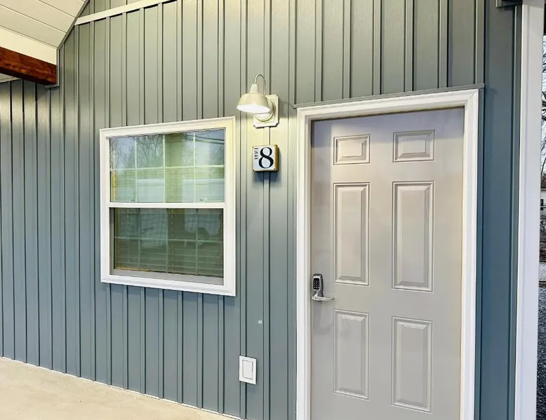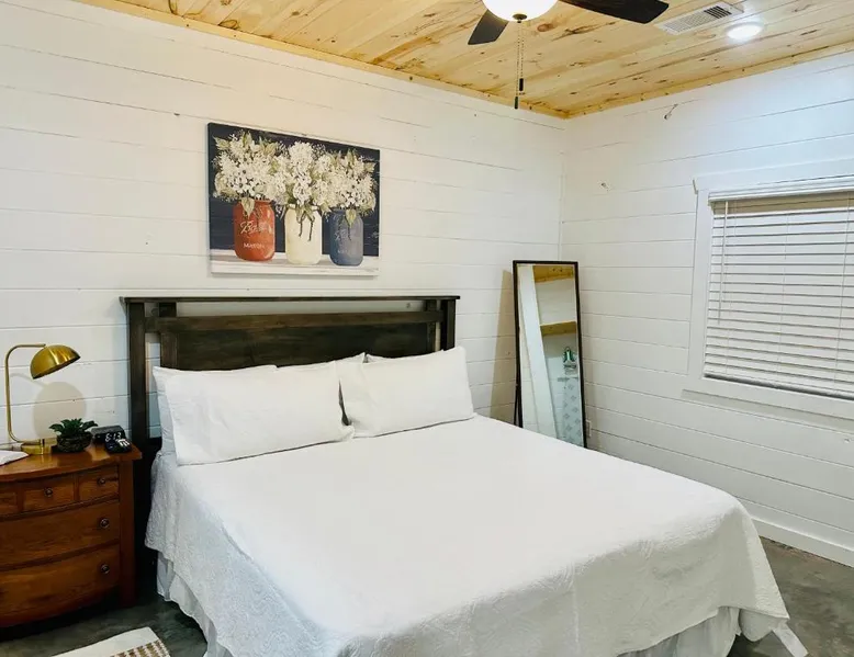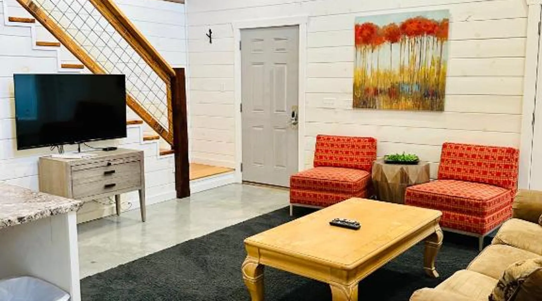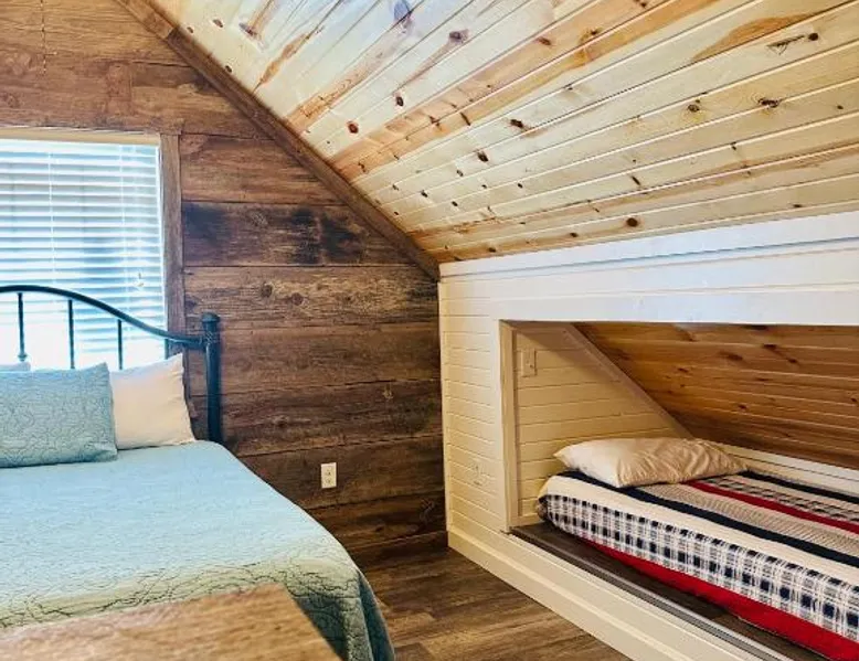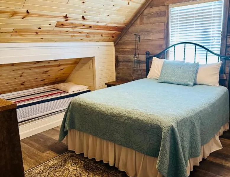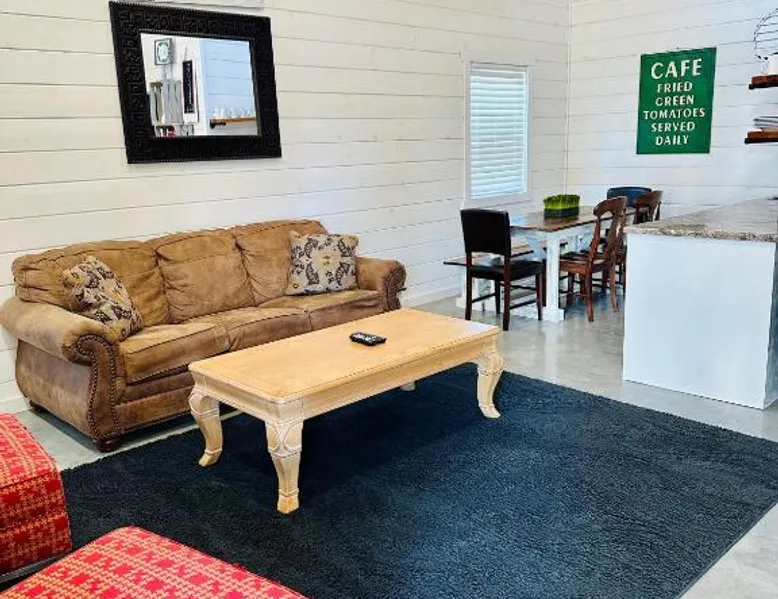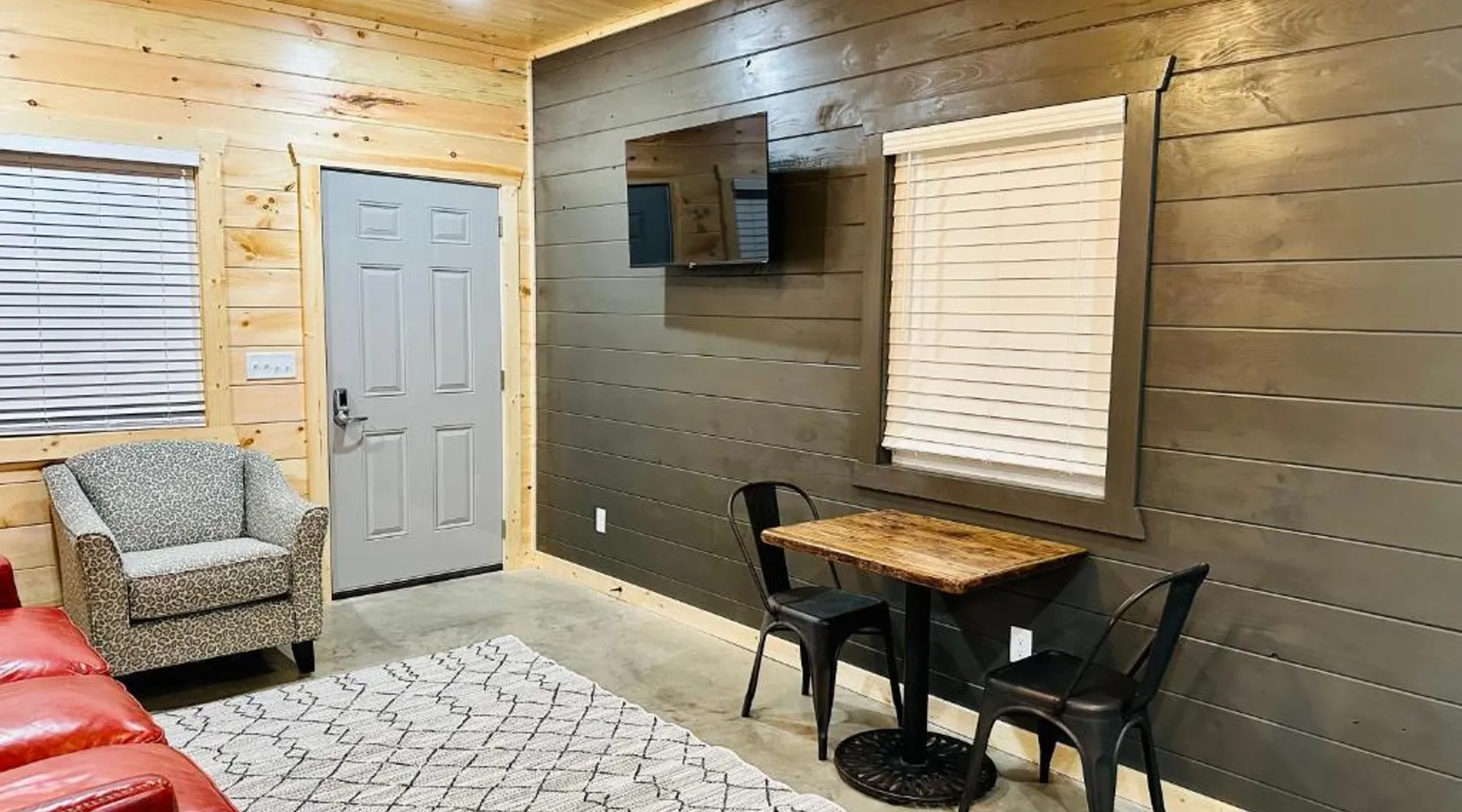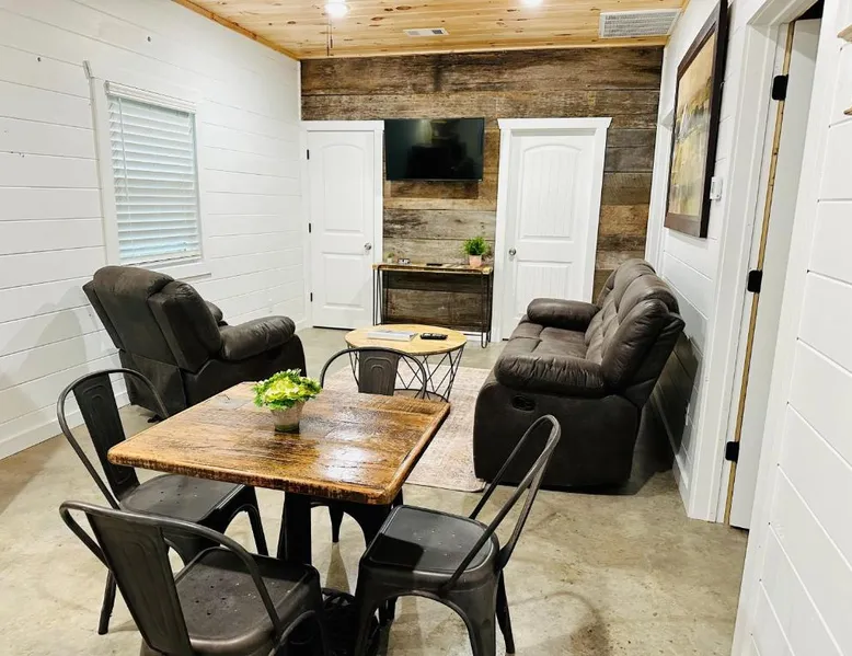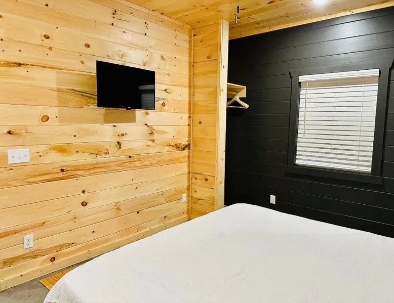 Elegant Accommodations: Knotty Squirrel Cabins in Mountain View offers 5-star comfort with free WiFi and a spacious terrace. Each room features air-conditioning, a private bathroom, and a kitchenette. Comfortable Amenities: Guests enjoy free on-site private parking, an outdoor seating area, and family rooms. Additional amenities include a dining table, sofa, and a fully equipped kitchen. Prime Location: Located on a quiet street, the hotel is 82 mi from Boone County Airport. Nearby attractions include hiking and cycling opportunities. Guest Satisfaction: Highly rated for room cleanliness, convenient location, and the location of the property. This spacious suite consists of 1 living room, 1 separate bedroom and 1 bathroom with a walk-in shower and free toiletries. Meals can be prepared in the kitchenette, which is equipped with a refrigerator, kitchenware, a microwave and a tea and coffee maker. This air-conditioned suite includes a dining area, a flat-screen TV with cable channels a private entrance and a terrace. The unit offers 1 bed.