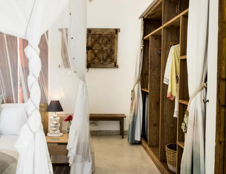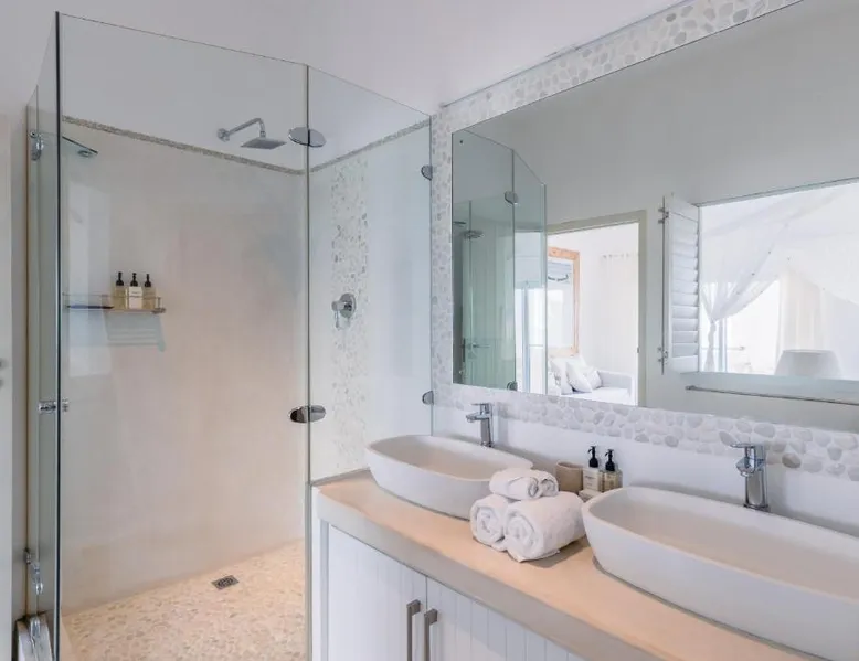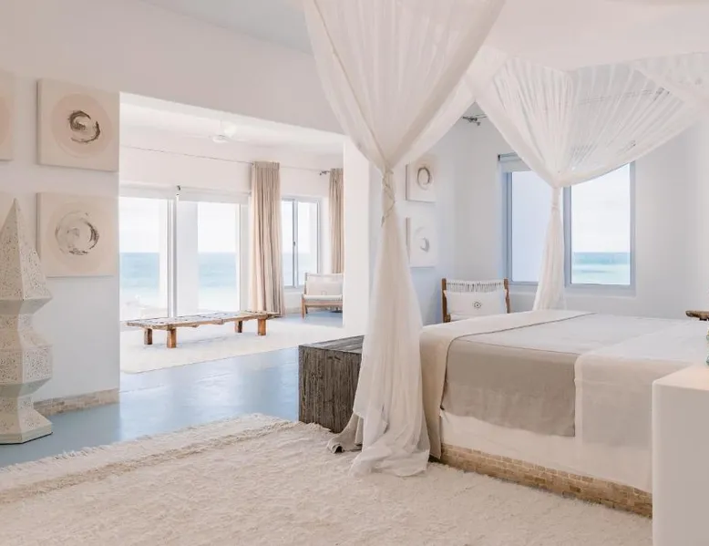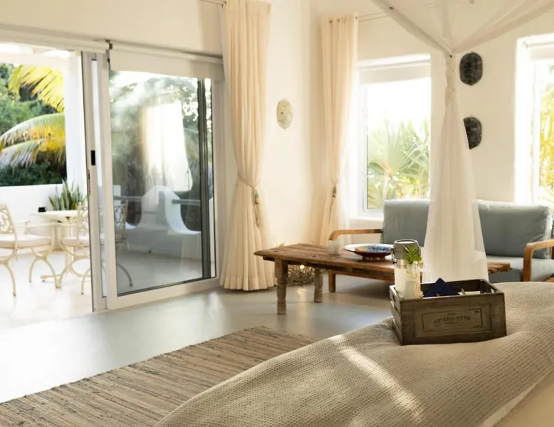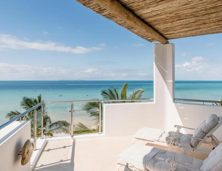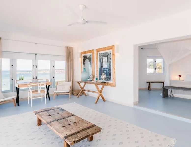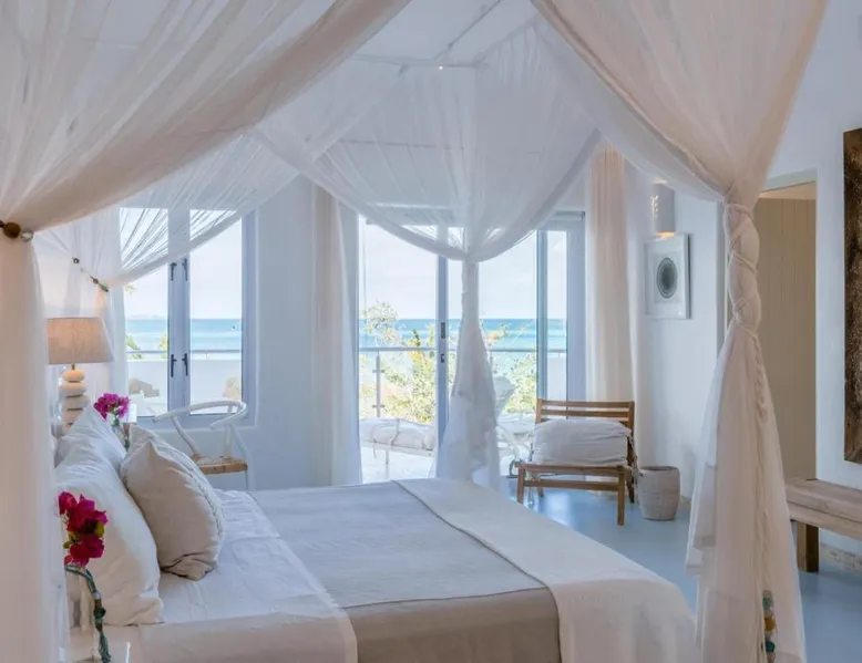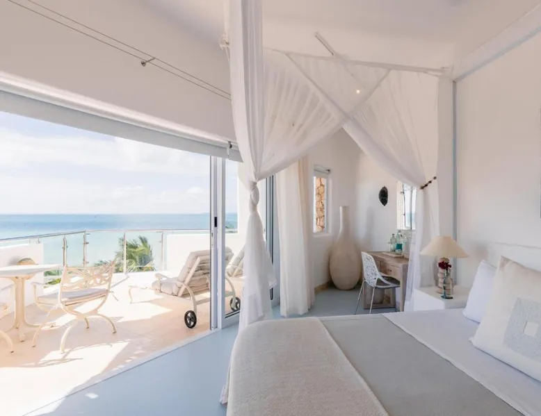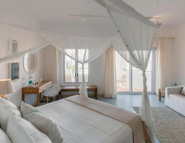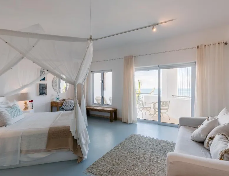 Beachfront Location: Villa Santorini in Vilanculos offers direct beachfront access with stunning sea views. Guests can relax on the sun terrace or take a dip in the swimming pool with a view. Spa Facilities: The resort features spa facilities, including a sauna and steam room. Beauty services are available for added relaxation. Dining Experience: The family-friendly restaurant serves Mediterranean, Portuguese, and international cuisines. Breakfast options include continental, buffet, full English/Irish, and vegetarian. Activities and Amenities: Guests can enjoy water sports, yoga classes, film nights, and canoeing. Free WiFi is available throughout the property. The spacious double room offers air conditioning, a seating area, a balcony with sea views as well as a private bathroom featuring a walk-in shower. The unit offers 1 bed.