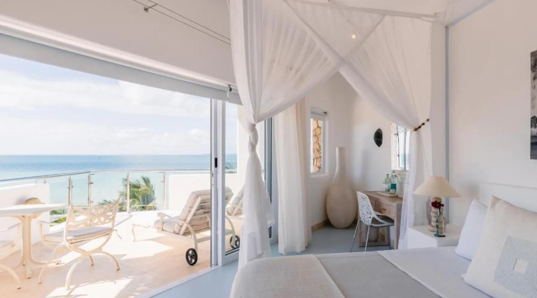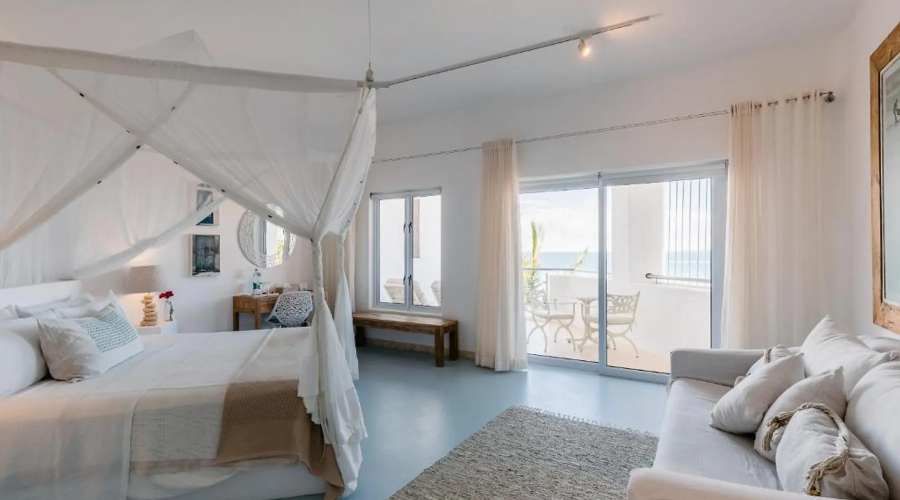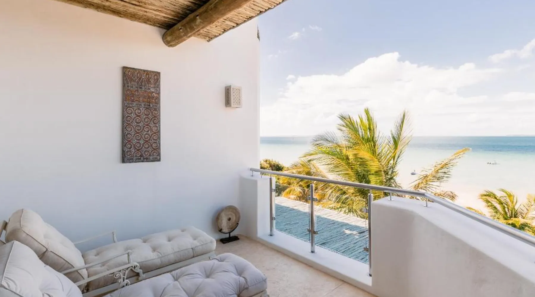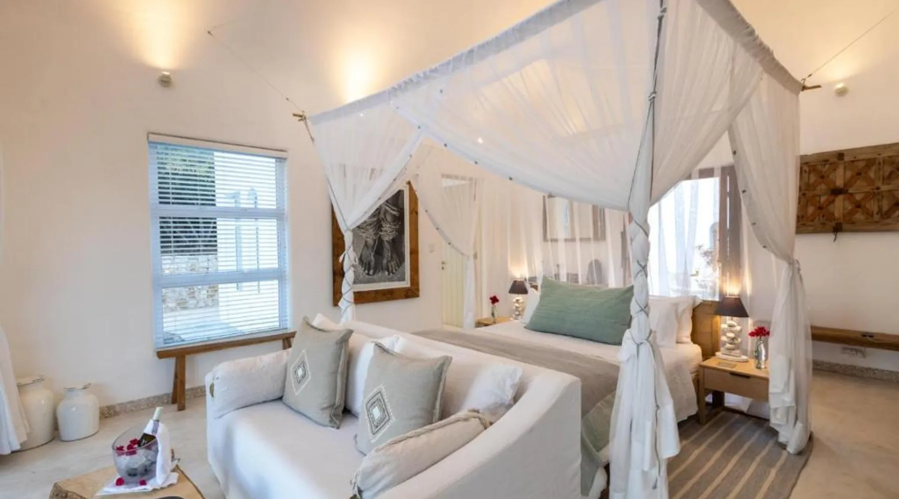 Beachfront Location: Villa Santorini in Vilanculos offers direct beachfront access with stunning sea views. Guests can relax on the sun terrace or take a dip in the swimming pool with a view. Spa Facilities: The resort features spa facilities, including a sauna and steam room. Beauty services are available for added relaxation. Dining Experience: The family-friendly restaurant serves Mediterranean, Portuguese, and international cuisines. Breakfast options include continental, buffet, full English/Irish, and vegetarian. Activities and Amenities: Guests can enjoy water sports, yoga classes, film nights, and canoeing. Free WiFi is available throughout the property. The spacious double room offers air conditioning, a seating area, a balcony with sea views as well as a private bathroom featuring a walk-in shower. The unit offers 1 bed.