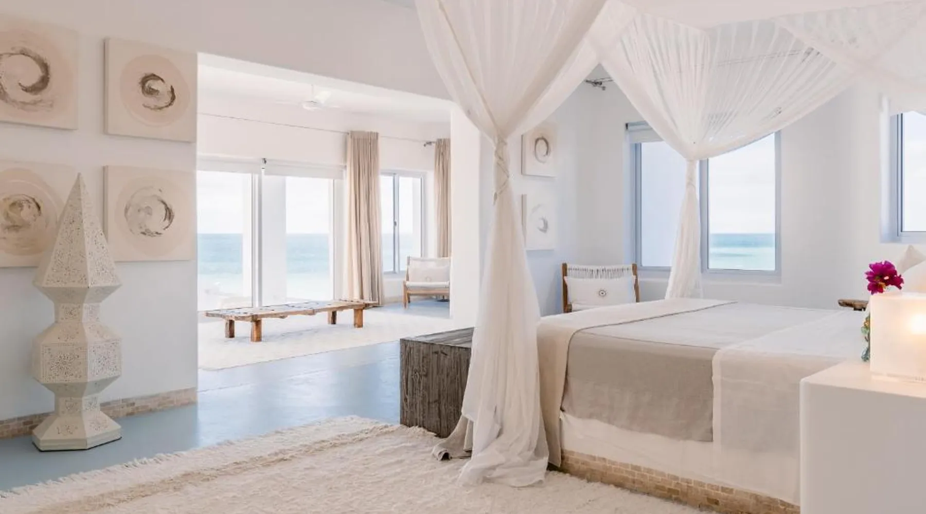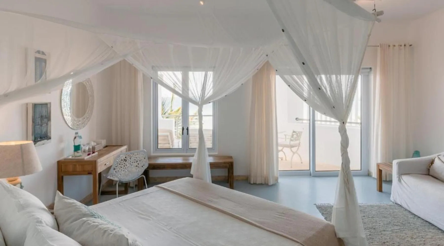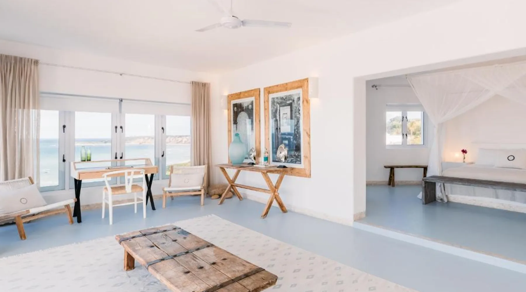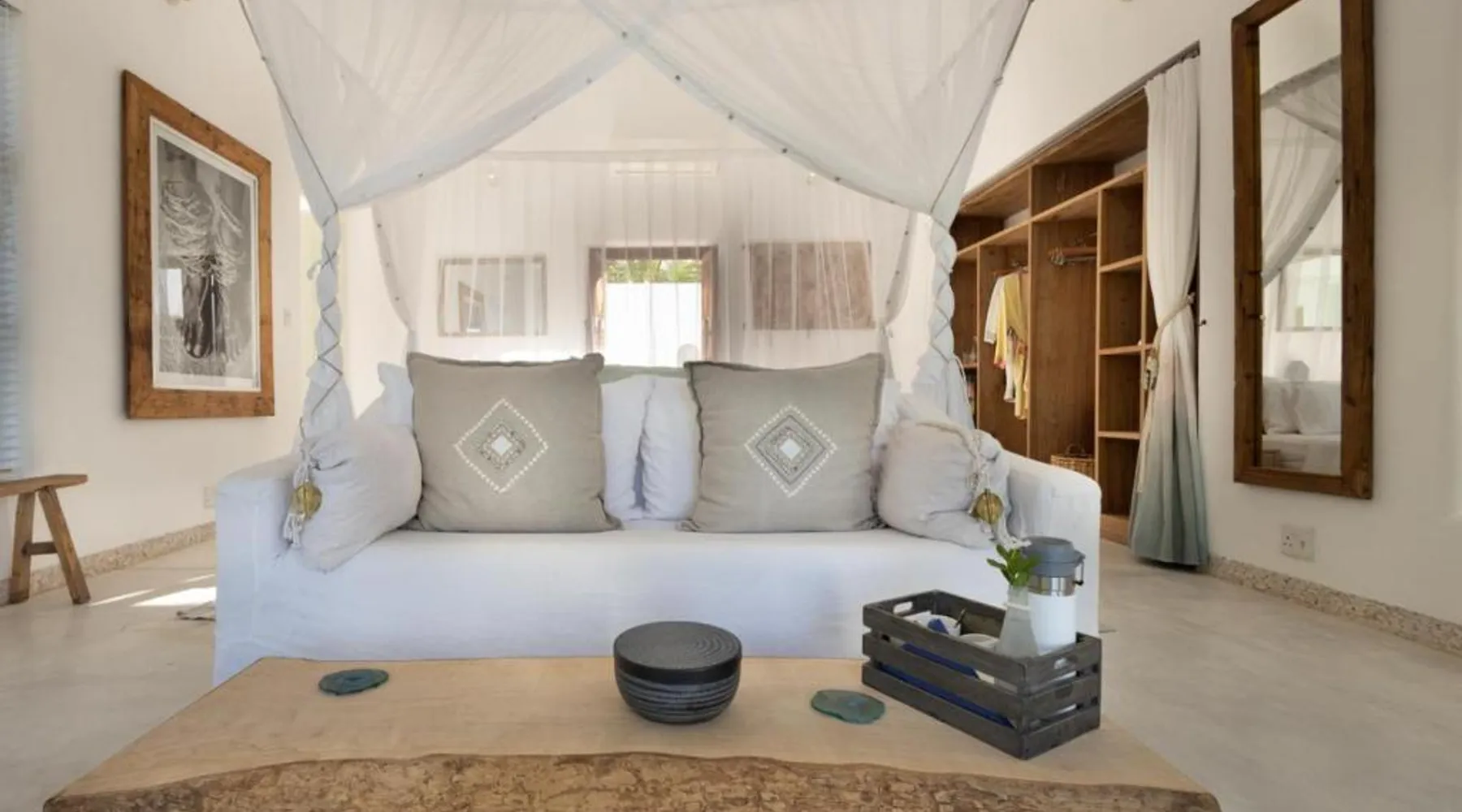 Beachfront Location: Villa Santorini in Vilanculos offers direct beachfront access with stunning sea views. Guests can relax on the sun terrace or take a dip in the swimming pool with a view. Spa Facilities: The resort features spa facilities, including a sauna and steam room. Beauty services are available for added relaxation. Dining Experience: The family-friendly restaurant serves Mediterranean, Portuguese, and international cuisines. Breakfast options include continental, buffet, full English/Irish, and vegetarian. Activities and Amenities: Guests can enjoy water sports, yoga classes, film nights, and canoeing. Free WiFi is available throughout the property. The spacious double room offers air conditioning, a seating area, a balcony with sea views as well as a private bathroom featuring a walk-in shower. The unit offers 1 bed.