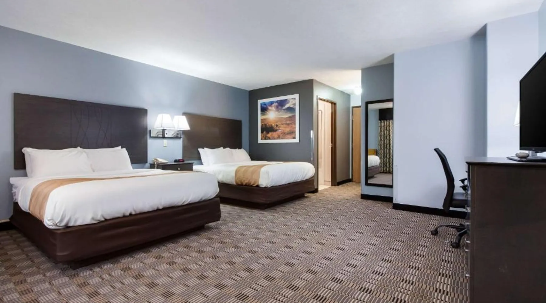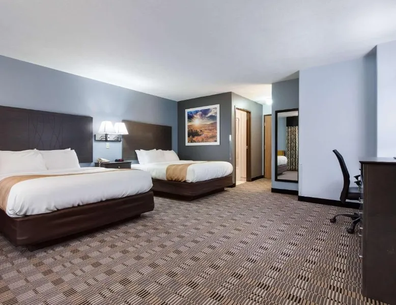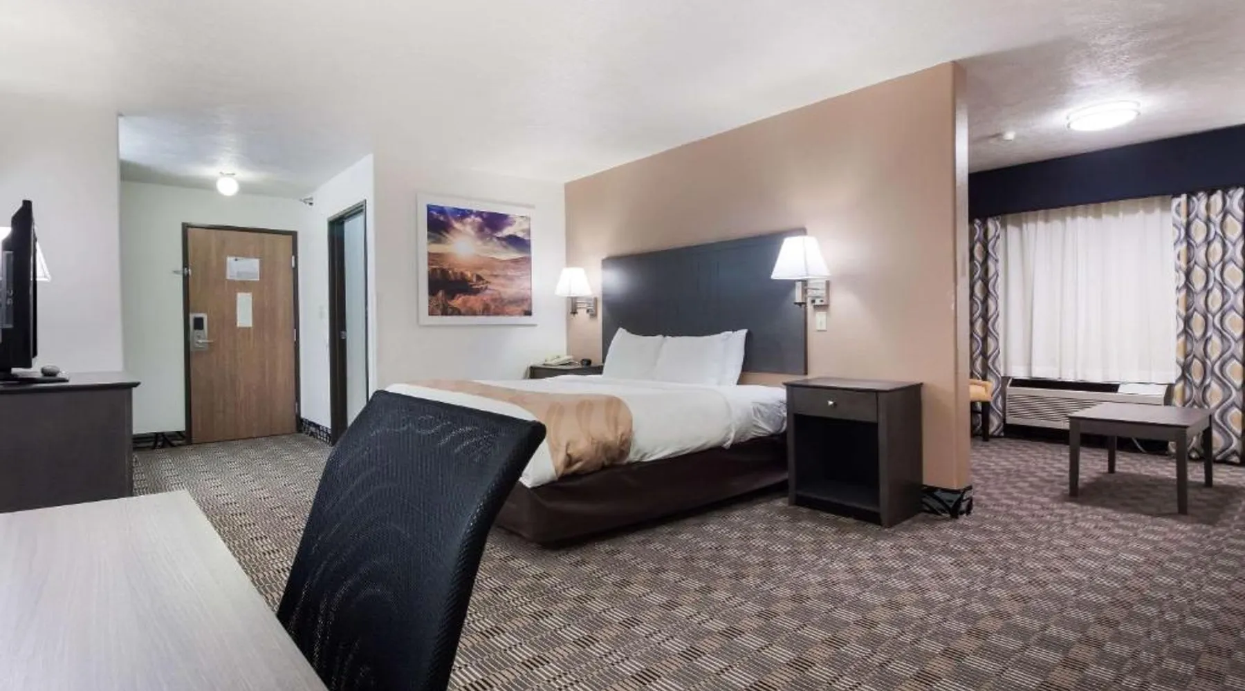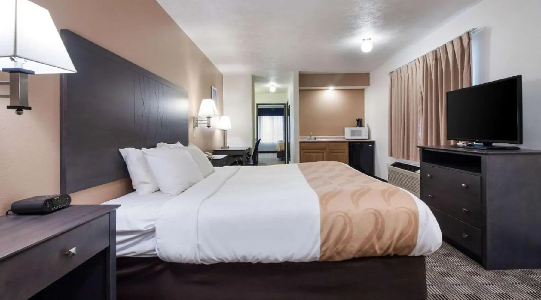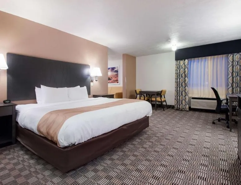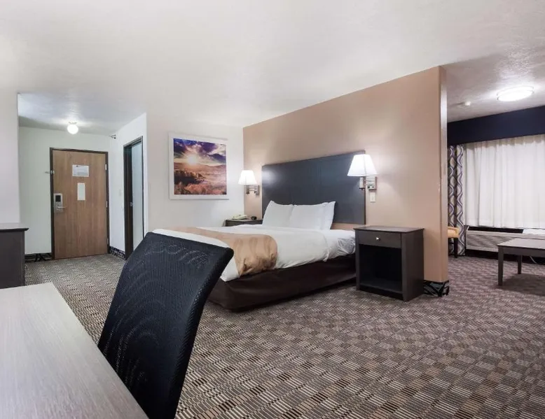 Comfortable Accommodations: Quality Inn & Suites in McCook offers family rooms with free WiFi, air-conditioning, and private bathrooms. Each room includes a tea and coffee maker, hairdryer, refrigerator, microwave, TV, and work desk. Leisure Facilities: Guests can enjoy an outdoor swimming pool, lounge, and picnic area. The hotel provides a business area, full-day security, and free on-site private parking. Convenient Location: Located 3.1 mi from McCook Ben Nelson Regional Airport, the hotel offers easy access to local attractions. This suite's special feature is the spa bath. This suite features a tea and coffee maker, a seating area and a TV with cable channels.