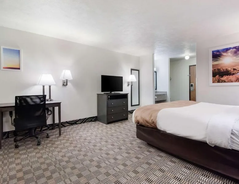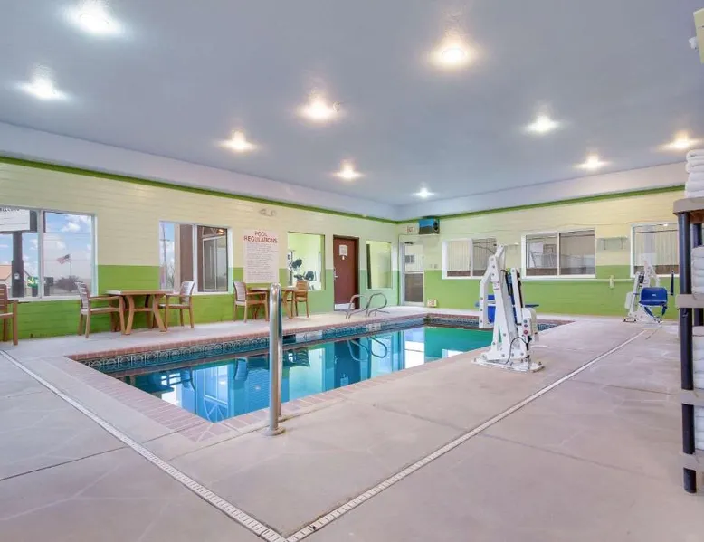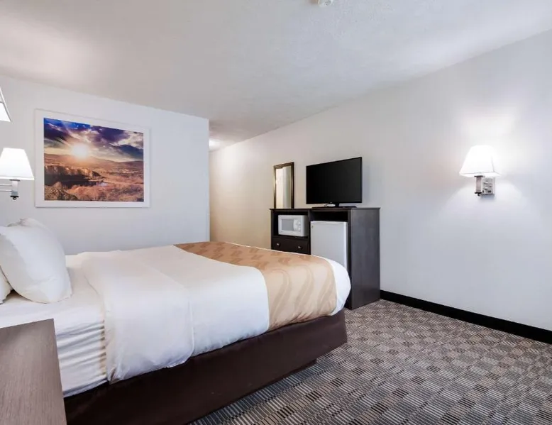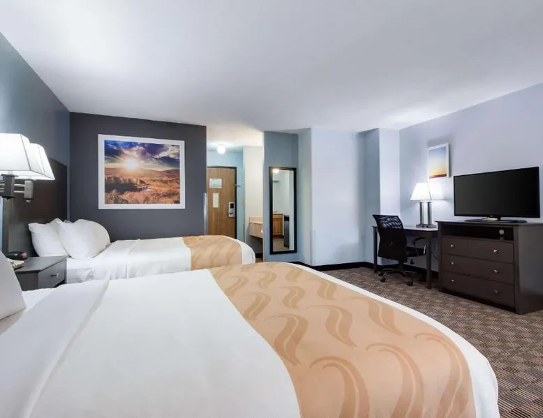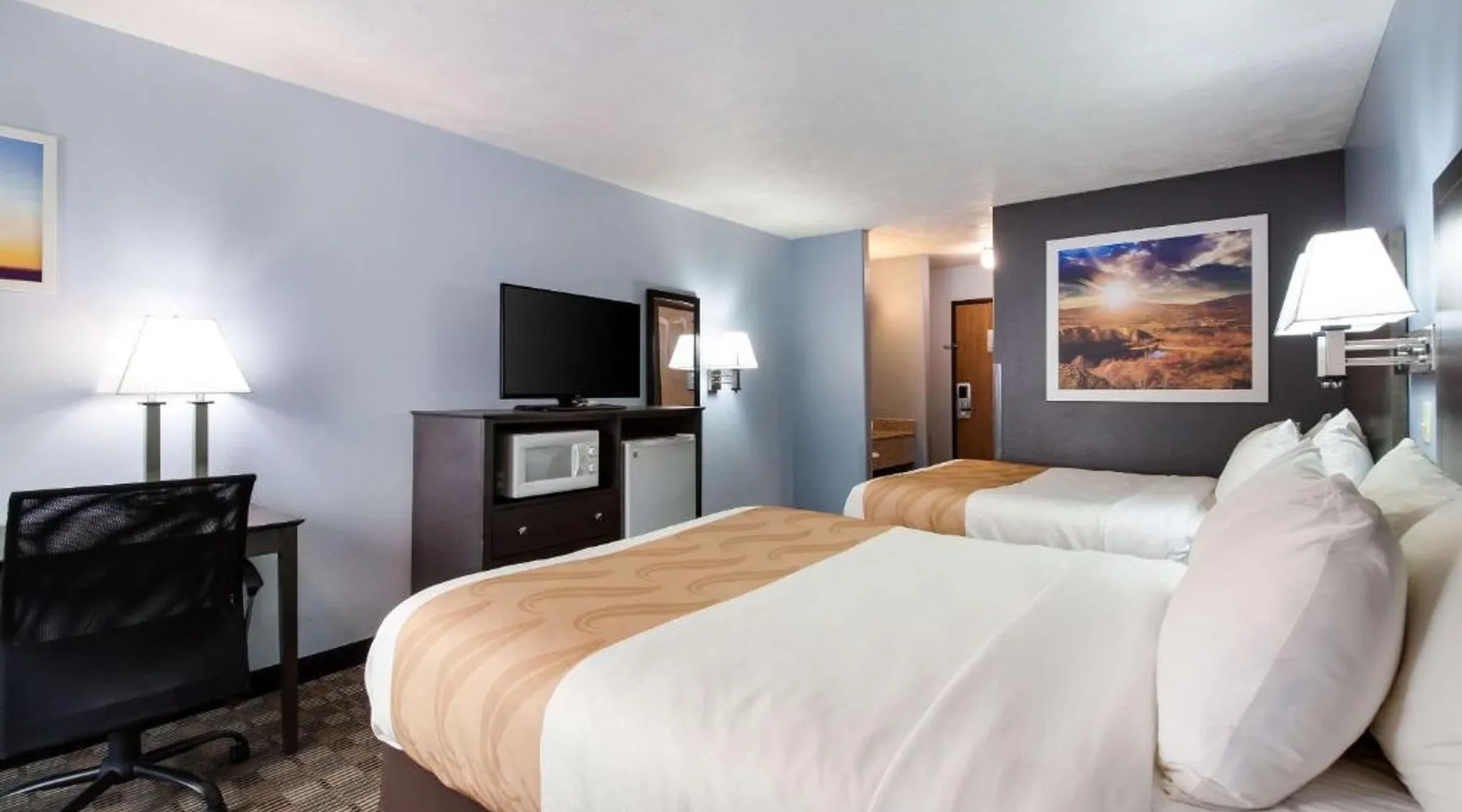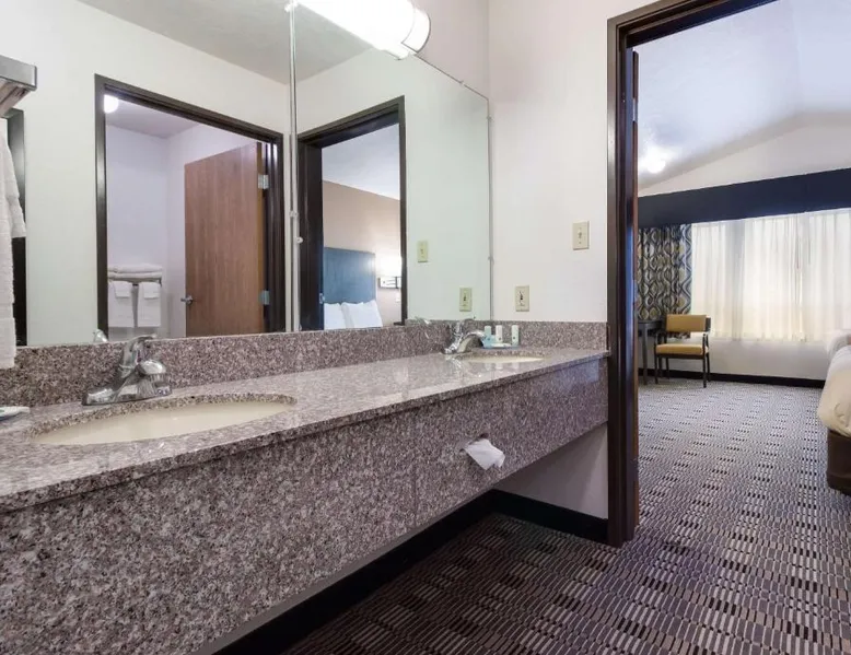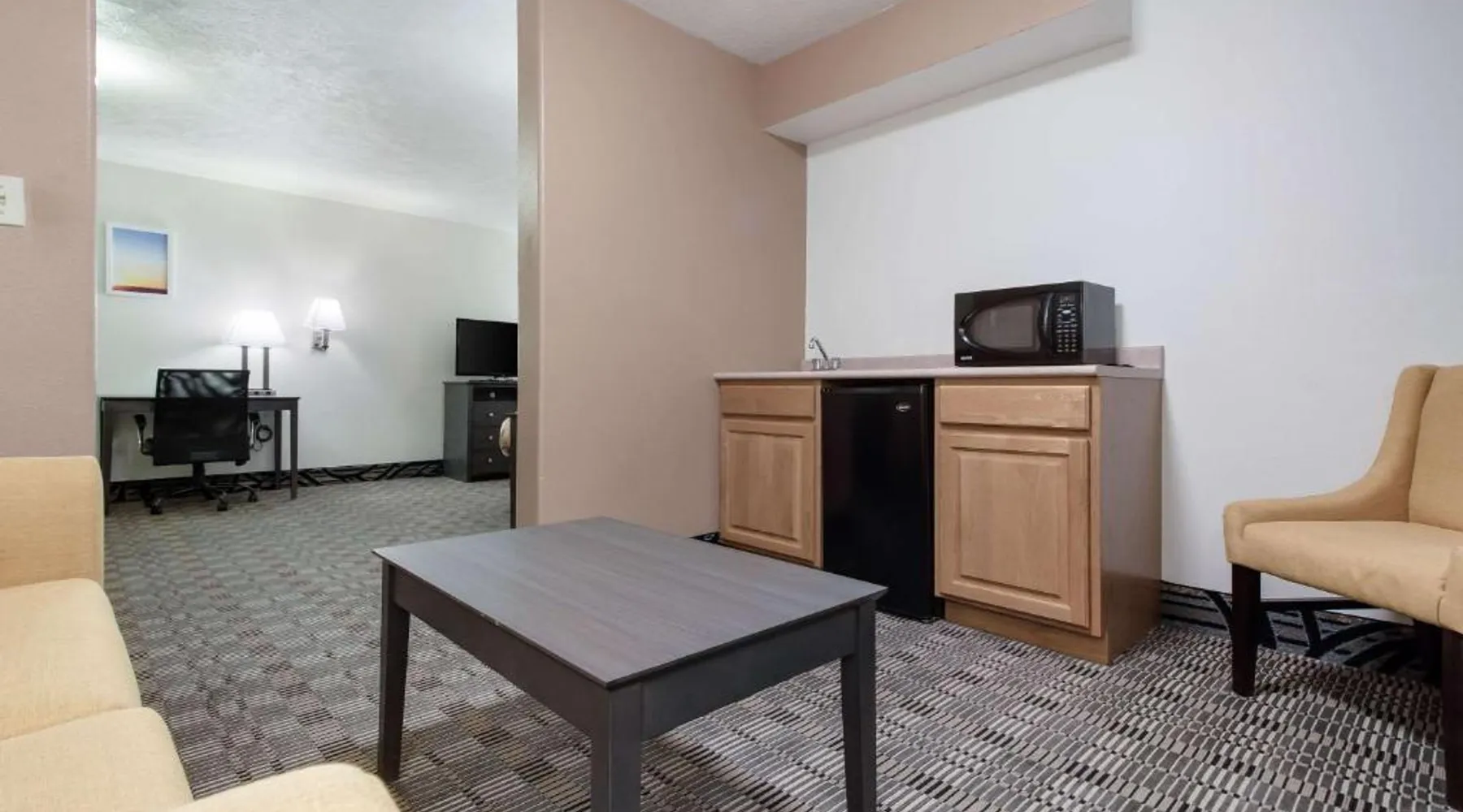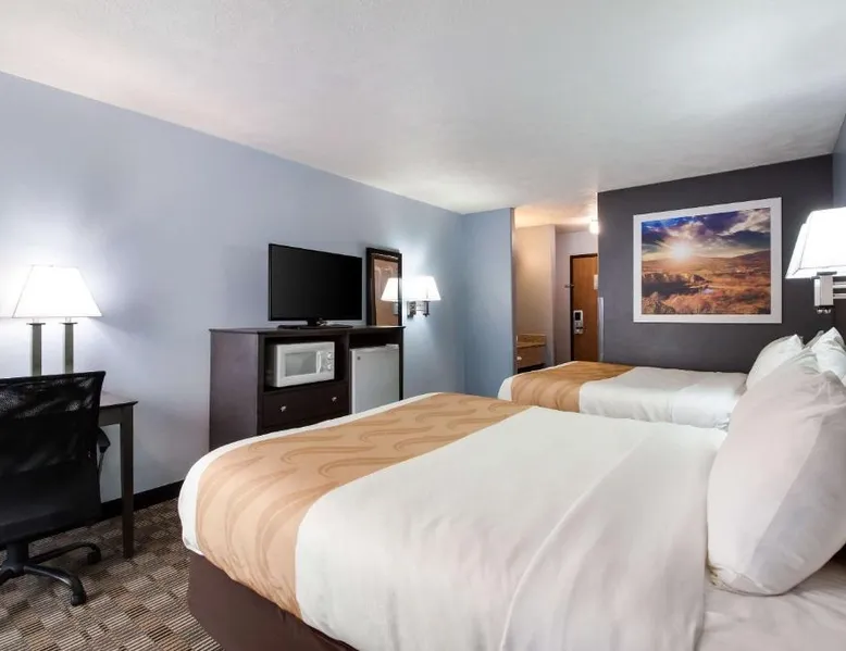 Comfortable Accommodations: Quality Inn & Suites in McCook offers family rooms with free WiFi, air-conditioning, and private bathrooms. Each room includes a tea and coffee maker, hairdryer, refrigerator, microwave, TV, and work desk. Leisure Facilities: Guests can enjoy an outdoor swimming pool, lounge, and picnic area. The hotel provides a business area, full-day security, and free on-site private parking. Convenient Location: Located 3.1 mi from McCook Ben Nelson Regional Airport, the hotel offers easy access to local attractions. This suite's special feature is the spa bath. This suite features a tea and coffee maker, a seating area and a TV with cable channels.