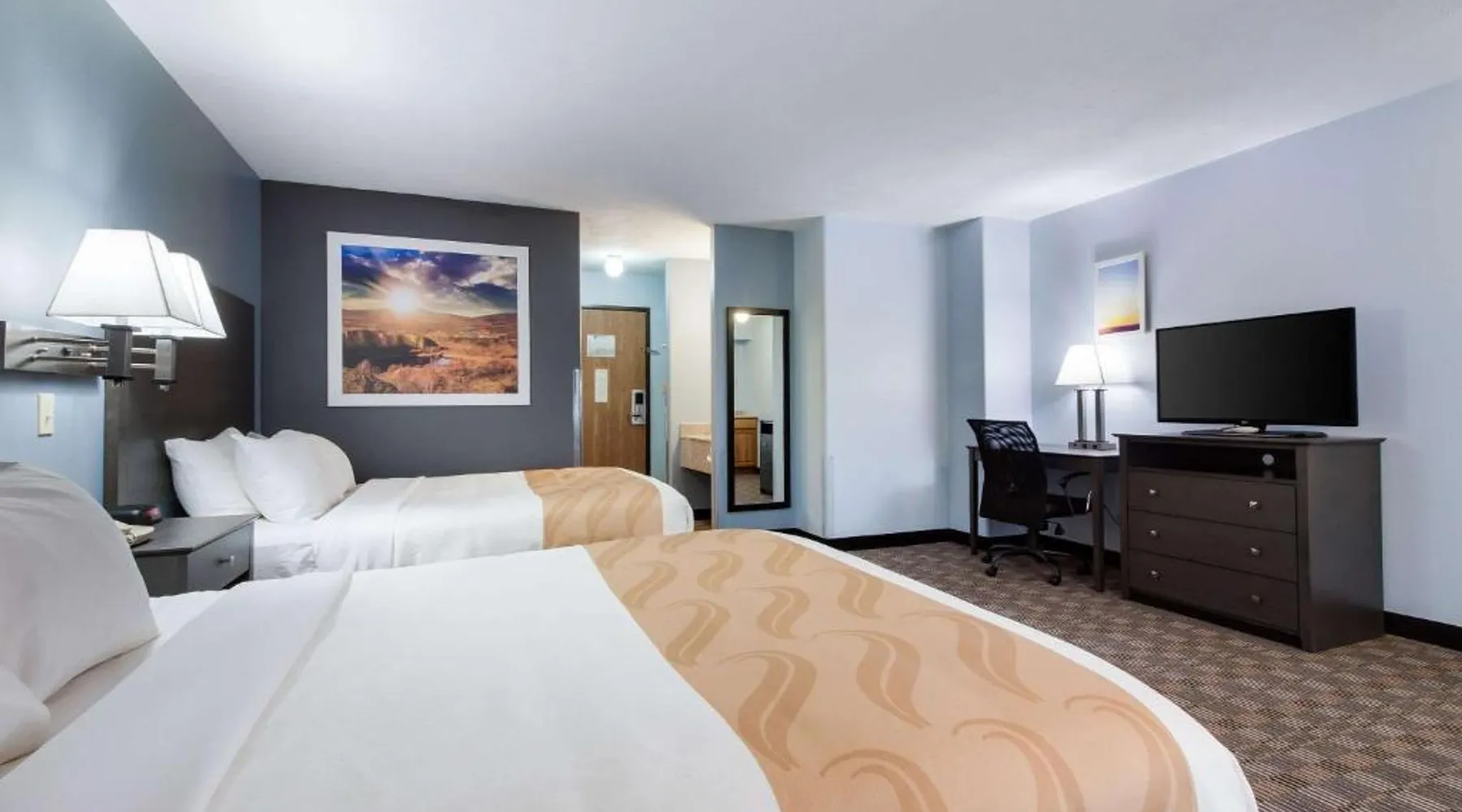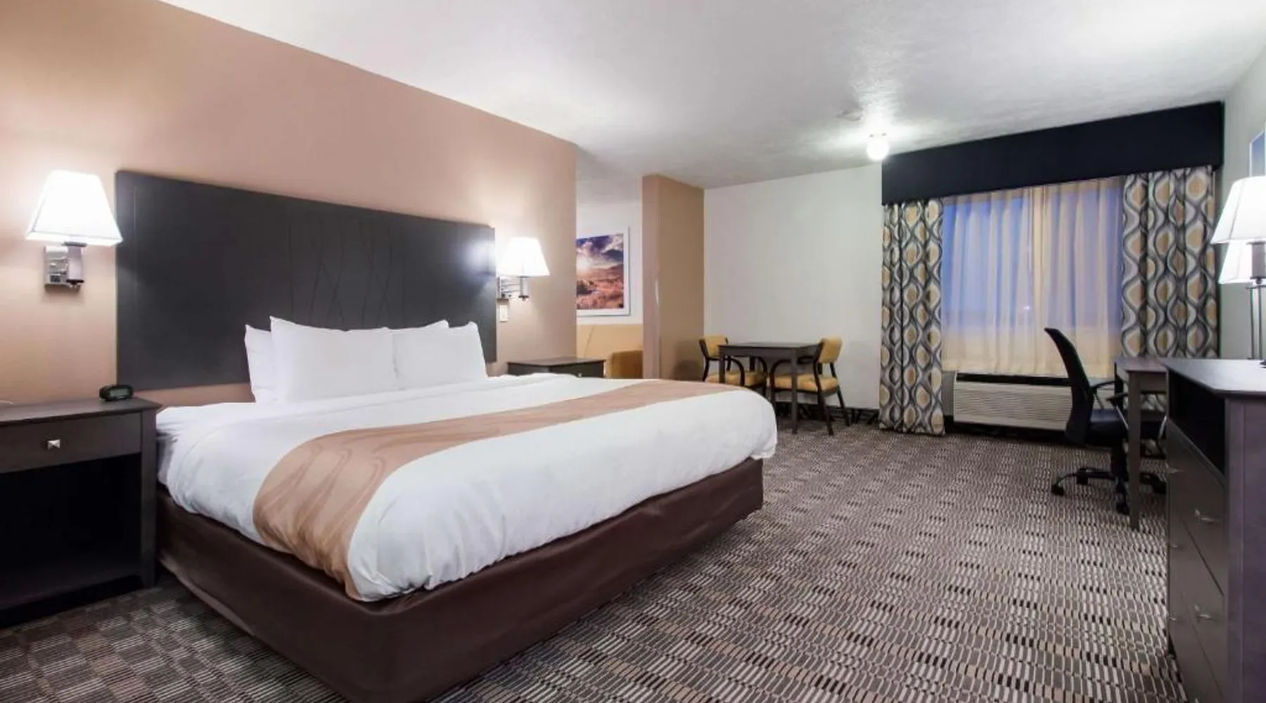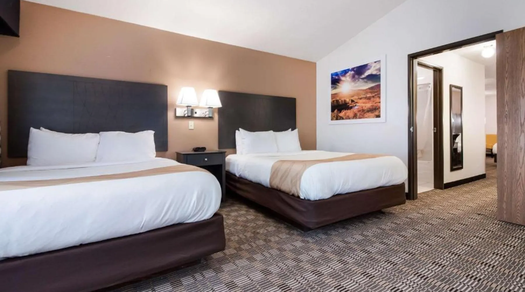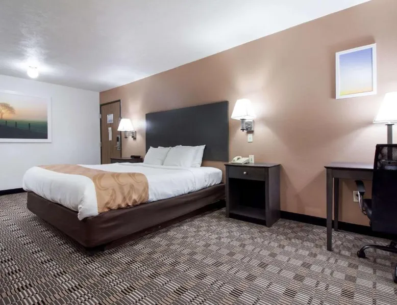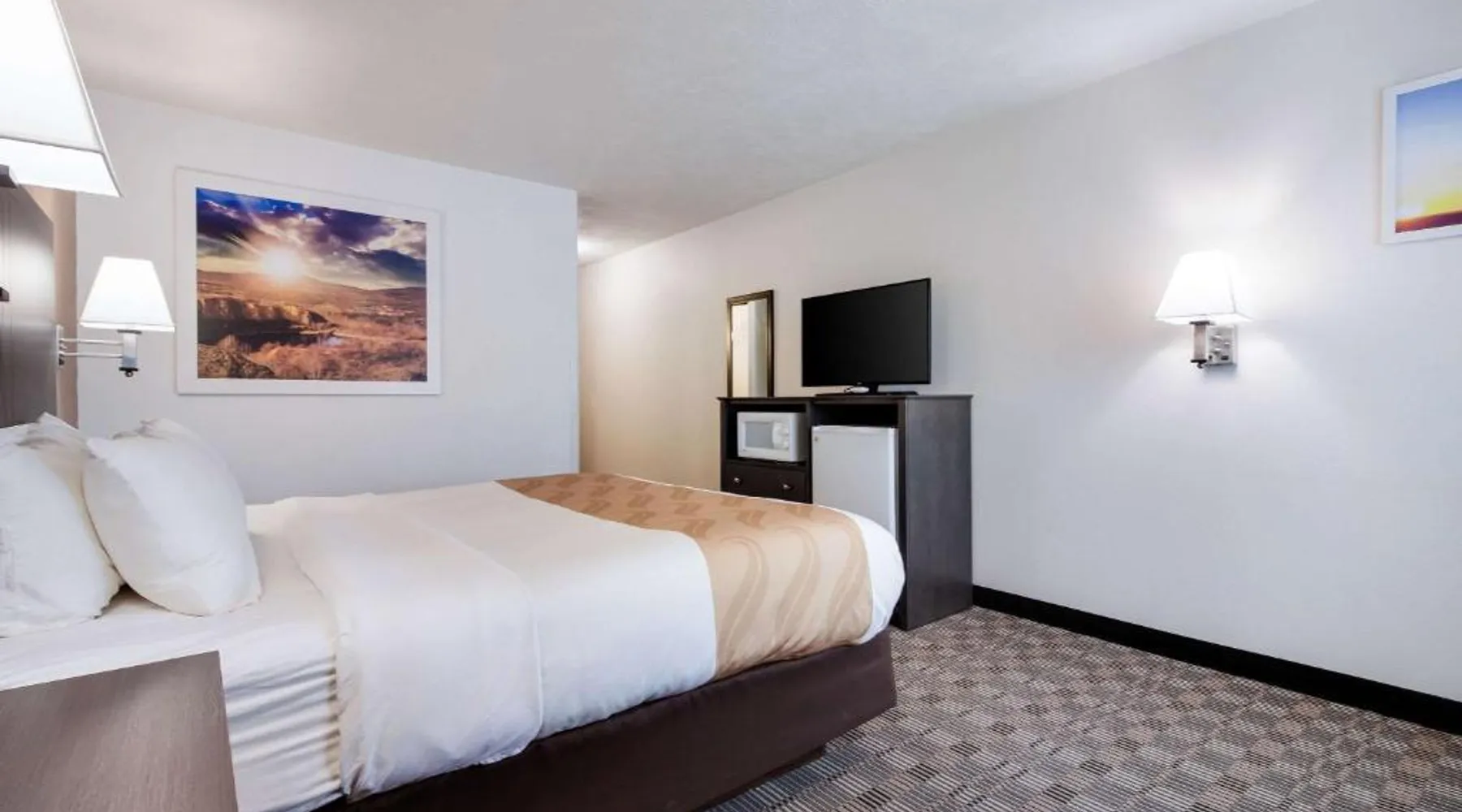 Comfortable Accommodations: Quality Inn & Suites in McCook offers family rooms with free WiFi, air-conditioning, and private bathrooms. Each room includes a tea and coffee maker, hairdryer, refrigerator, microwave, TV, and work desk. Leisure Facilities: Guests can enjoy an outdoor swimming pool, lounge, and picnic area. The hotel provides a business area, full-day security, and free on-site private parking. Convenient Location: Located 3.1 mi from McCook Ben Nelson Regional Airport, the hotel offers easy access to local attractions. This suite's special feature is the spa bath. This suite features a tea and coffee maker, a seating area and a TV with cable channels.