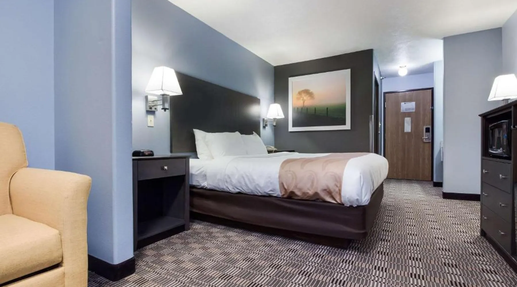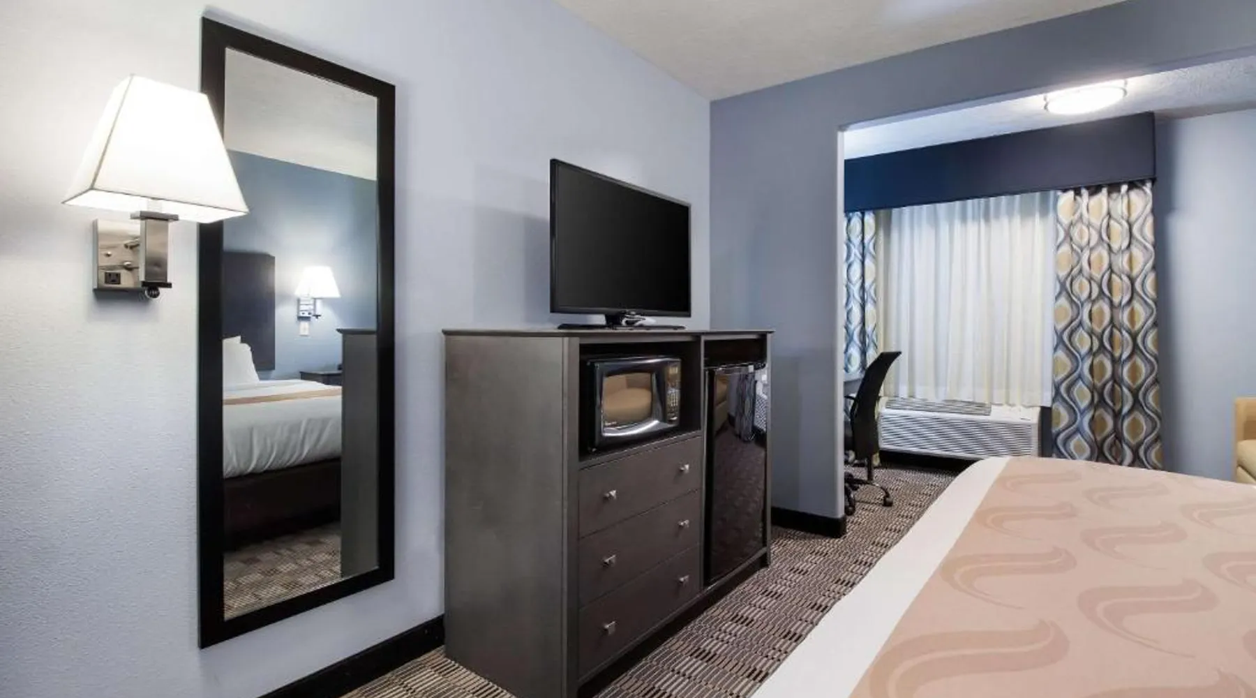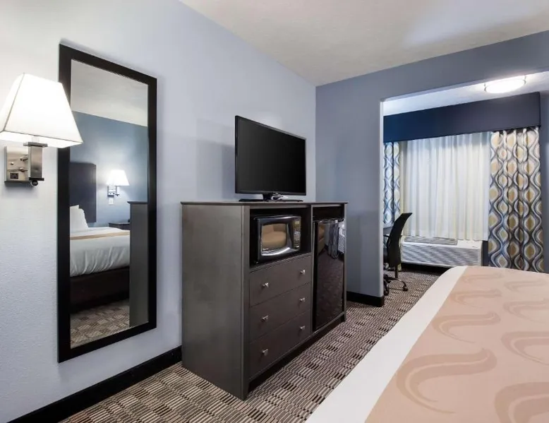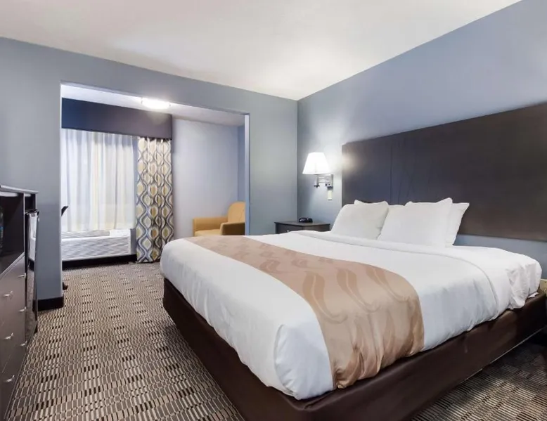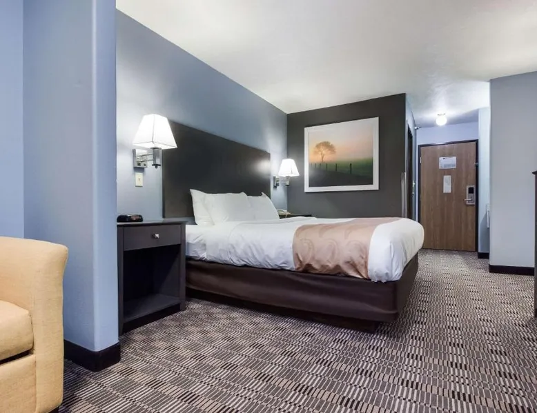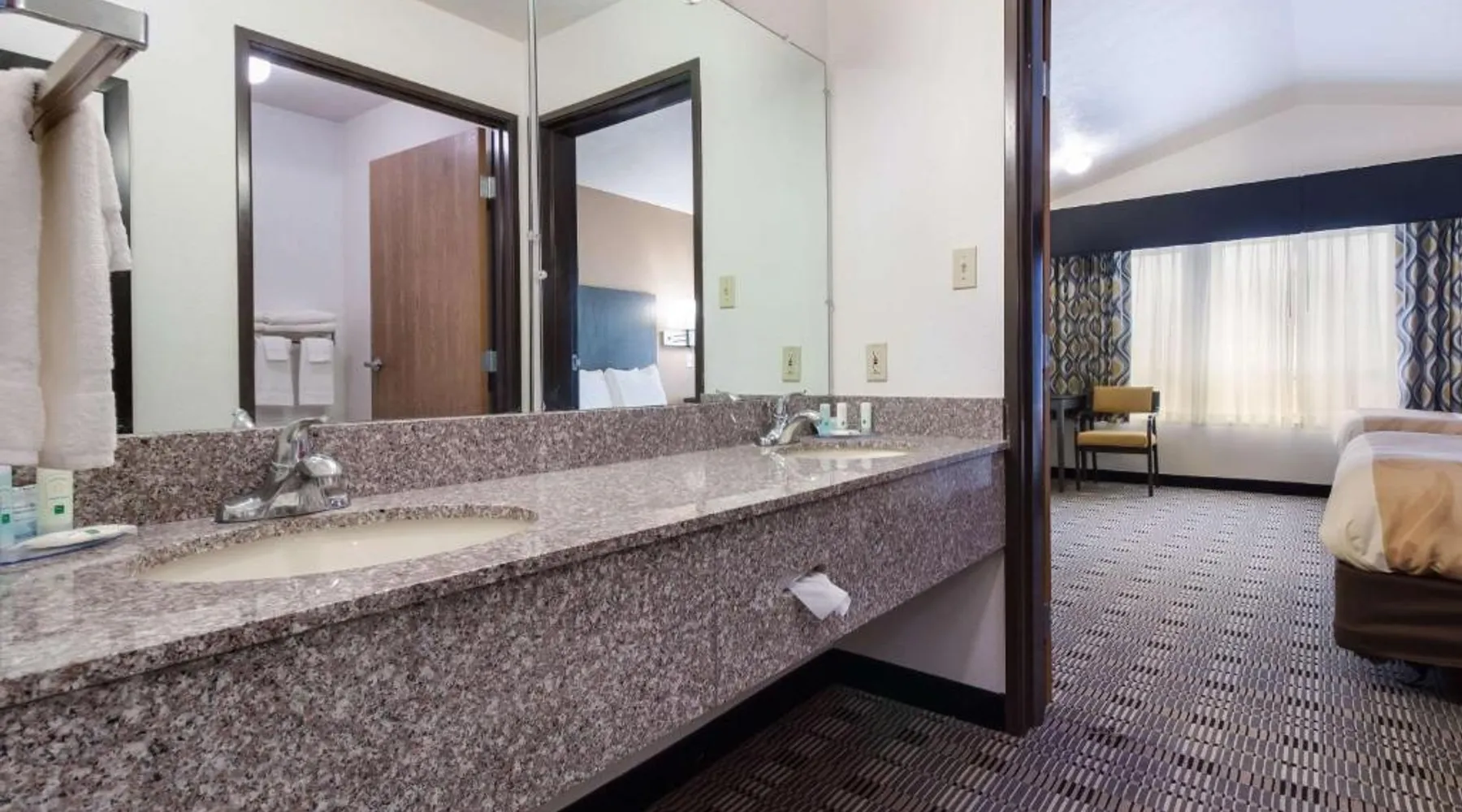 Comfortable Accommodations: Quality Inn & Suites in McCook offers family rooms with free WiFi, air-conditioning, and private bathrooms. Each room includes a tea and coffee maker, hairdryer, refrigerator, microwave, TV, and work desk. Leisure Facilities: Guests can enjoy an outdoor swimming pool, lounge, and picnic area. The hotel provides a business area, full-day security, and free on-site private parking. Convenient Location: Located 3.1 mi from McCook Ben Nelson Regional Airport, the hotel offers easy access to local attractions. This suite's special feature is the spa bath. This suite features a tea and coffee maker, a seating area and a TV with cable channels.