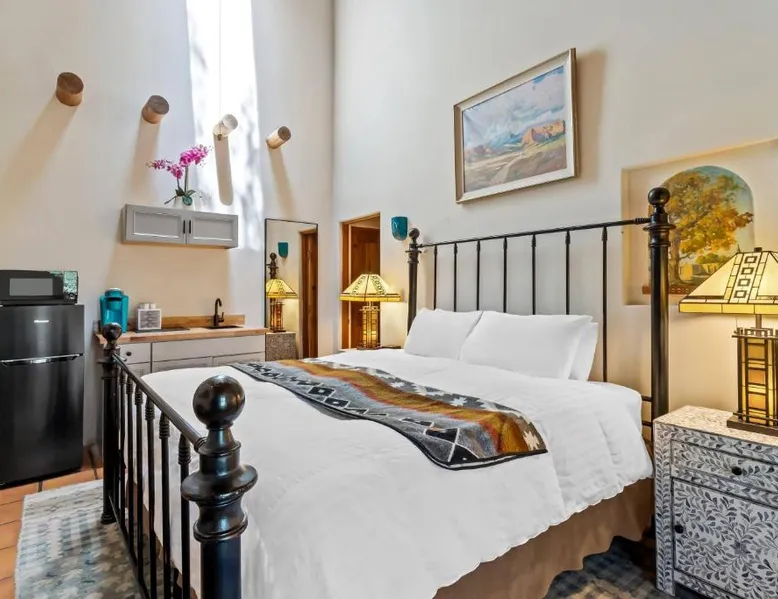 Located on a garden compound in New Mexico, this historic bed and breakfast features comfortably furnished units with free Wi-Fi. It is a 10-minute walk from the Botanic Gardens & Zoo, as well as charming Old Town Albuquerque. Each guest unit at Casas de Suenos Old Town Historic Inn, an Ascend Collection Hotel Inn features a separate living area complete with antique furnishings. Cable TV is included. Select rooms feature a kitchen and a dining area. A gourmet breakfast of eggs, bacon, green Chili burritos and more is served at Casas de Suenos. All meals are cooked-to-order and served hot. Guests can also enjoy fresh fruit, toast and cereal in the sun room complete with a fireplace. Tea and coffee is provided. Albuquerque Museum of Art, Natural History Museum is 10 minutes’ walk away from this bed and breakfast. Featuring a private entrance, this air-conditioned suite consists of 1 living room, 2 separate bedrooms and 1 bathroom with a bath and a shower. The suite's kitchen, which features a refrigerator and a microwave, is available for cooking and storing food. The spacious suite provides a tea and coffee maker, a seating area, a wardrobe, a sofa and a TV with cable channels. The unit offers 3 beds.