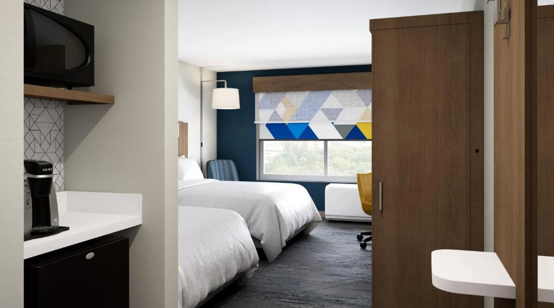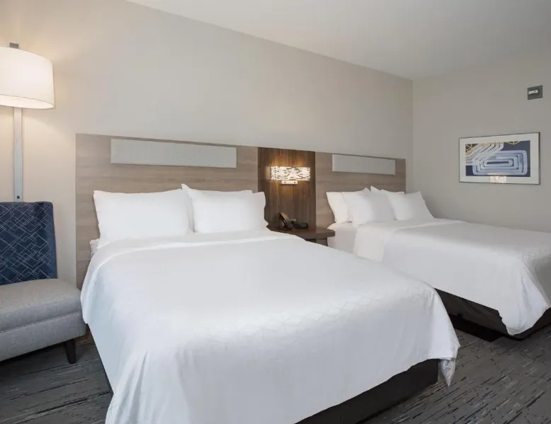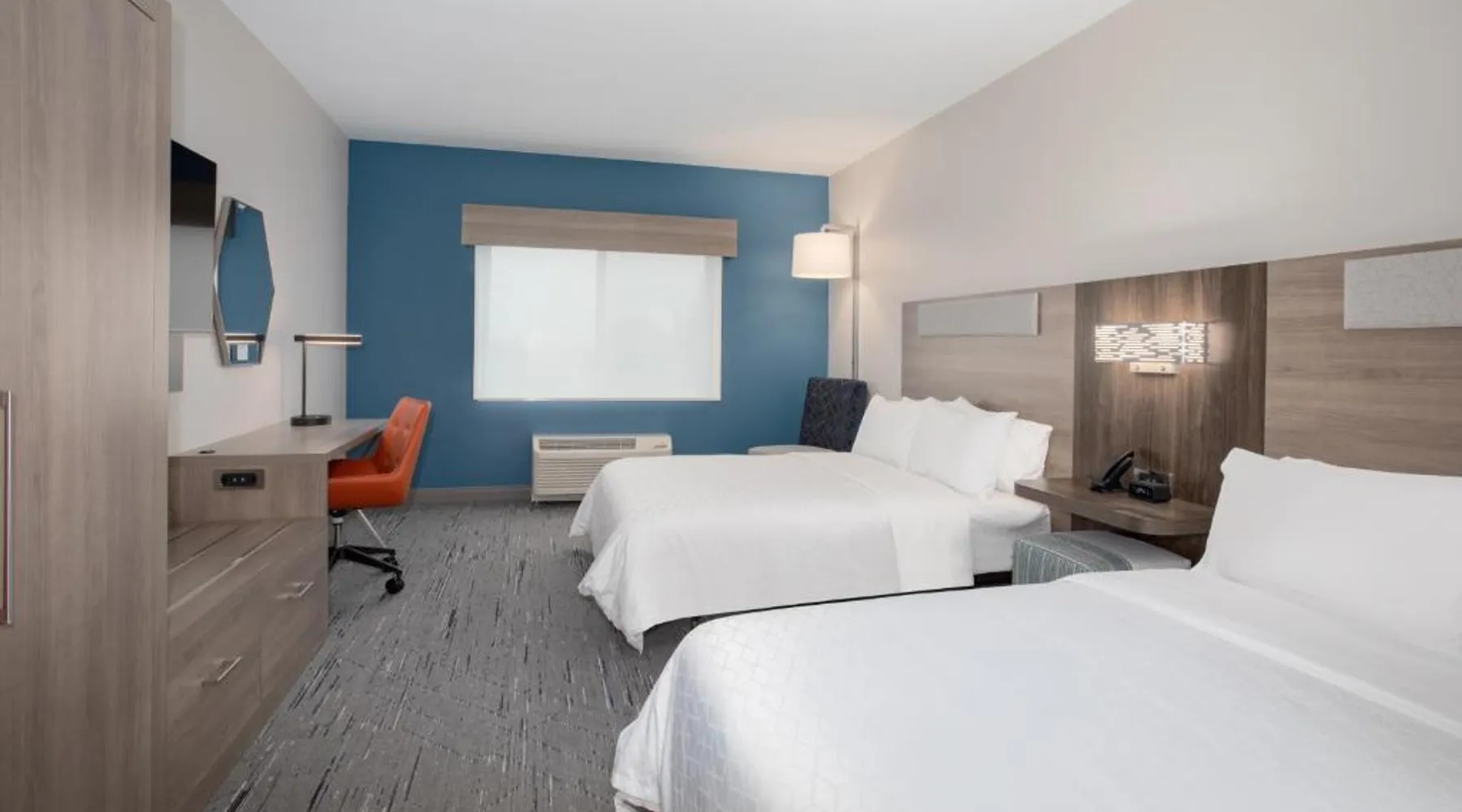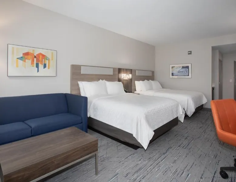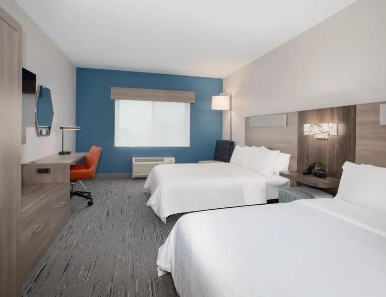Comfortable Accommodations: Holiday Inn Express & Suites - Meridian - Boise West by IHG in Meridian offers comfortable rooms with free WiFi, air-conditioning, and modern amenities. Leisure Facilities: Guests can enjoy a fitness center, indoor swimming pool, and an outdoor fireplace. Additional facilities include a hot tub, games room, and outdoor seating area. Dining Options: A continental buffet breakfast is served daily, featuring warm dishes, fresh pastries, pancakes, cheese, fruits, and juice. A coffee shop and minimarket are also available. Convenient Location: Located 7.5 mi from Boise Airport, the hotel is near attractions such as Roaring Springs Water Park (3.1 mi) and Boise Art Museum (9.9 mi). Highly rated for staff, breakfast, and room cleanliness. The unit has 2 beds.