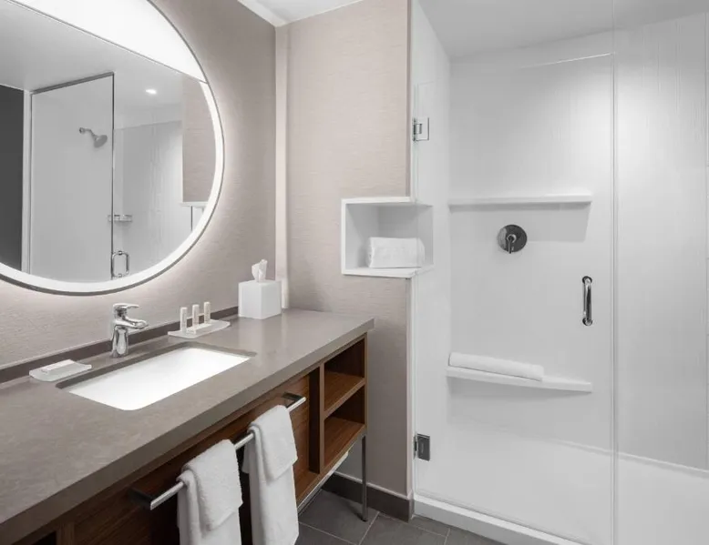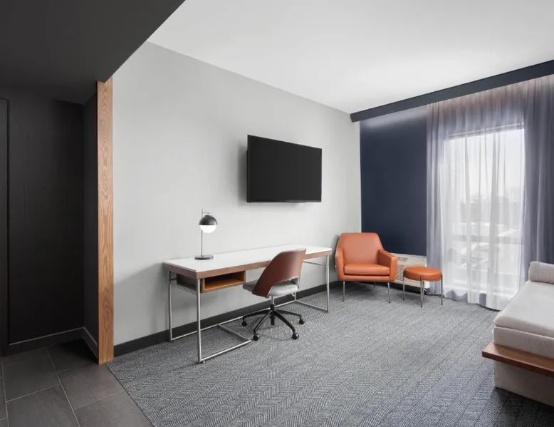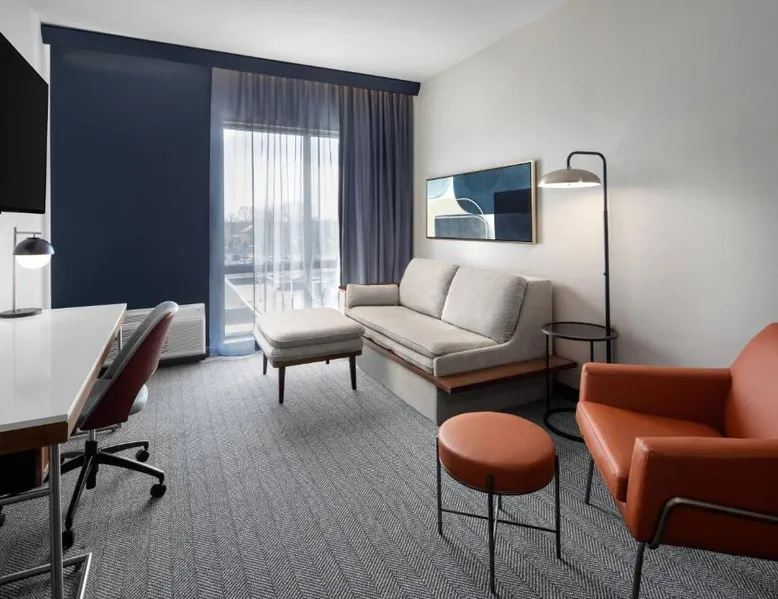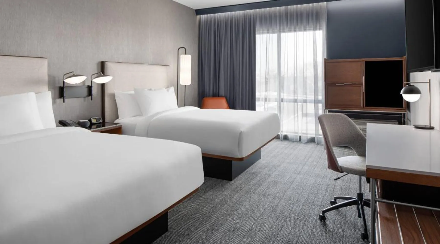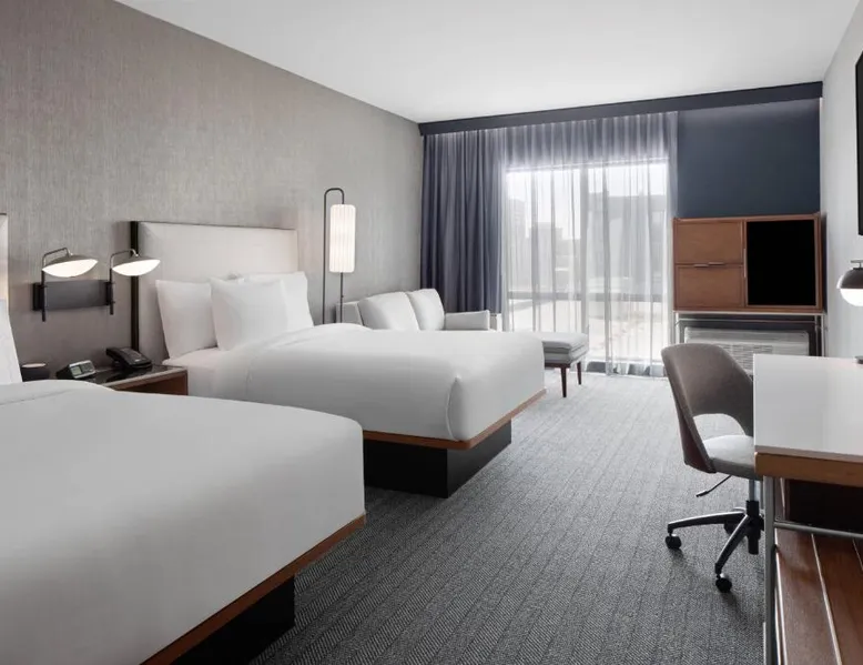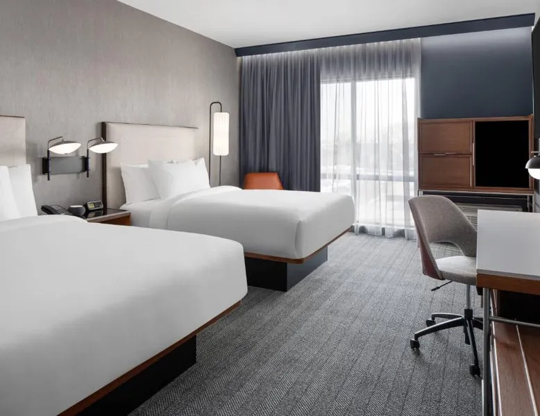 Comfortable Accommodations: Courtyard by Marriott Lansing Downtown in Lansing offers rooms with air-conditioning, private bathrooms, and modern amenities. Guests enjoy free WiFi, streaming services, and work desks. Dining and Leisure: The hotel features a fitness center, restaurant, and bar. The traditional restaurant serves American cuisine with vegetarian options, while the bar offers cocktails. Additional facilities include an outdoor fireplace, lounge, and outdoor seating area. Convenient Location: Located 5.6 mi from Capital Region International Airport, the hotel is a 4-minute walk from Lansing Center. Nearby attractions include Jack Breslin Arena and Wharton Center, each 3.1 mi away. Boating is available in the surroundings. Guest Satisfaction: Highly rated for its convenient location, room cleanliness, and comfort, the hotel ensures a pleasant stay for all visitors. Featuring free toiletries, this double room includes a private bathroom with a shower and a hairdryer. The spacious air-conditioned double room features a flat-screen TV with streaming services, a tea and coffee maker, a seating area and a wardrobe. The unit has 2 beds.