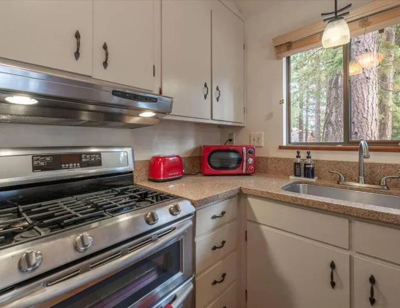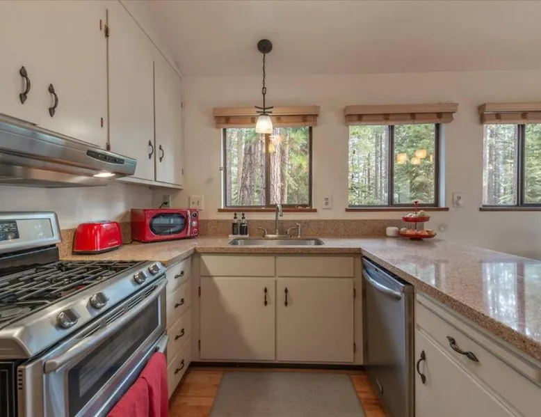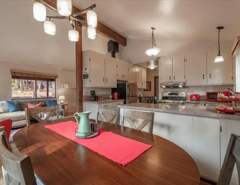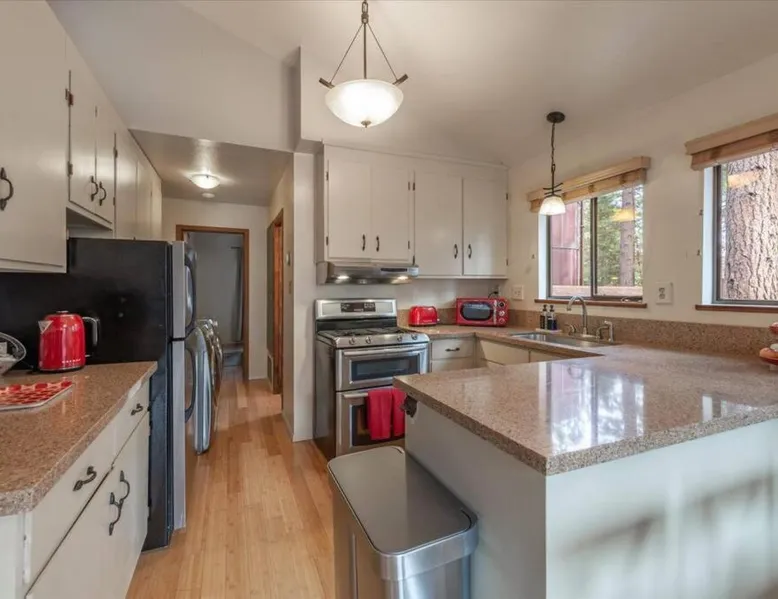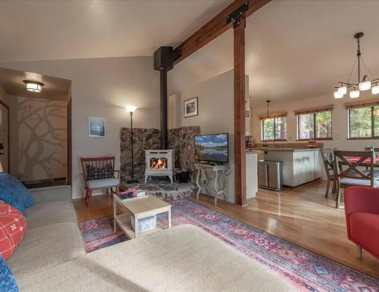 Comfortable Accommodations: Cozy Pet-Friendly Cabin w Fenced-In Yard Close to Slopes Beach Town in Carnelian Bay offers two bedrooms and two bathrooms. The living room features a sofa bed, dining area, and a fully equipped kitchen with modern appliances. Outdoor Amenities: Guests can enjoy a private beach area, garden, tennis court, and free WiFi. The property includes a patio with outdoor furniture, perfect for relaxing. Convenient Facilities: The holiday home provides free on-site private parking, a paid airport shuttle service, and an outdoor seating area. Streaming services, a washing machine, and a work desk enhance the stay. Local Attractions: Located near Slopes Beach Town, the property offers activities such as fishing, skiing, hiking, and cycling. The fireplace is the standout feature of this holiday home. The well-equipped kitchen has a stovetop, a refrigerator, a dishwasher and an oven. The holiday home features a flat-screen TV with streaming services, a washing machine, a private entrance, a tea and coffee maker as well as garden views. The unit has 3 beds.
