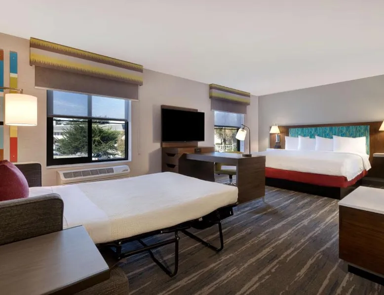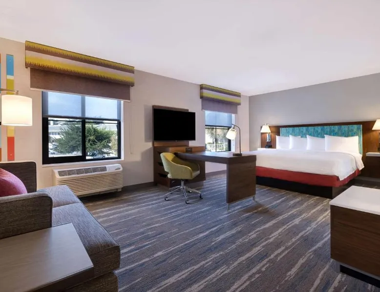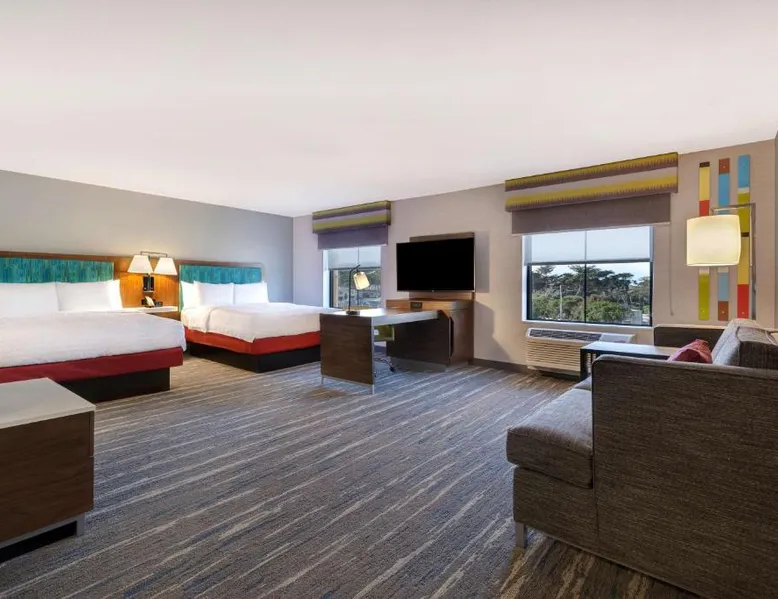 Comfortable Accommodations: Hampton Inn & Suites Marina in Marina offers comfortable rooms with air-conditioning, free WiFi, and modern amenities. Guests enjoy free toiletries, a work desk, and a seating area. Leisure Facilities: The hotel features a fitness center, indoor swimming pool, and an outdoor fireplace. Additional facilities include a lounge, minimarket, and electric vehicle charging station. Dining Options: A buffet breakfast is served daily, including warm dishes, fresh pastries, fruits, and juice. The on-site restaurant offers a child-friendly buffet. Prime Location: Located less than 0.6 mi from Marina State Beach and 9.9 mi from Monterey Regional Airport. Nearby attractions include Presidio Of Monterey Museum and Monterey Bay Aquarium. The spacious studio provides air conditioning, a tea and coffee maker, a seating area, heating, as well as a TV with cable channels. The unit offers 2 beds.