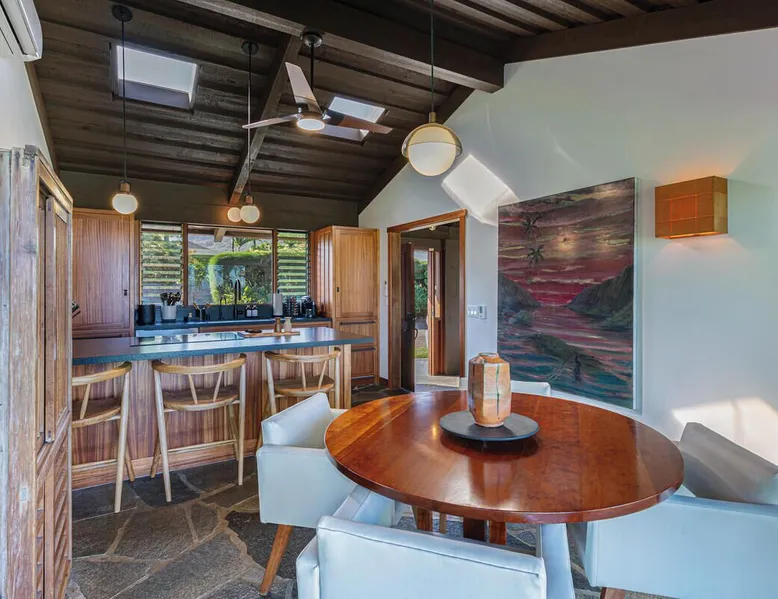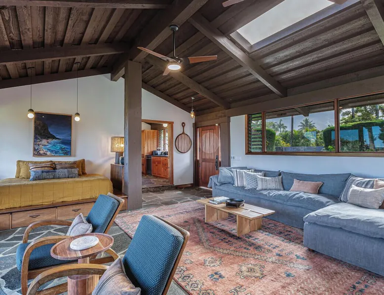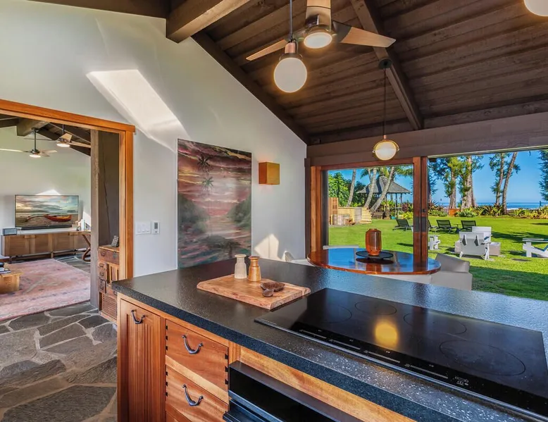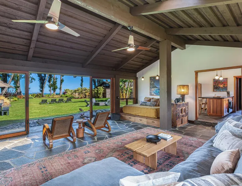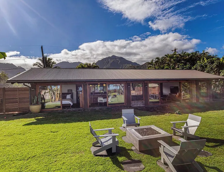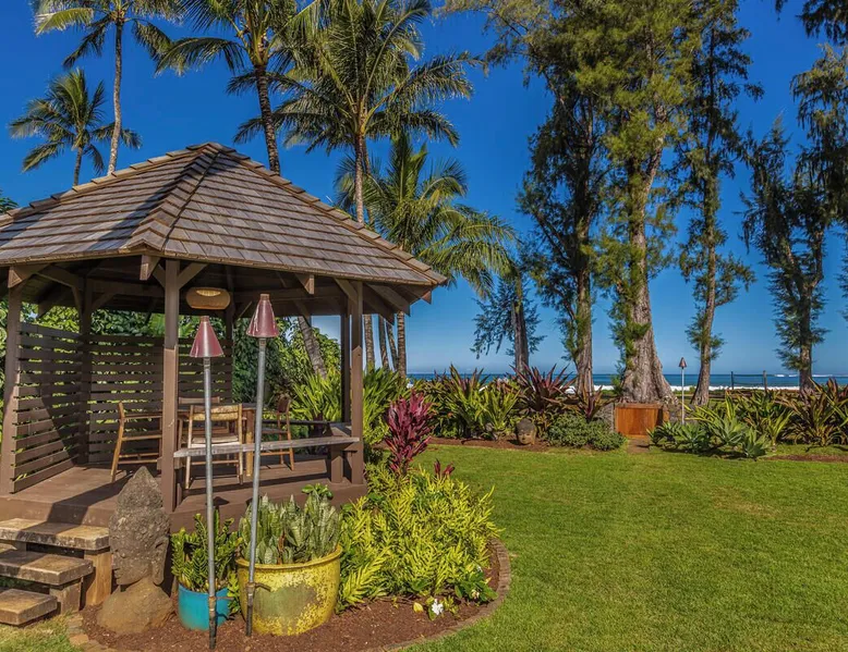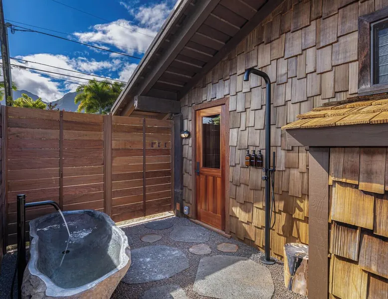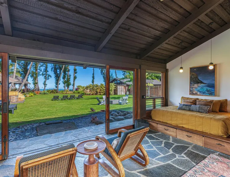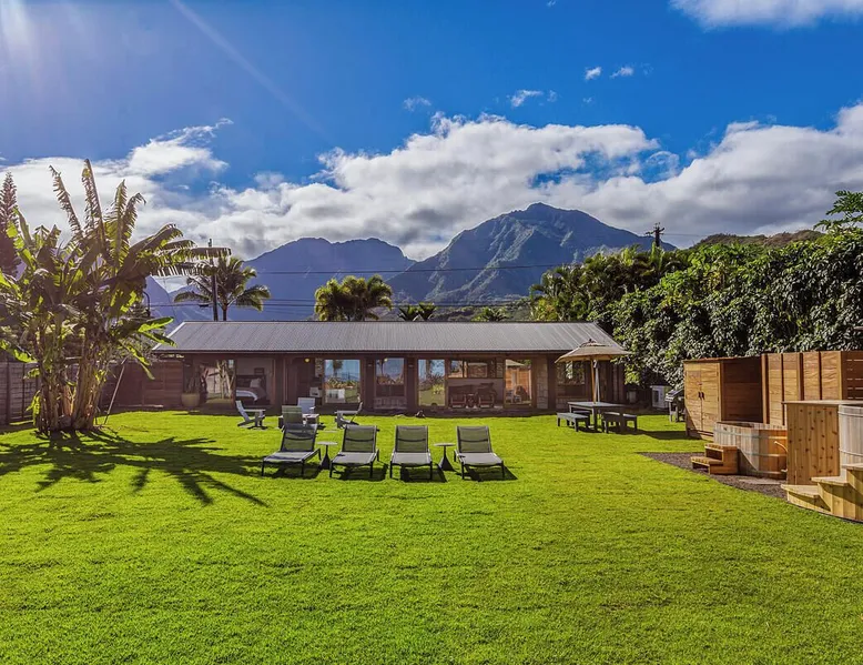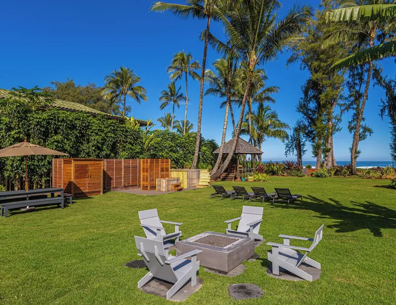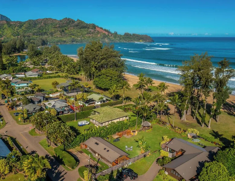 Experience paradise at Hale Maluhia, an exclusive beachfront home on the idyllic Hanalei Bay. Perfect for honeymooners or small groups seeking a luxurious escape, this stunning property offers unparalleled privacy within a gated enclave. Indulge in the epitome of comfort with upscale furnishings and a wealth of amenities. The master suite features a king-size bed, flat-screen TV with cable, and a luxurious en-suite bathroom with a shower/jacuzzi tub. The spacious living area includes a queen-size punee bed for additional sleeping arrangements or relaxation. A charming bedroom with bunk beds and an attached bathroom featuring an outdoor shower and tub provides further accommodation options. Escape to your own private sanctuary in the meticulously landscaped gardens. Unwind in the hot tub, invigorate in the cold plunge, or enjoy the serenity of the private gazebo. Another alfresco outdoor shower adds to the luxurious outdoor experience. Gather around the crackling fire pit in the evenings, roasting marshmallows and creating unforgettable memories. Hale Maluhia is just moments away from the vibrant Saturday morning farmers' market, offering an opportunity to savor the freshest local produce. This is the pinnacle of beachfront living. This home is located on the end of the bay near the surf spot Pinetrees. Hanalei town is just a short five to ten minute walk. The Saturday morning farmers and fresh produce market is just a few blocks away. *This home is located in a Tsunami Evacuation Zone* TVNC 1153 TA-073-832-7040-01 Hawaii Life Rentals is a locally owned, licensed real estate company with rentals on Kauai, Maui, Oahu, and Hawaii. We offer on-island personal assistance and Concierge services. Rates do not include taxes, cleaning and applicable fees. Hawaii Life/VRBO bookings: Guests must sign a rental contract within 48 hours of booking to confirm the reservation.