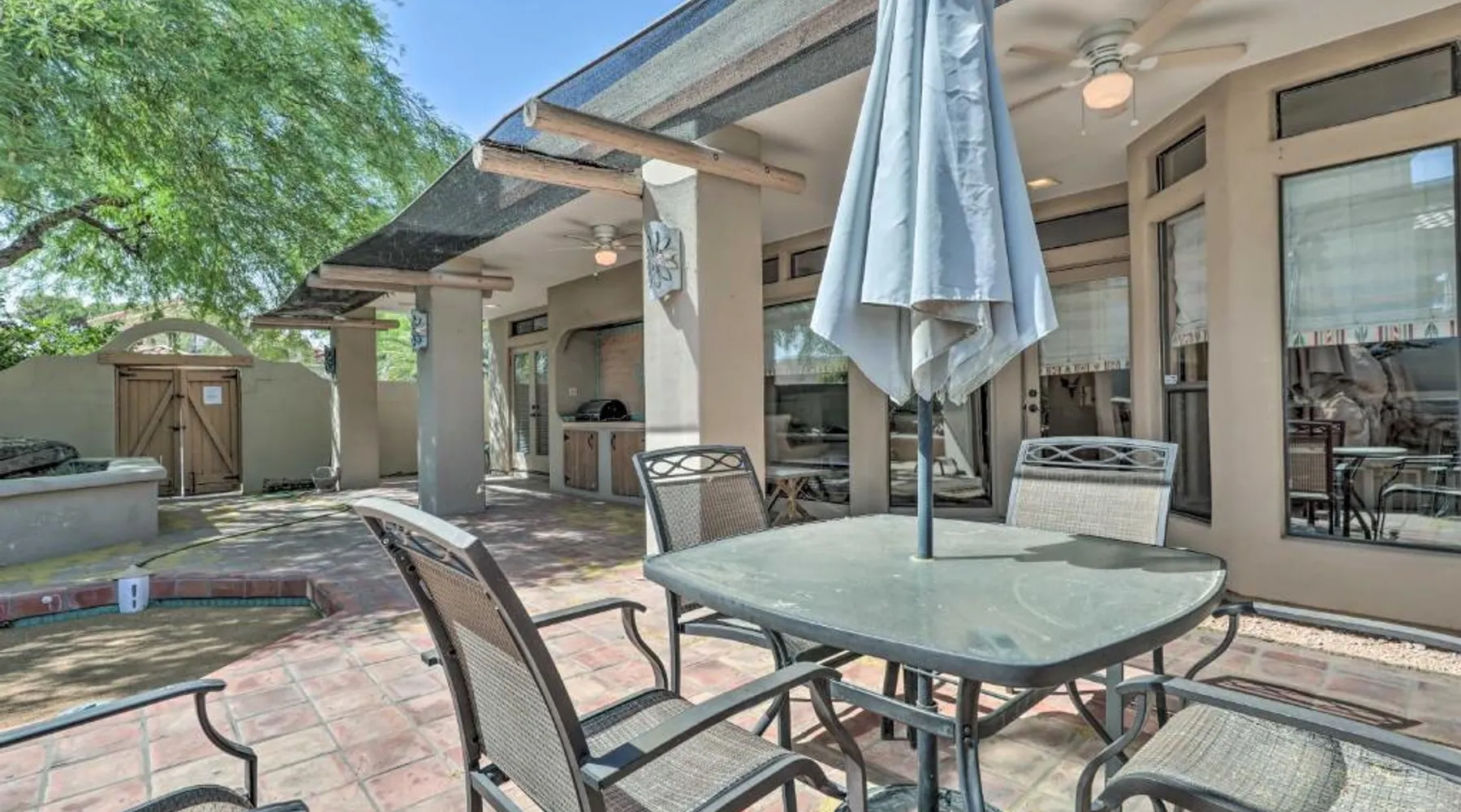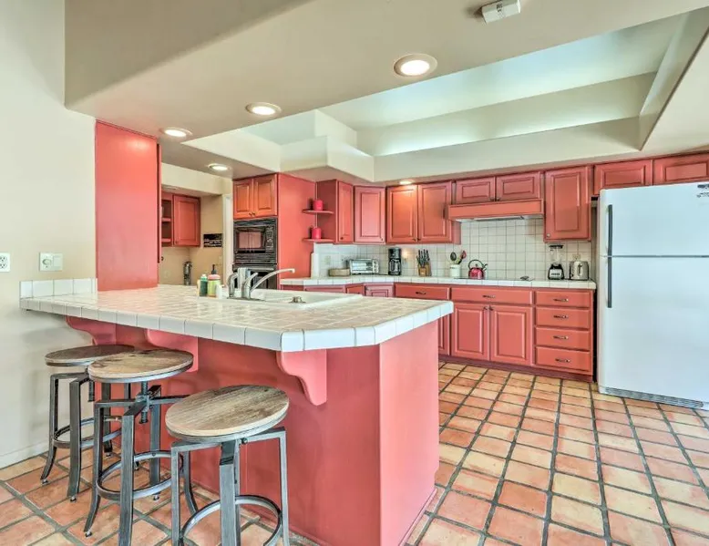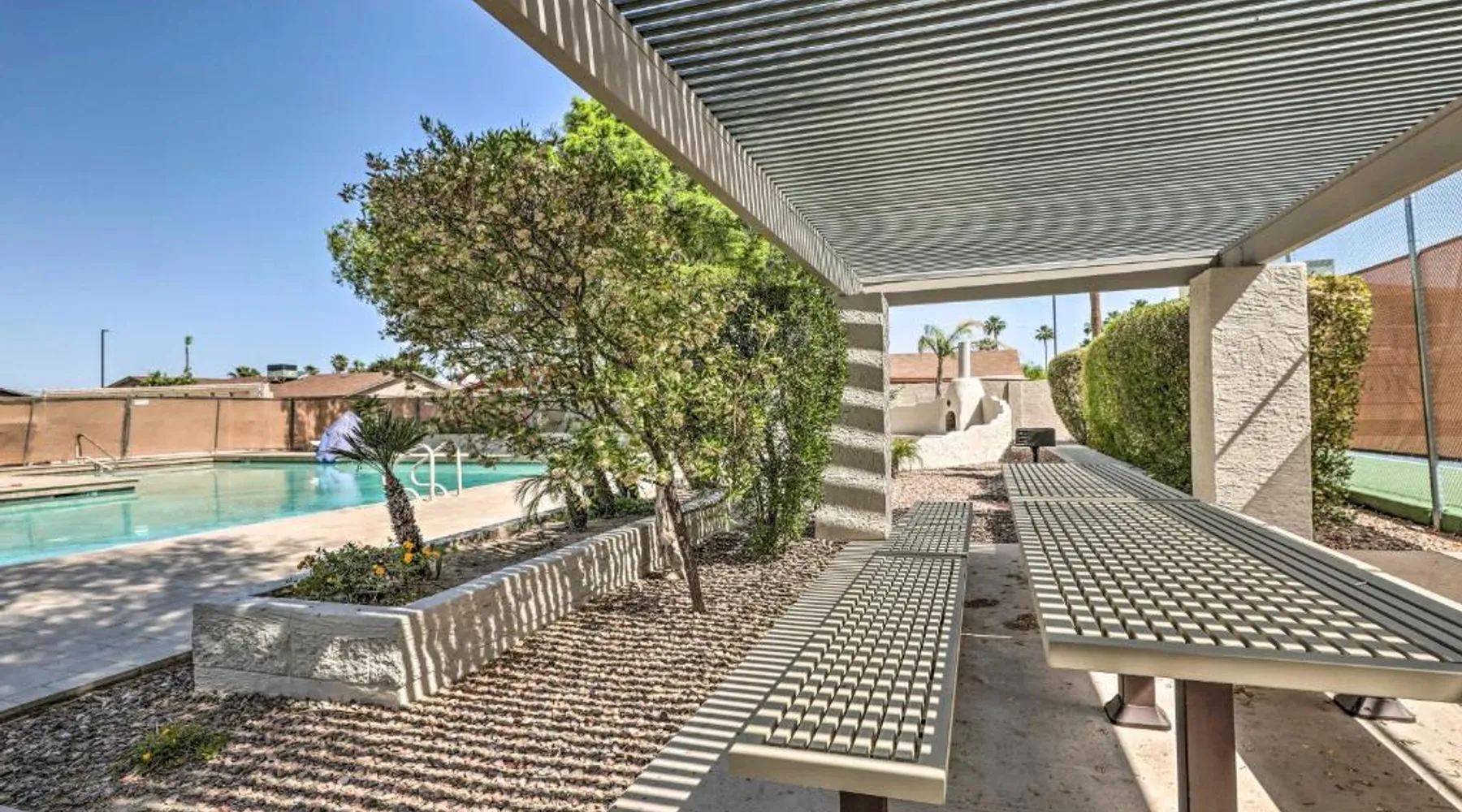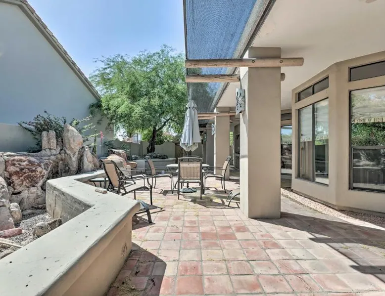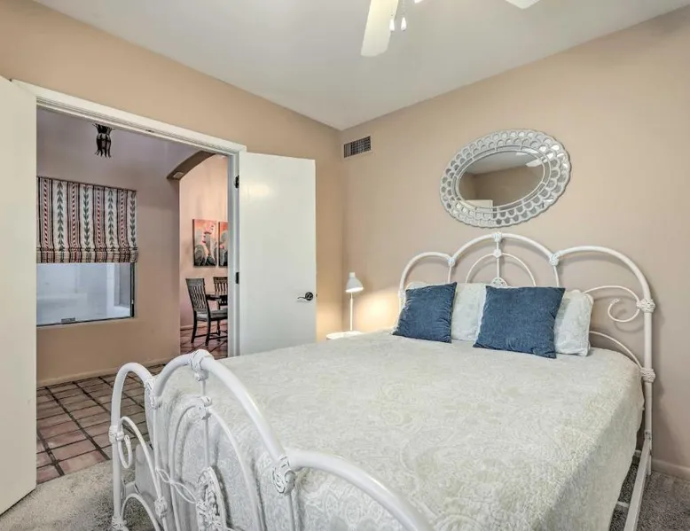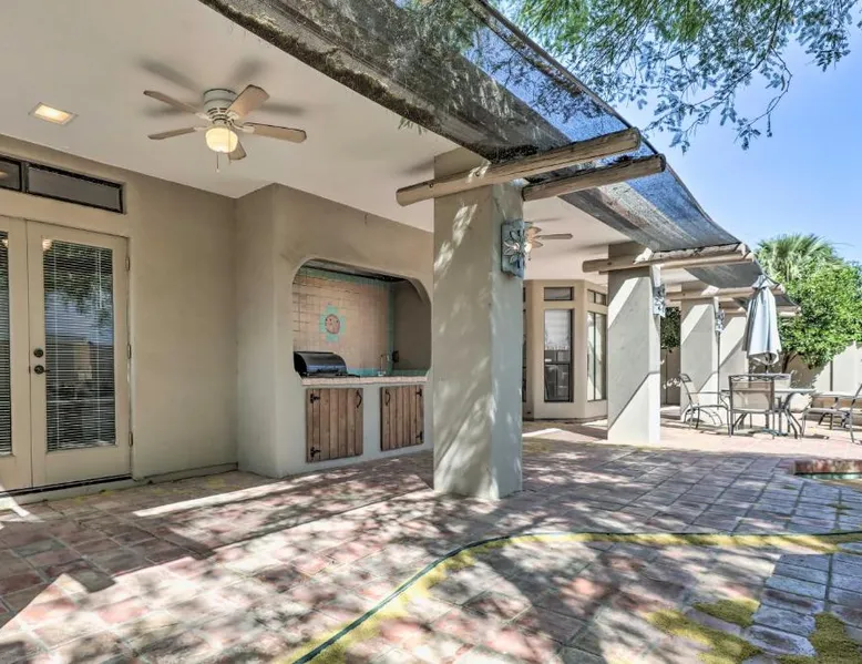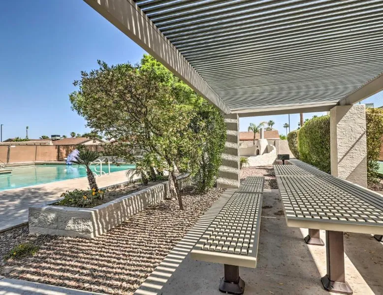 Spacious Holiday Home in Mesa: Community Pool Pueblo Home Near Downtown Mesa offers a spacious setting with three bedrooms and two bathrooms. The ground-floor unit features a private entrance and a fully equipped kitchen. Relaxing Facilities: Guests can enjoy a spa and wellness center, an outdoor swimming pool, and free WiFi. Additional amenities include air-conditioning, a washing machine, and a fireplace. Convenient Location: Located 11 mi from Phenix Sky Harbor International Airport, the property is near attractions such as Sea Life Arizona (5.6 mi) and Phenix Zoo (9.3 mi). Highly rated by guests. This holiday home features a fireplace. Boasting a private entrance, this air-conditioned holiday home features 1 living room, 3 separate bedrooms and 2 bathrooms with a bath and a shower. Guests will find a stovetop, a refrigerator, a dishwasher and kitchenware in the kitchen. The holiday home also comes with a barbecue. The spacious holiday home features a washing machine, a coffee machine, a wardrobe, tumble dryer and a flat-screen TV with cable channels. The unit has 3 beds.
