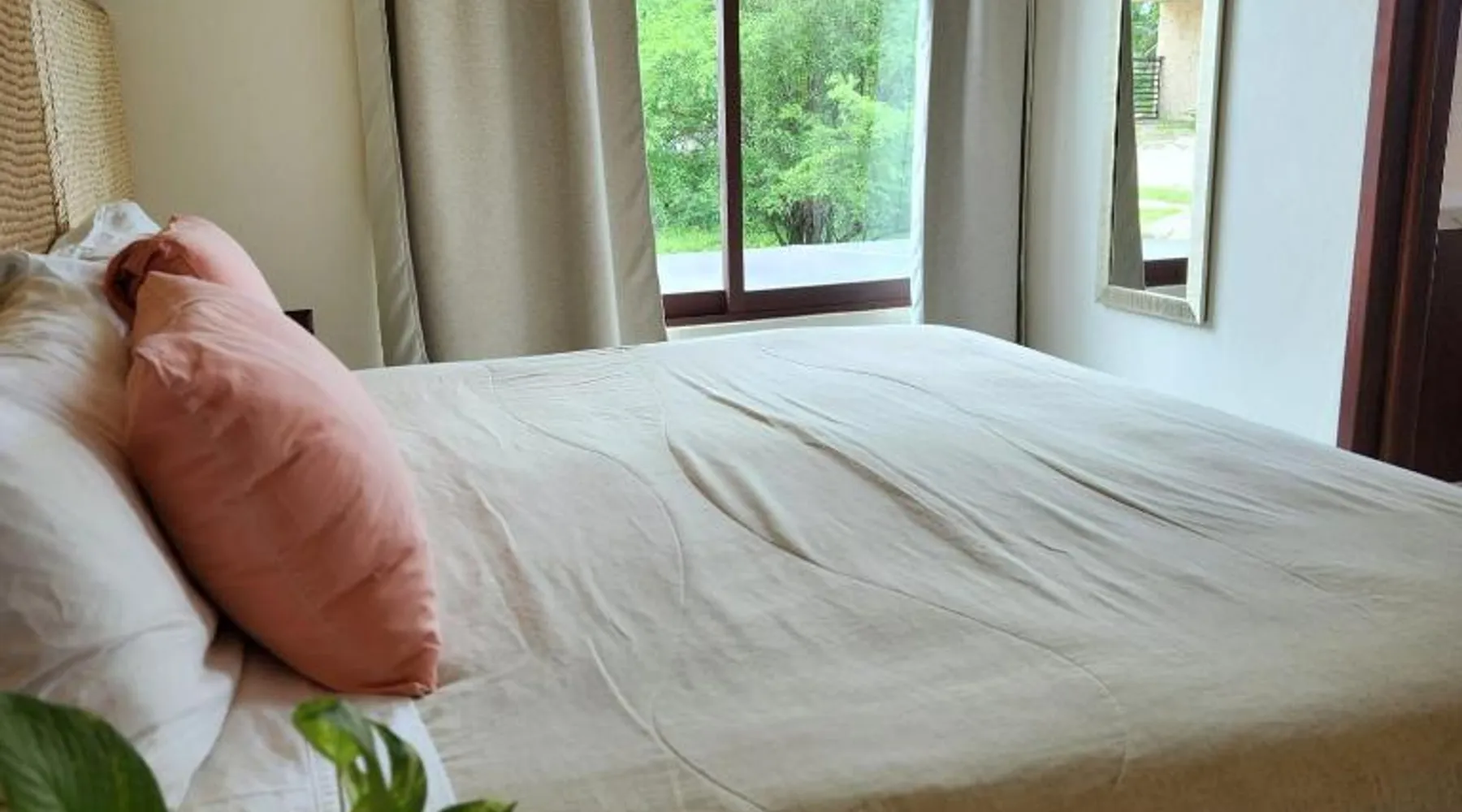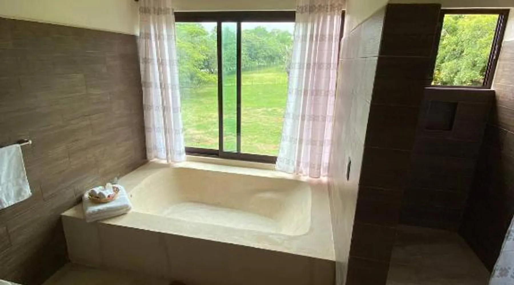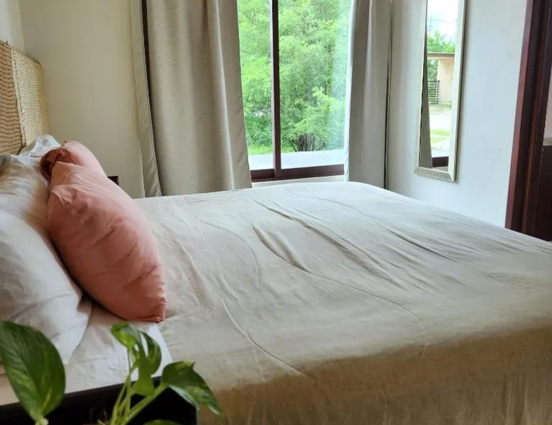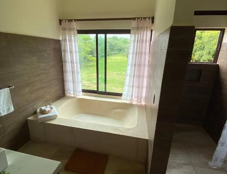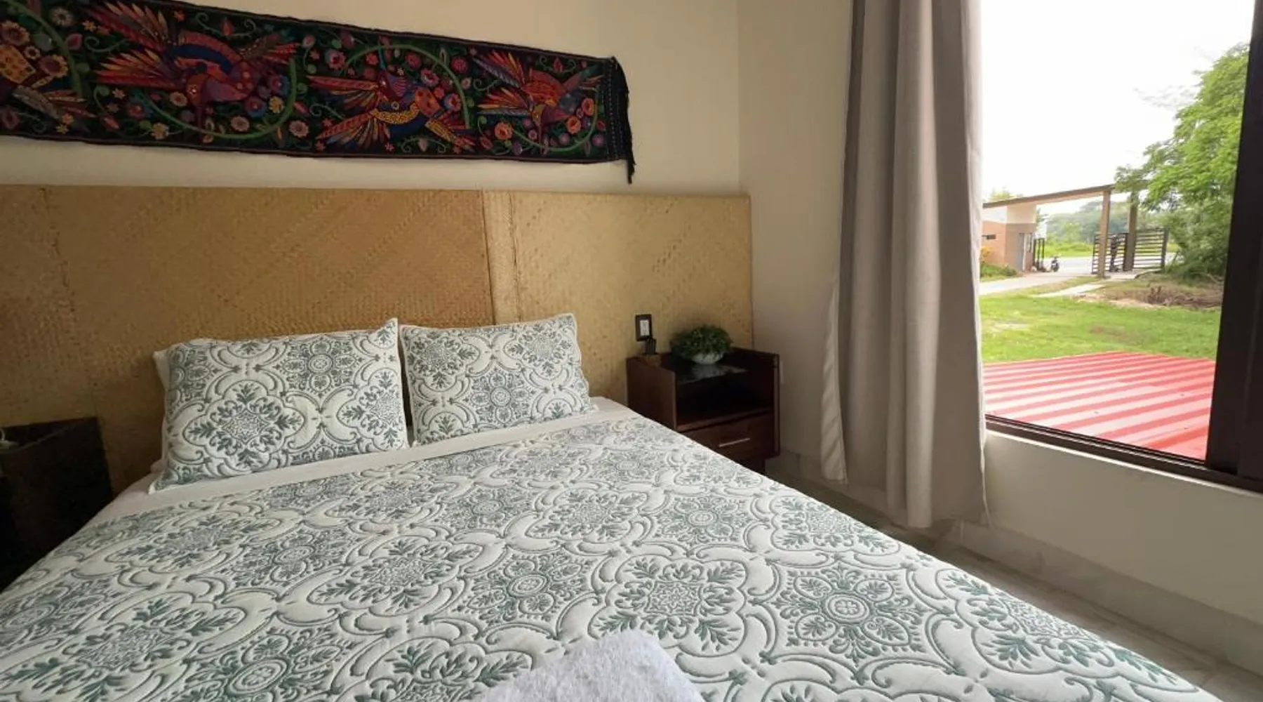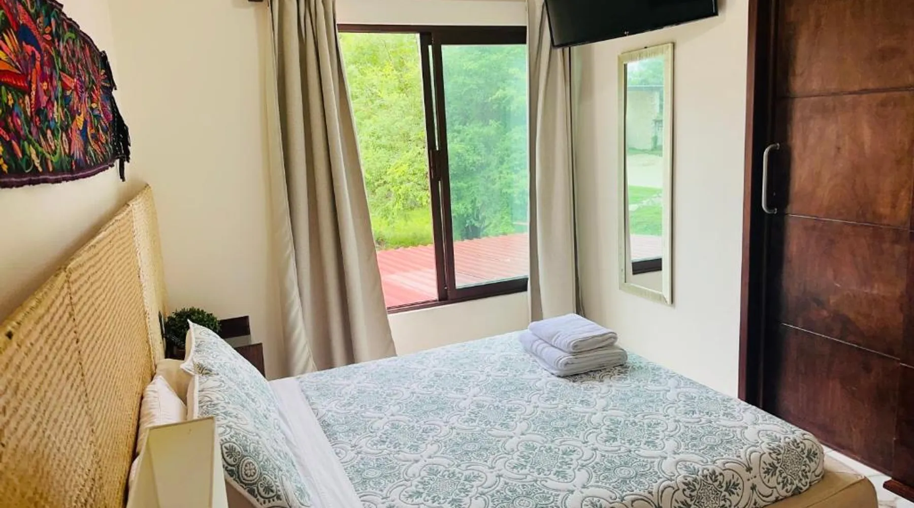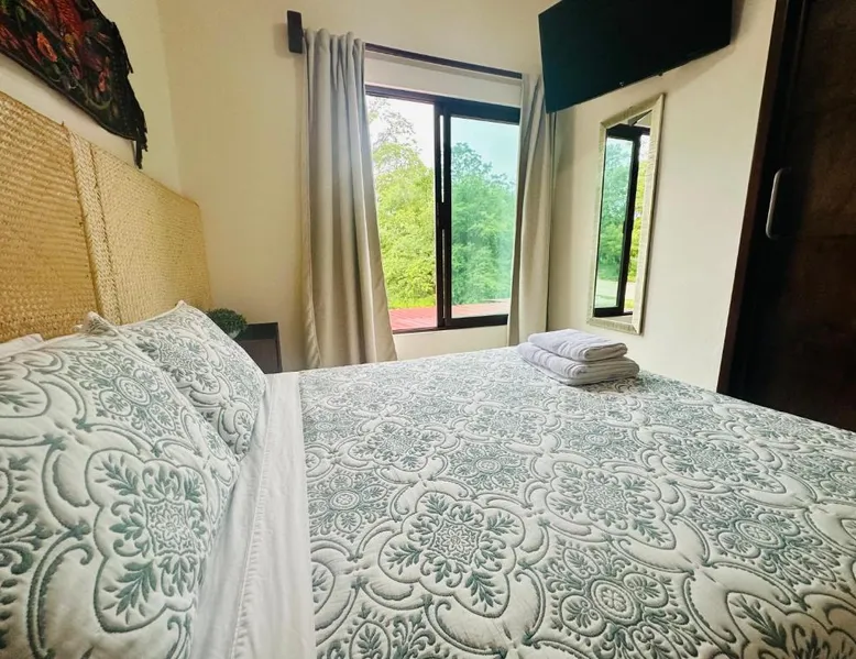 Modern Comforts: Casa Koru in Palenque offers a recently renovated apartment with air-conditioning, a private bathroom, and a terrace. Guests enjoy free WiFi, a lounge, and a shared kitchen equipped with a coffee machine and microwave. Outdoor Spaces: The property features a sun terrace and an outdoor seating area, ideal for relaxation. Additional amenities include a balcony, patio, and garden views. Convenient Location: Located 3.1 mi from Palenque International Airport and a 14-minute walk to the Central Bus Station, Casa Koru provides easy access to local attractions. Nearby points include Palenque Ruins (4.3 mi) and Aluxes EcoPark & Zoo (1.4 mi). The spacious double room provides air conditioning, a private entrance, a terrace with garden views as well as a private bathroom featuring a bath. The unit offers 1 bed.