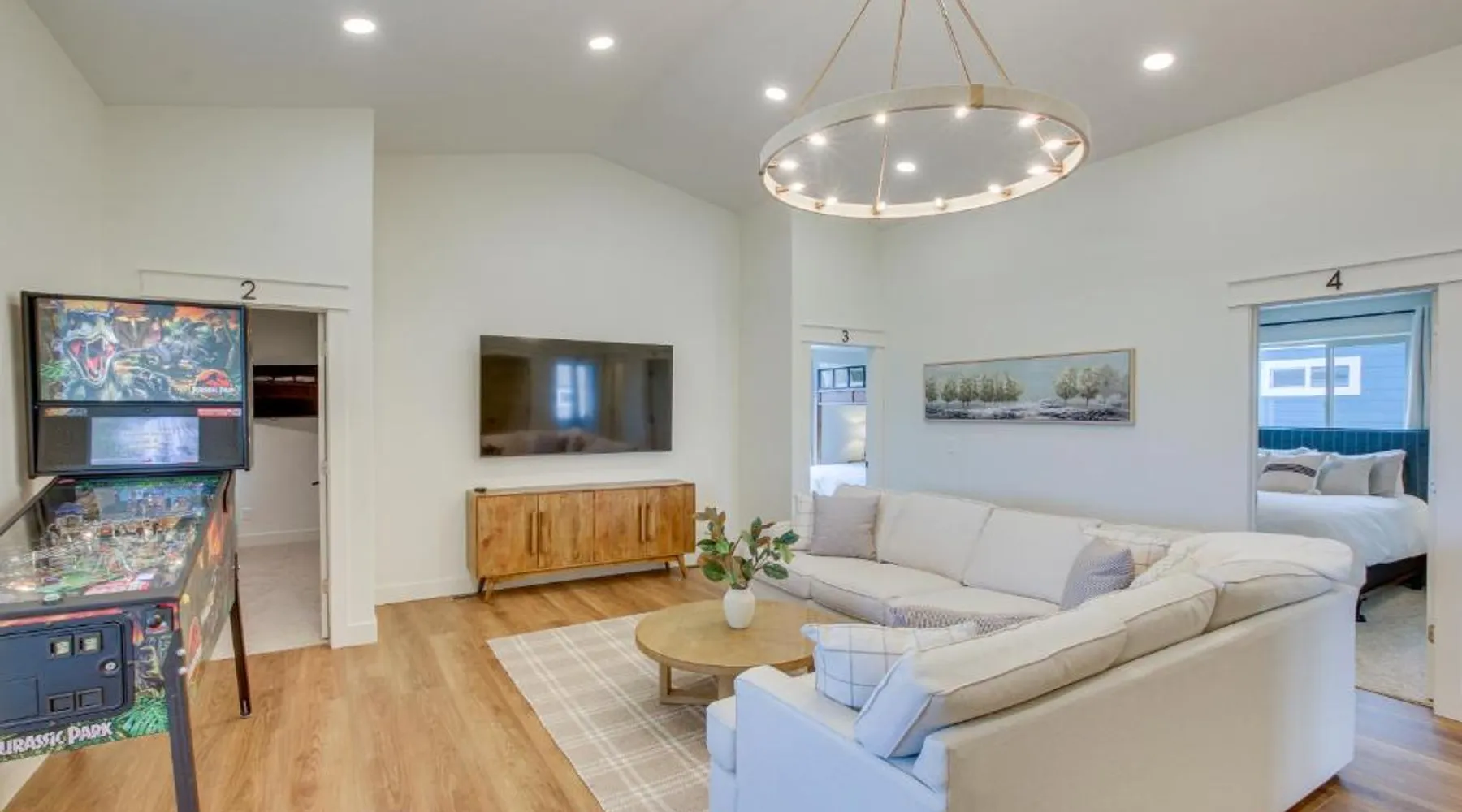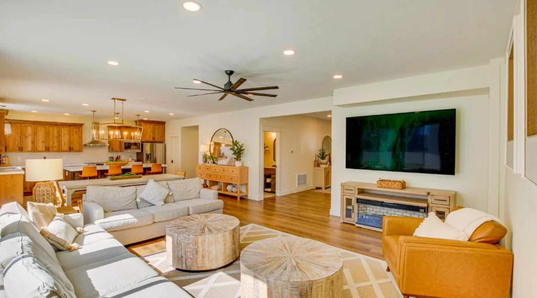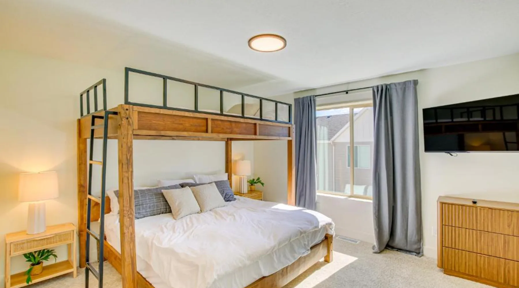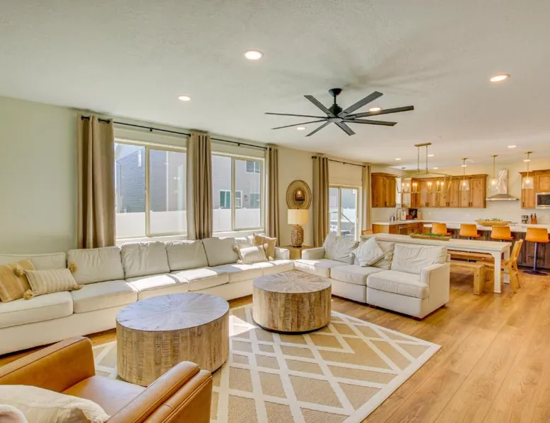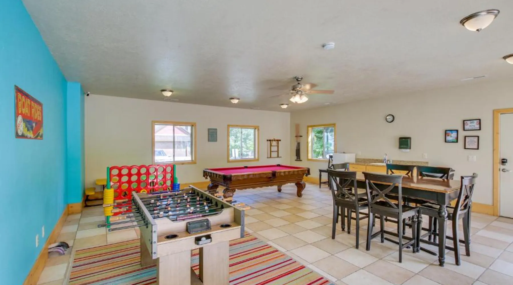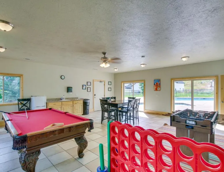 Spacious Accommodations: Spacious Utah Home with Hot Tub Less Than 1 Mi to Bear Lake! in Garden City offers six bedrooms and six bathrooms. The property includes a living room and a fully equipped kitchen. Outdoor Amenities: Guests can enjoy an outdoor swimming pool and a hot tub. The home features a balcony, patio, and outdoor dining area. Free WiFi is available throughout the property. Additional Facilities: The holiday home includes a games room and paid on-site parking. Air-conditioning, a fireplace, and a washing machine enhance comfort. Location and Access: Ogden-Hinckley Airport is 88 mi away. Nearby attractions include Bear Lake, offering scenic views and recreational activities. This holiday home's standout features are the hot tub and fireplace. Featuring a private entrance, this air-conditioned holiday home is consisted of of 2 living rooms, 6 separate bedrooms and 6 bathrooms with a bath and a shower. Guests can make meals in the kitchen that is fitted with a stovetop, a refrigerator, a dishwasher and kitchenware. The spacious holiday home offers a washing machine, a tea and coffee maker, tumble dryer, a barbecue and a flat-screen TV. The unit offers 9 beds.