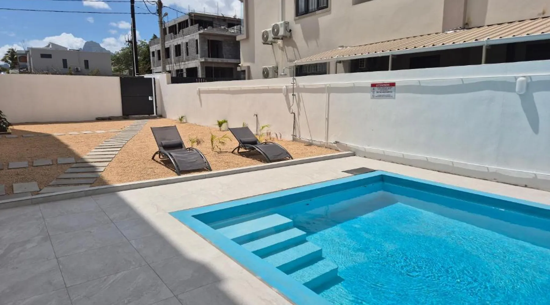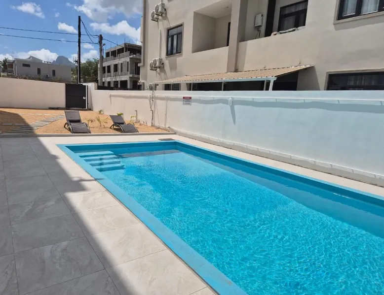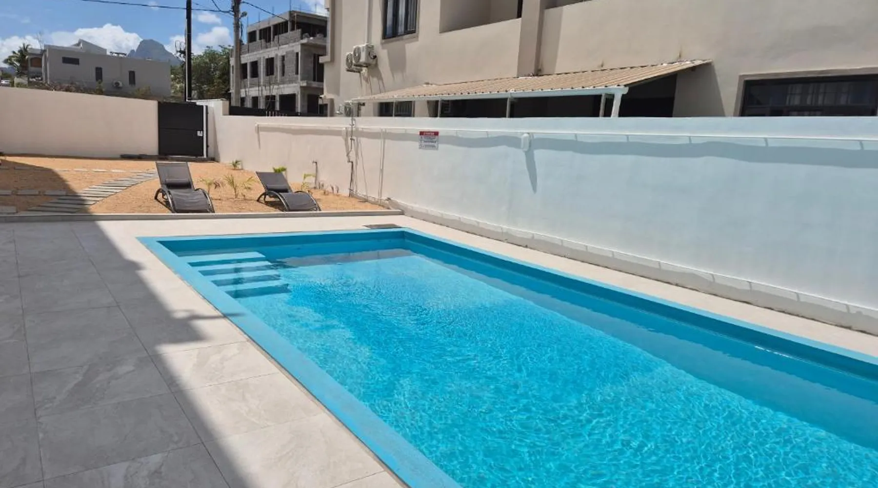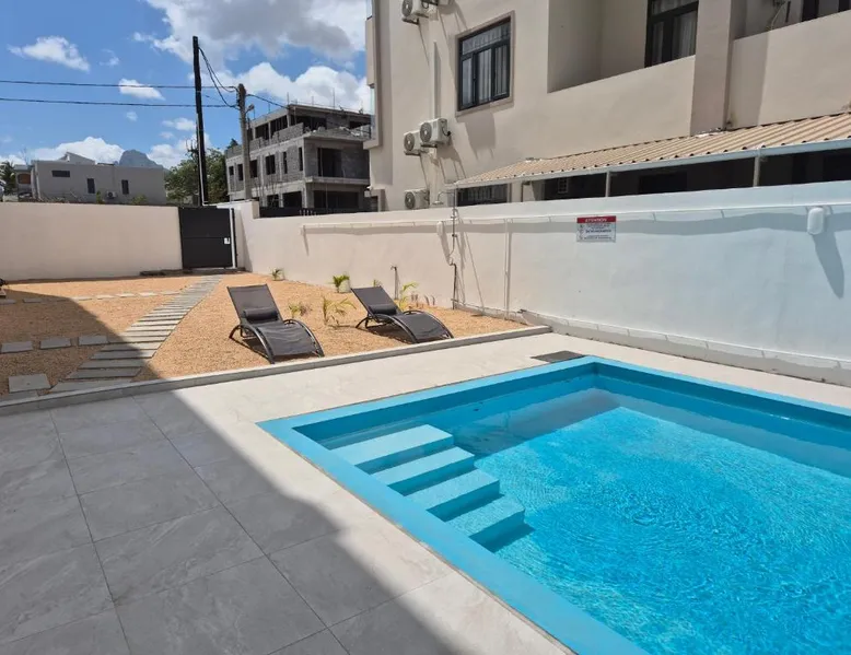 Spacious Accommodations: Skyview Apartment in Flic-en-Flac offers a spacious layout with three bedrooms and a living room. Guests enjoy a terrace, balcony, and garden views. Outdoor Facilities: The apartment features a year-round outdoor swimming pool, open-air bath, and free WiFi. Additional amenities include a paid airport shuttle service, laundry, and car hire. Prime Location: Located 28 mi from Sir Seewoosagur Ramgoolam Airport, the property is an 18-minute walk from Flic en Flac Beach. Nearby attractions include Tamarina Golf Course (5.6 mi) and Caudan Waterfront Casino (14 mi). Guest Satisfaction: Highly rated for room cleanliness, the apartment ensures a comfortable and pleasant stay. The private pool is the standout feature of this apartment. Boasting a private entrance, this air-conditioned apartment comes with 1 living room, 3 separate bedrooms and 1 bathroom with a bath and a shower. Guests can make meals in the kitchen that features a refrigerator, kitchenware and a microwave. The spacious apartment features a washing machine, a tea and coffee maker, a seating area as well as a terrace with garden views. The unit has 3 beds.