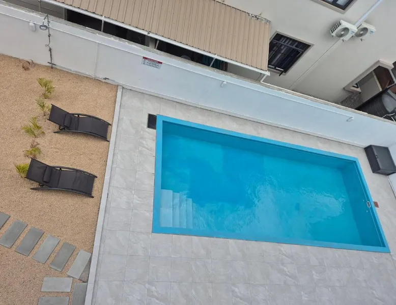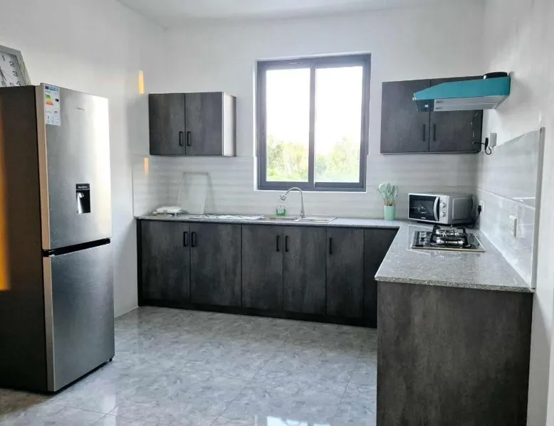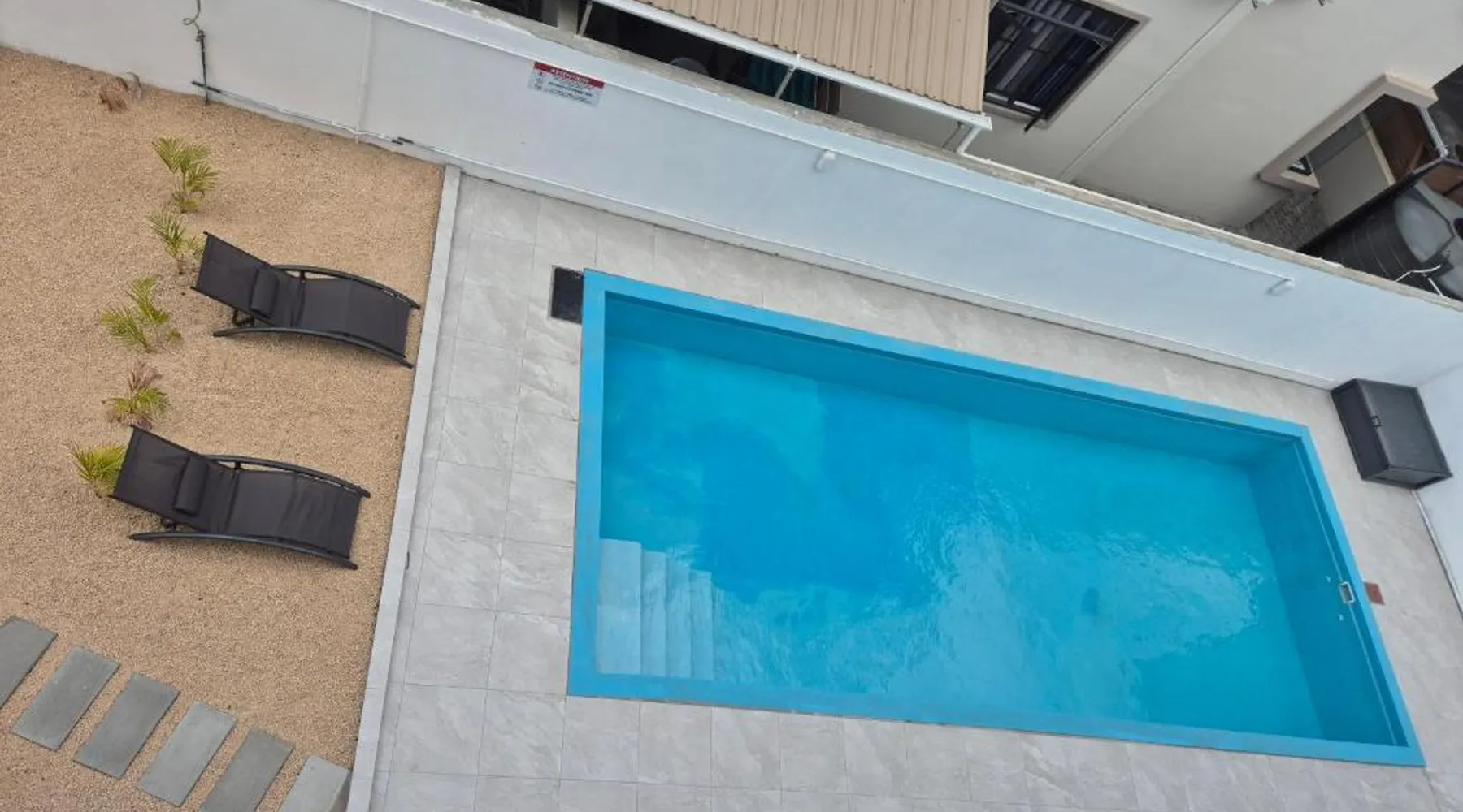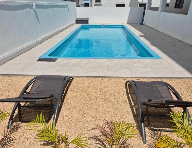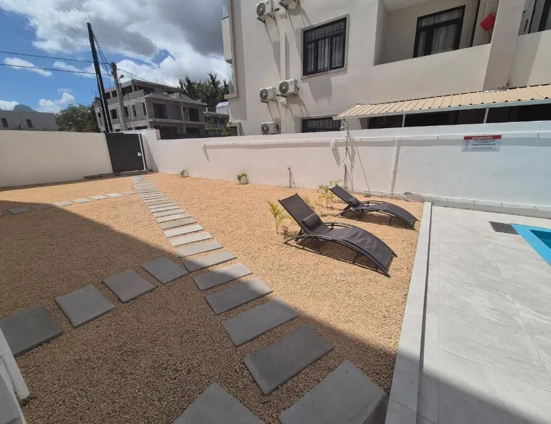 Spacious Accommodations: Skyview Apartment in Flic-en-Flac offers a spacious layout with three bedrooms and a living room. Guests enjoy a terrace, balcony, and garden views. Outdoor Facilities: The apartment features a year-round outdoor swimming pool, open-air bath, and free WiFi. Additional amenities include a paid airport shuttle service, laundry, and car hire. Prime Location: Located 28 mi from Sir Seewoosagur Ramgoolam Airport, the property is an 18-minute walk from Flic en Flac Beach. Nearby attractions include Tamarina Golf Course (5.6 mi) and Caudan Waterfront Casino (14 mi). Guest Satisfaction: Highly rated for room cleanliness, the apartment ensures a comfortable and pleasant stay. The private pool is the standout feature of this apartment. Boasting a private entrance, this air-conditioned apartment comes with 1 living room, 3 separate bedrooms and 1 bathroom with a bath and a shower. Guests can make meals in the kitchen that features a refrigerator, kitchenware and a microwave. The spacious apartment features a washing machine, a tea and coffee maker, a seating area as well as a terrace with garden views. The unit has 3 beds.