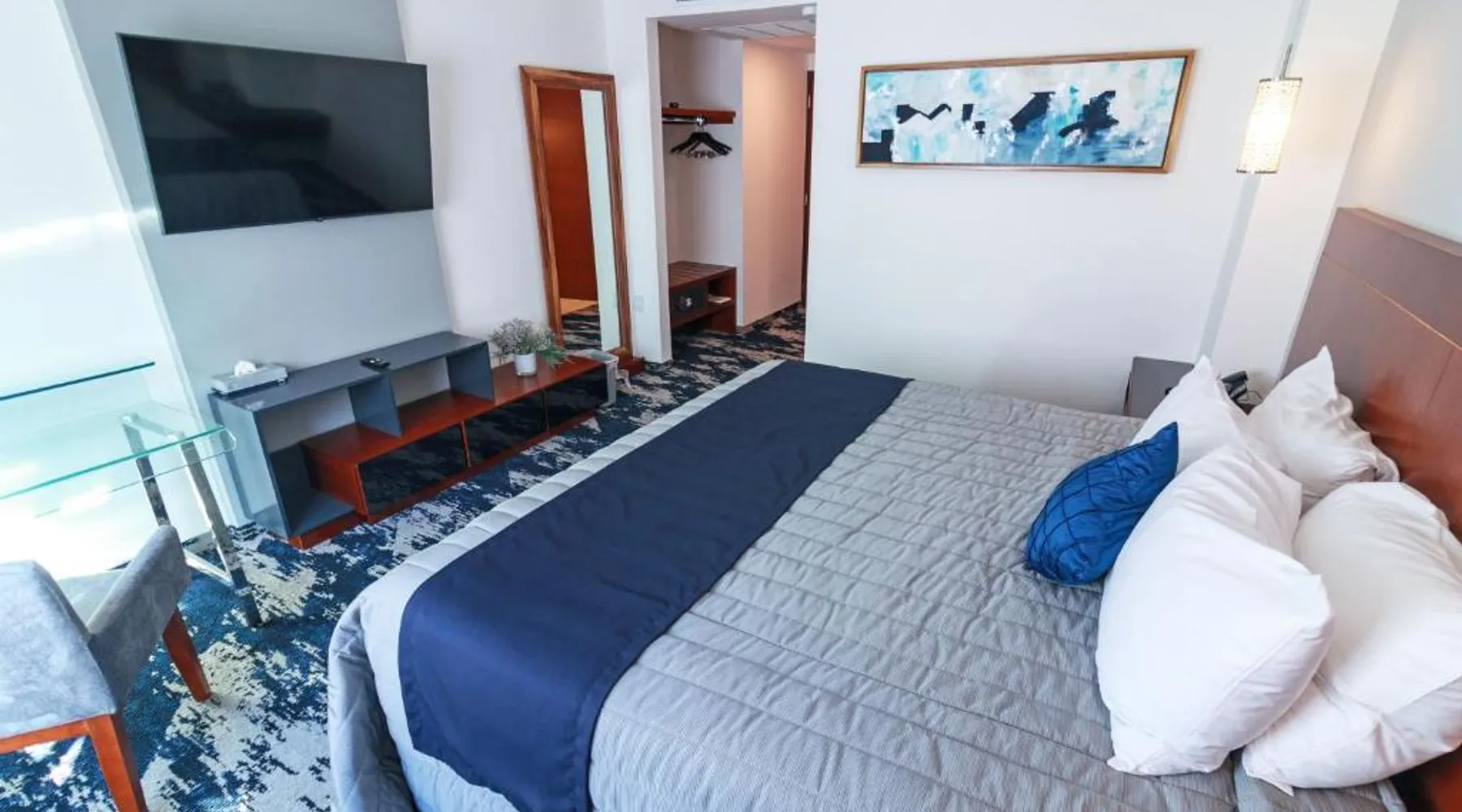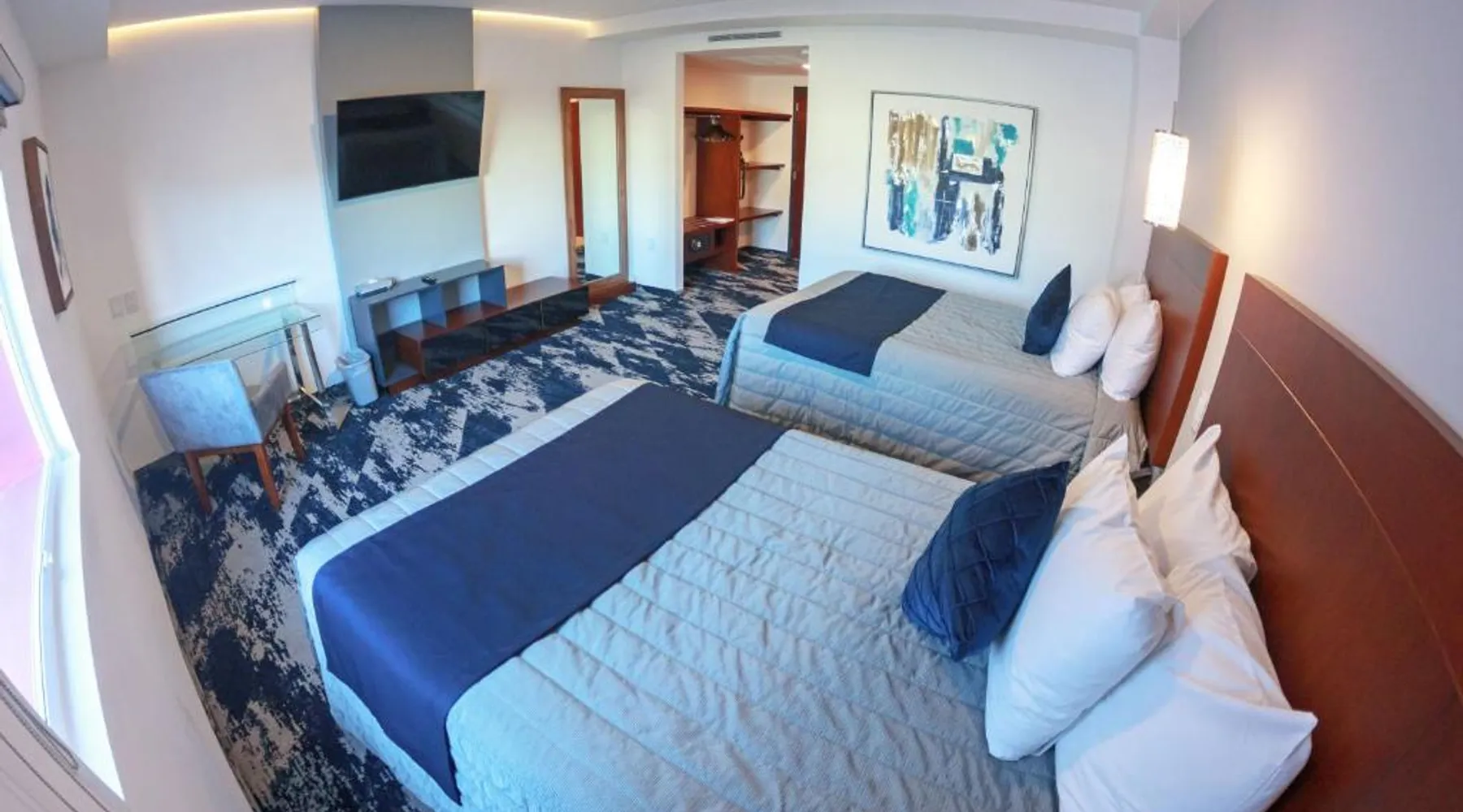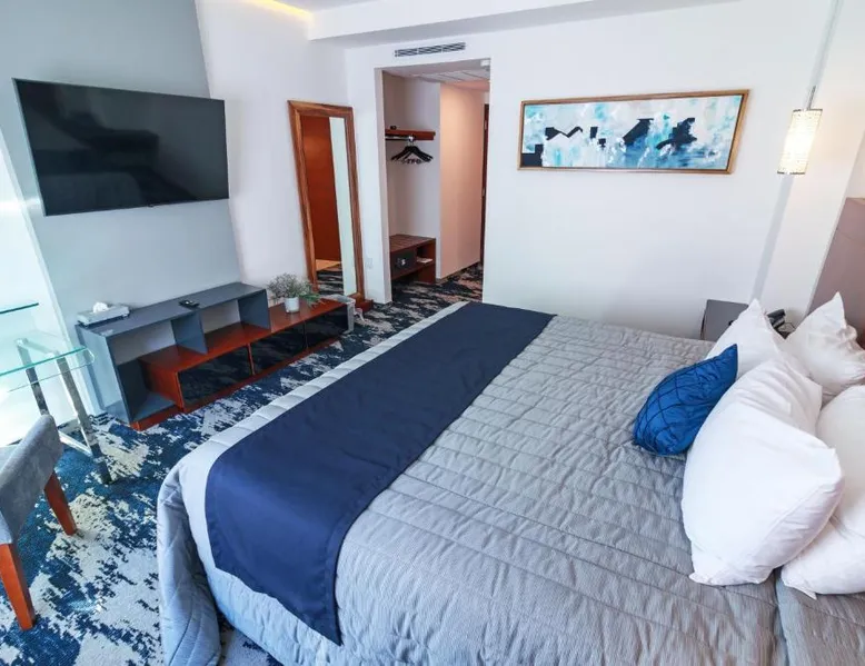 Comfortable Accommodations: Hotel Fray Select in Tepic offers comfortable rooms with air-conditioning, private bathrooms, and city views. Each room includes a work desk, free toiletries, and soundproofing for a pleasant stay. Exceptional Facilities: Guests enjoy a sun terrace, restaurant, bar, and free WiFi. Additional amenities include a elevator, 24-hour front desk, concierge service, and free on-site private parking. Dining Experience: The modern, romantic restaurant serves Mexican, international, and barbecue grill cuisines. Breakfast includes local specialties, warm dishes, juice, pancakes, cheese, and fruits. Brunch, lunch, and dinner are also available. Prime Location: Located 8.7 mi from Tepic Airport and 4.3 mi from Amado Nervo Auditorium, the hotel provides easy access to local attractions. Free WiFi is available throughout the property. Featuring free toiletries, this twin room includes a private bathroom with a walk-in shower and a hairdryer. The air-conditioned twin room features a flat-screen TV with cable channels, soundproof walls, a wardrobe, a safe deposit box as well as city views. The unit has 2 beds.