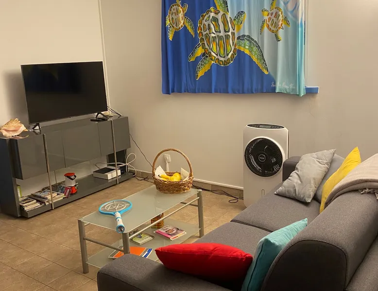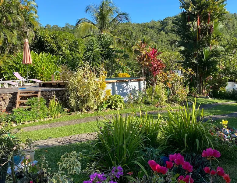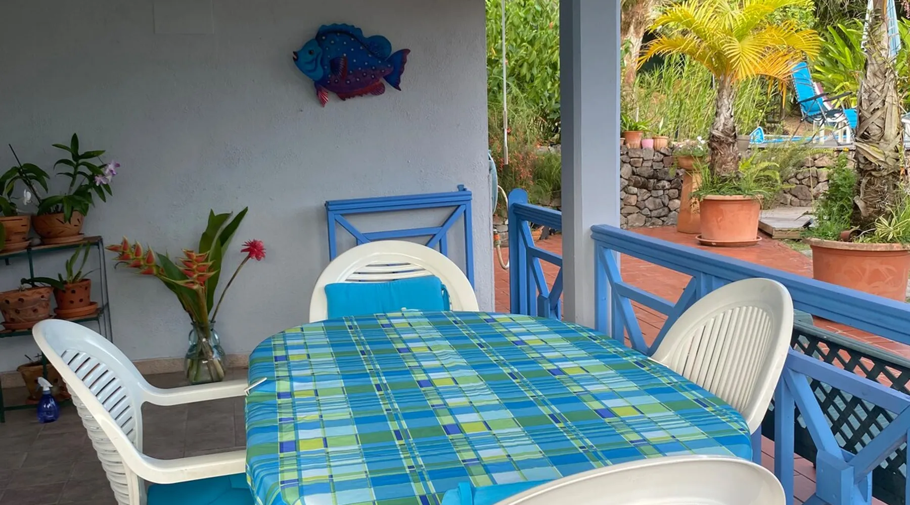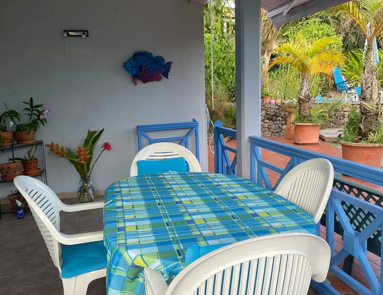 The apartment is located on the ground floor of a villa in a quiet rural area 3 km from the beaches of Le Diamant and Anses d 'Arlets. It consists of a living kitchen and an air-conditioned room. It has a terrace and a separate entrance. You will have a wooded and flowered garden and an above ground pool. The first breakfast is offered and the owner can lend beach, kitchen and ironing equipment.