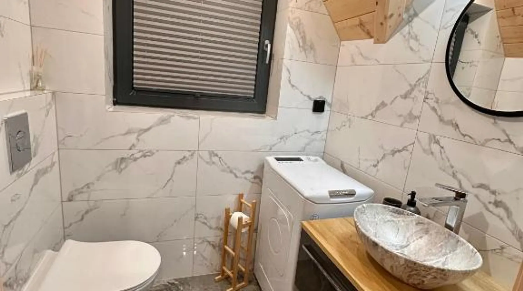 Comfortable Accommodations: Chochołowski Zakątek in Chocholów offers a holiday home with two bedrooms and two bathrooms. The living room features a sofa bed and a dining area. Guests enjoy a fully equipped kitchen, balcony, terrace, and garden views. Outdoor Amenities: The property includes a sun terrace, outdoor fireplace, and an outdoor seating area. Free WiFi is available throughout the holiday home. Additional facilities include a lounge, children's playground, and outdoor play area. Local Attractions: Located 11 mi from Gubalowka Mountain and 14 mi from Zakopane Railway Station, Chochołowski Zakątek provides easy access to skiing, walking tours, and cycling. Nearby attractions include Tatra National Park (15 mi) and Orava Castle (29 mi). Guest Satisfaction: Highly rated by guests, the property is praised for its friendly host. Private check-in and check-out services ensure a comfortable stay. This holiday home offers a fireplace. Guests will find a stovetop, a refrigerator, a microwave and an electric kettle in the well-equipped kitchen. The holiday home also provides guests with a barbecue. Featuring a terrace with garden views, this holiday home also provides a private entrance and a flat-screen TV. The unit offers 5 beds.