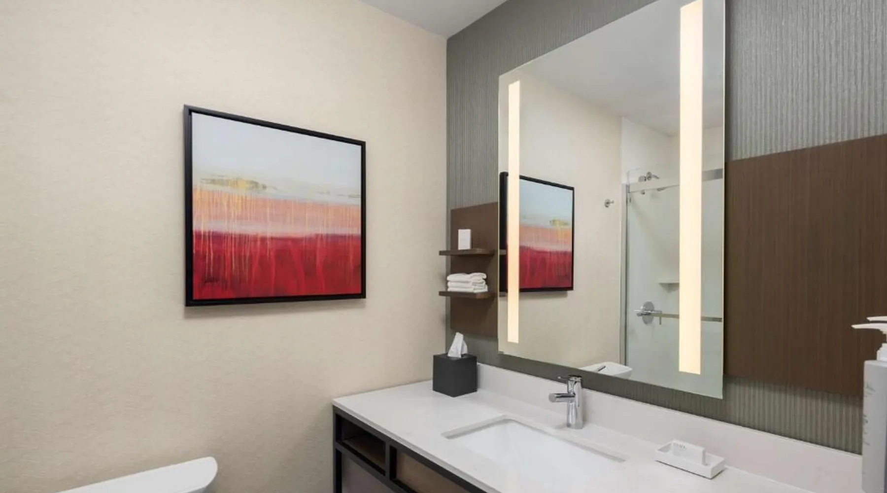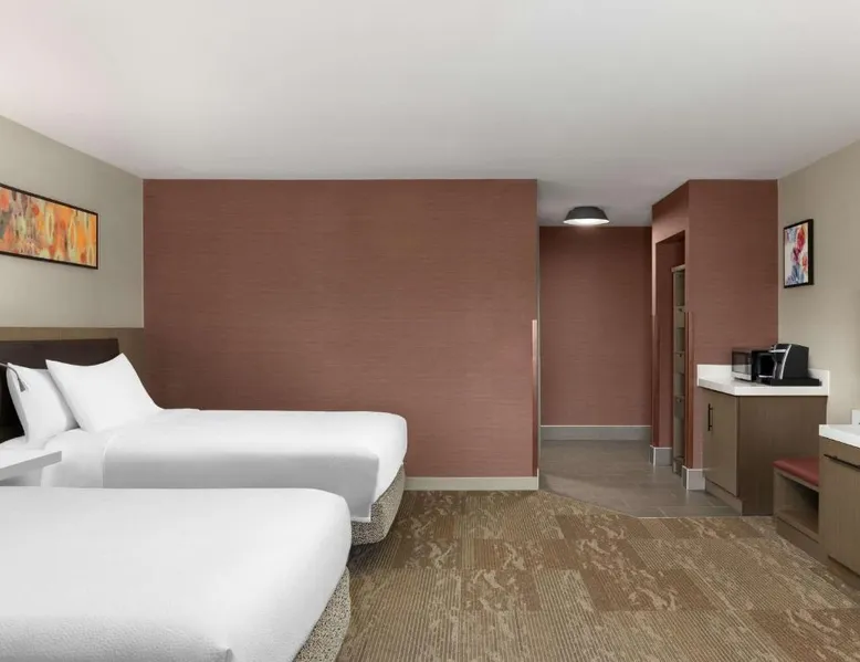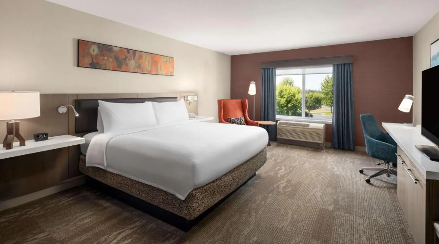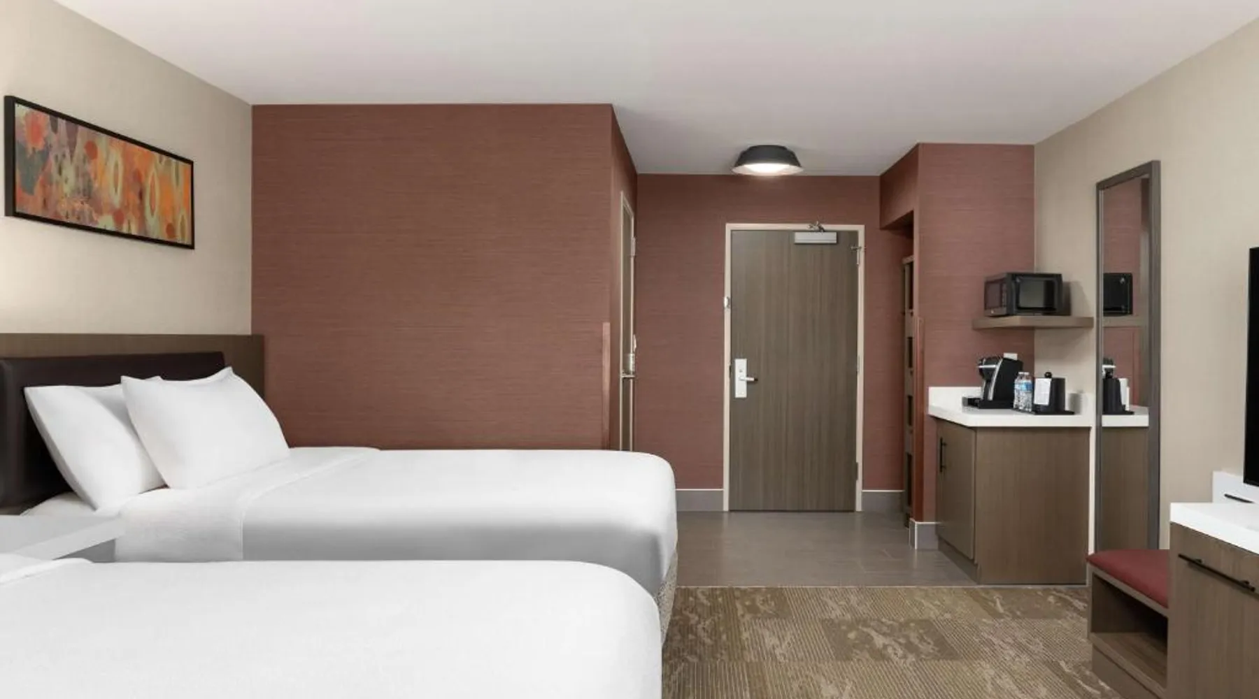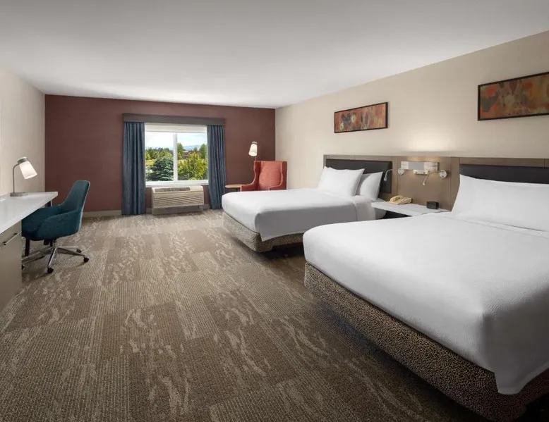 Comfortable Accommodations: Rooms feature air-conditioning, private bathrooms, tea and coffee makers, hairdryers, and free toiletries. Each room includes a work desk, refrigerator, microwave, and TV. Exceptional Facilities: Guests enjoy a fitness center, indoor swimming pool, and free airport shuttle service. Additional amenities include a hot tub, lounge, and electric vehicle charging station. Dining Options: The on-site restaurant serves American cuisine for lunch and dinner. A buffet breakfast with warm dishes, juice, fresh pastries, pancakes, and fruits is available. Prime Location: Located in Airway Heights, the hotel is 1.9 mi from Spokane International Airport. Nearby attractions include Spokane Center (7.5 mi) and Knitting Factory (6.2 mi). This air-conditioned quadruple room includes a flat-screen TV with cable channels and a private bathroom. The unit offers 1 bed.