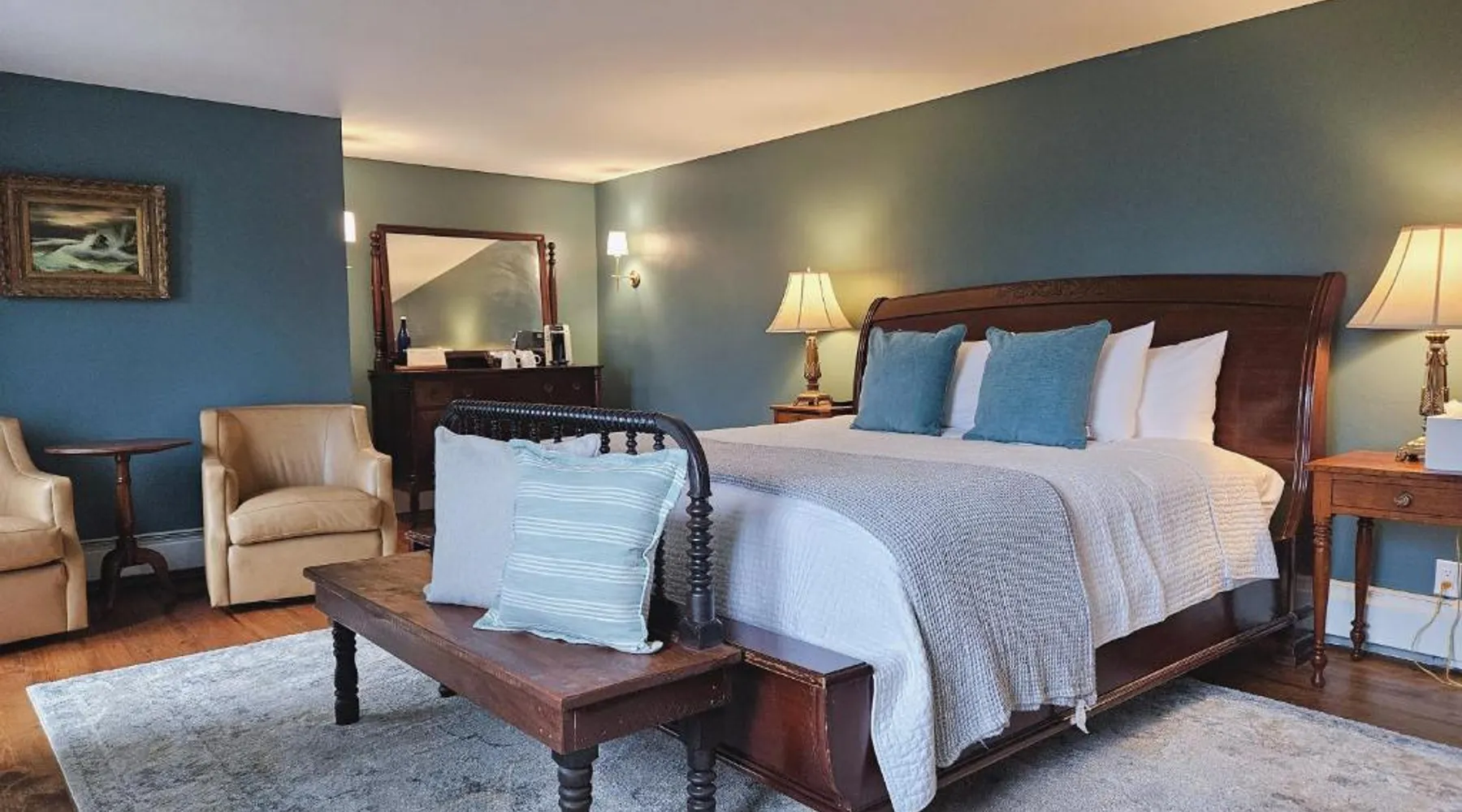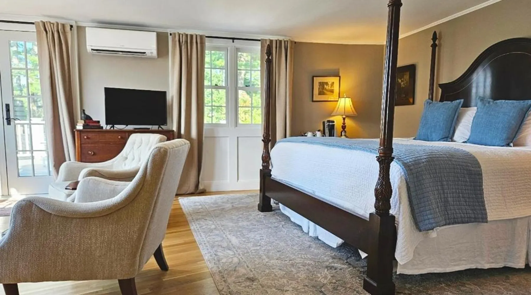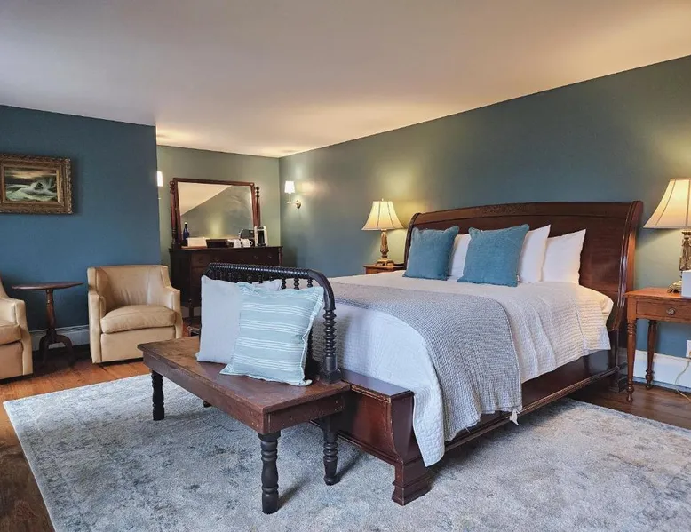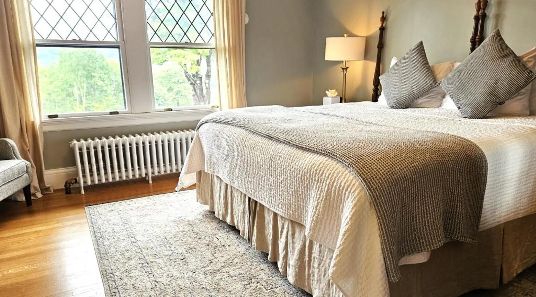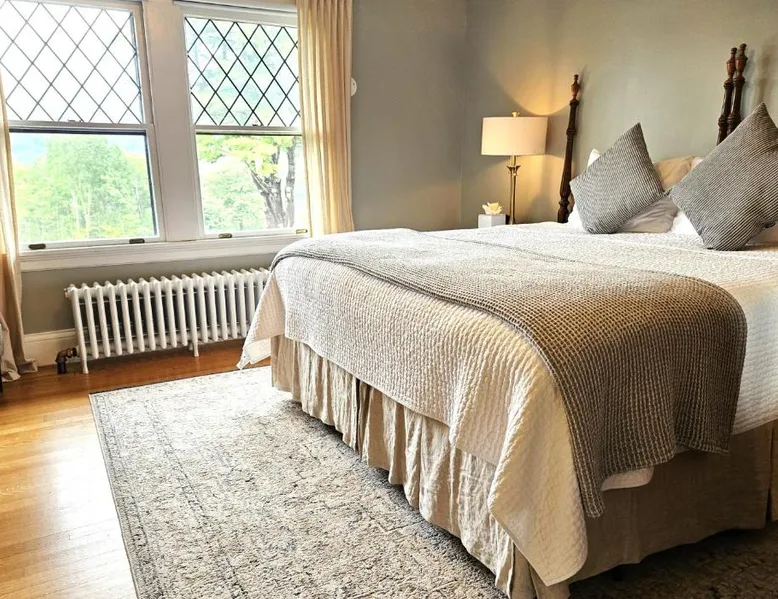 Elegant Accommodations: The Manor on Golden Pond in Holderness offers recently renovated adults-only rooms with private bathrooms. Each room features a comfortable bed, modern amenities, and a relaxing atmosphere. Exceptional Facilities: Guests can enjoy spa facilities, a swimming pool with a view, a lush garden, and free WiFi. Additional amenities include a restaurant, bar, and outdoor seating area, ensuring a pleasant stay. Dining Experience: The romantic restaurant serves American cuisine with vegetarian, vegan, gluten-free, and dairy-free options. Breakfast is available in-room, and room service caters to special dietary needs. Convenient Location: Located 50 mi from Lebanon Municipal Airport and 31 mi from Loon Mountain, the property provides easy access to local attractions. Free on-site parking and electric vehicle charging enhance guest convenience. The unit has 2 beds.