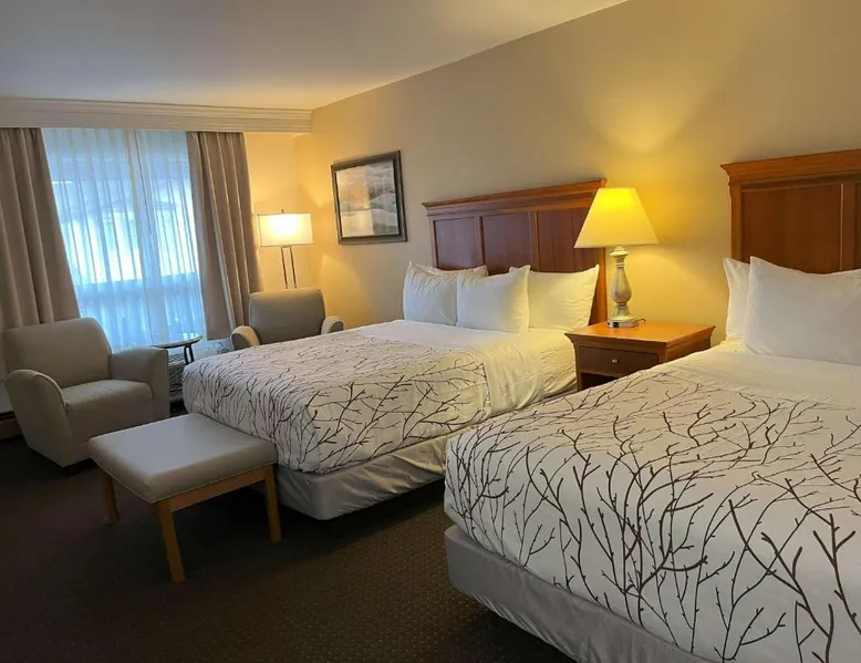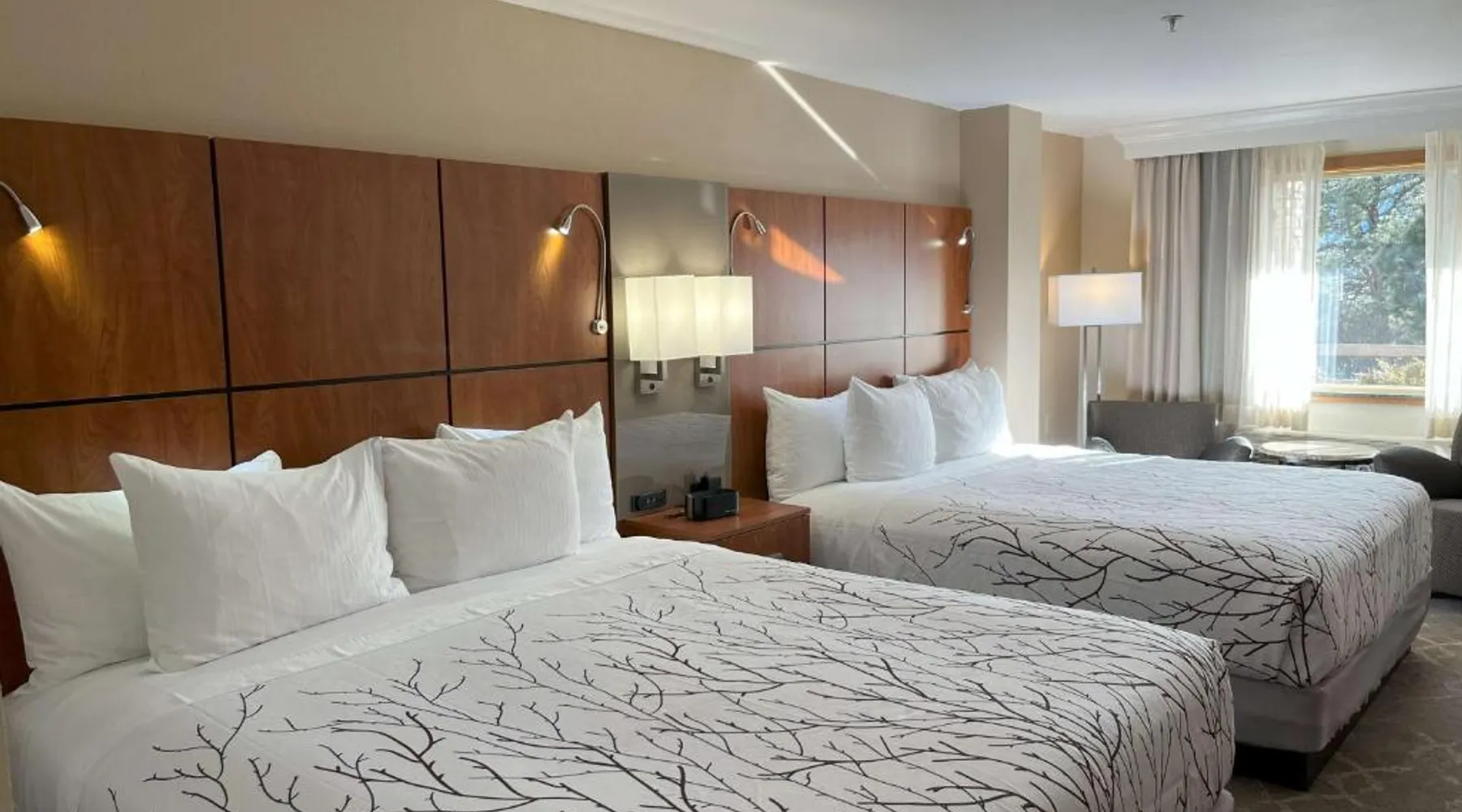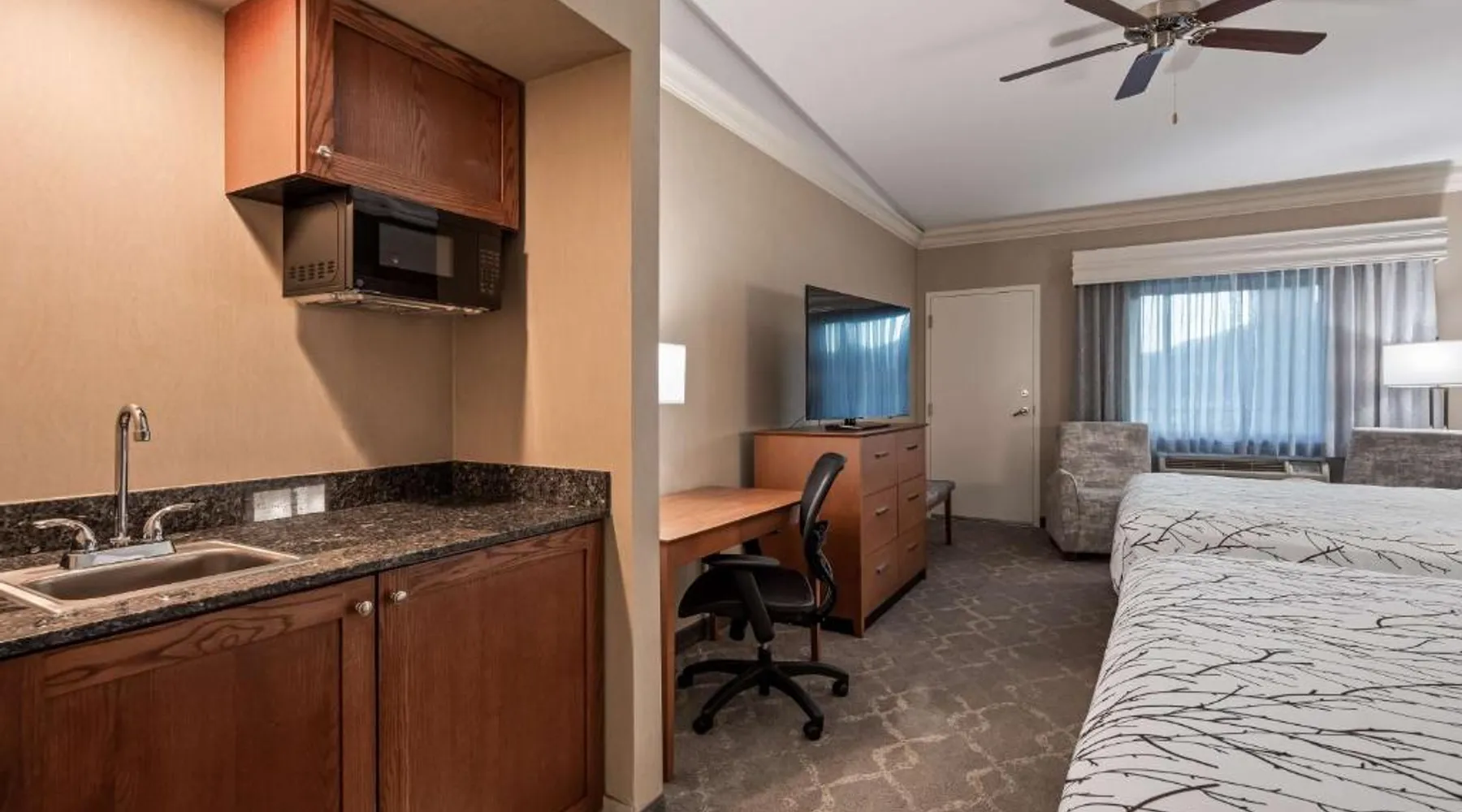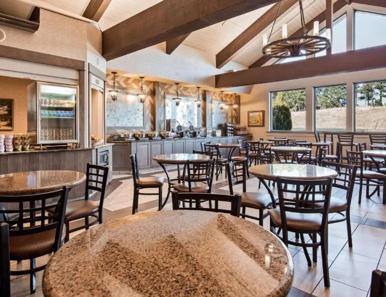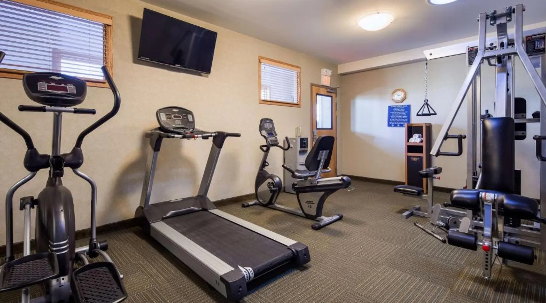 Comfortable Accommodations: Best Western Plus Silver Saddle Inn in Estes Park offers family rooms with balconies and seating areas. Each room includes a work desk, refrigerator, microwave, and free WiFi. Leisure Facilities: Guests can enjoy an indoor swimming pool, hot tub, and fitness center. Additional amenities include a minimarket, electric vehicle charging station, and bicycle parking. Dining Experience: A complimentary American buffet breakfast is served daily, featuring fresh pastries, fruits, and juices. Convenient Location: Located 2 minutes from Rocky Mountain Adventures and less than 0.6 mi from Lakes Estes Marina, the hotel is near attractions such as Wynbrier Wildlife Gallery and Open Air Adventure Park. The quadruple room offers a tea and coffee maker and a safe deposit box. The unit has 2 beds.