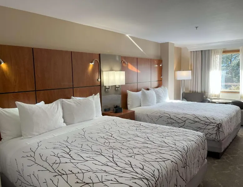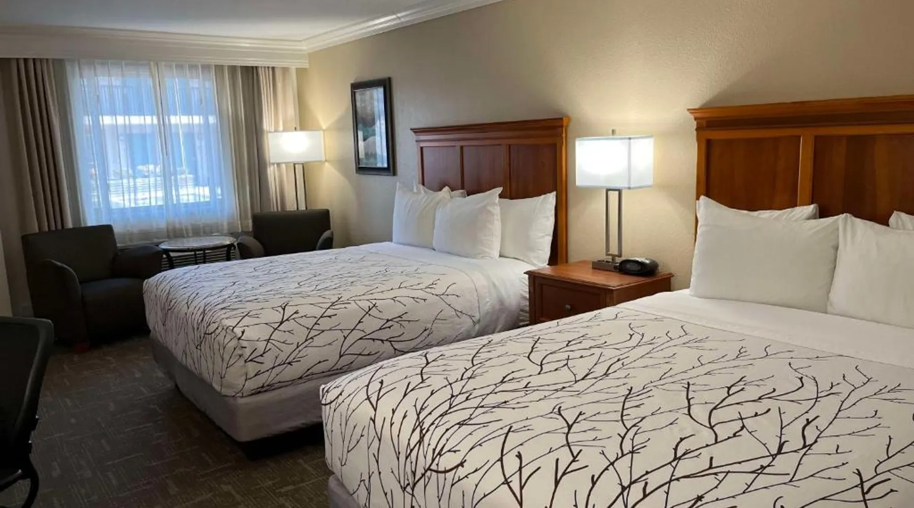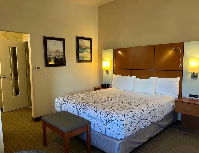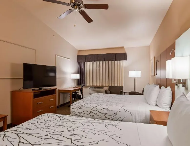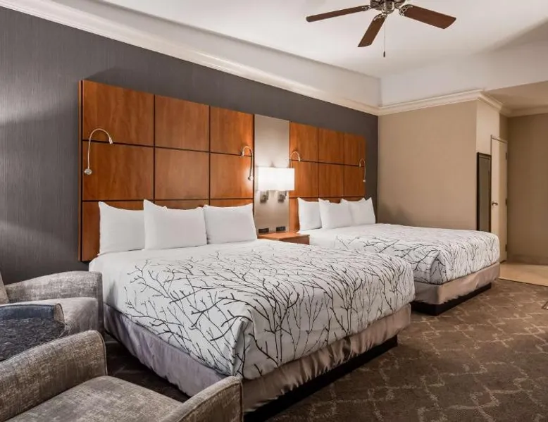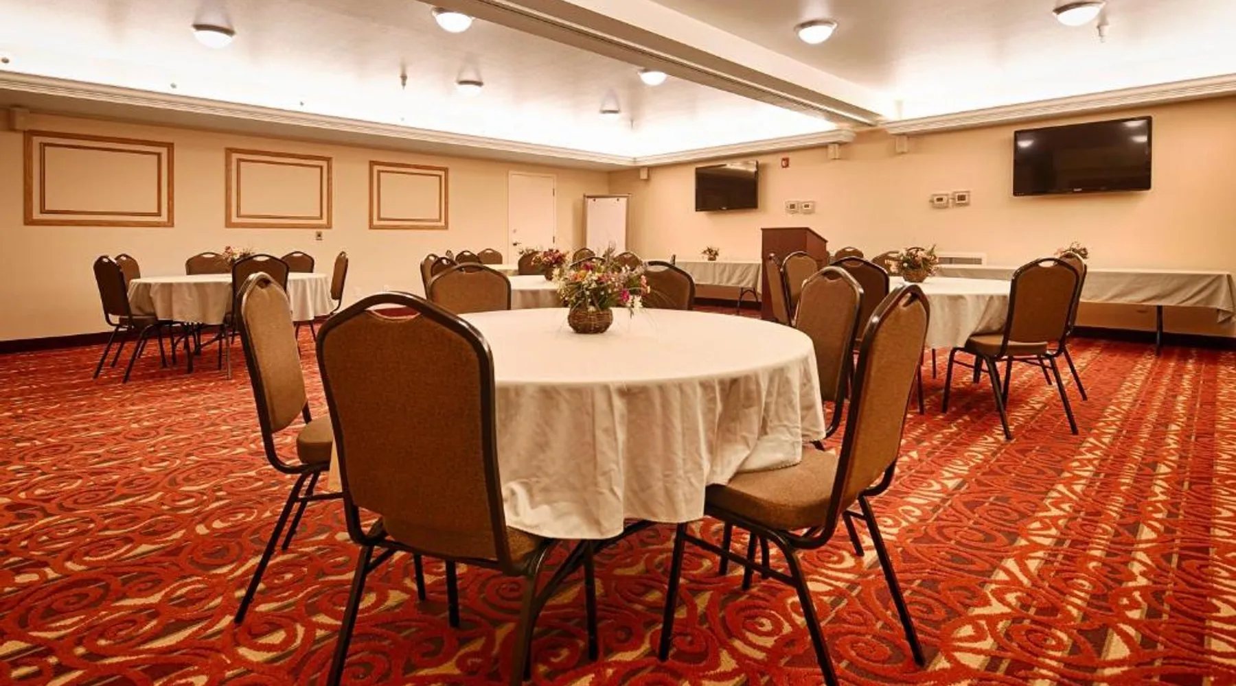 Comfortable Accommodations: Best Western Plus Silver Saddle Inn in Estes Park offers family rooms with balconies and seating areas. Each room includes a work desk, refrigerator, microwave, and free WiFi. Leisure Facilities: Guests can enjoy an indoor swimming pool, hot tub, and fitness center. Additional amenities include a minimarket, electric vehicle charging station, and bicycle parking. Dining Experience: A complimentary American buffet breakfast is served daily, featuring fresh pastries, fruits, and juices. Convenient Location: Located 2 minutes from Rocky Mountain Adventures and less than 0.6 mi from Lakes Estes Marina, the hotel is near attractions such as Wynbrier Wildlife Gallery and Open Air Adventure Park. The quadruple room offers a tea and coffee maker and a safe deposit box. The unit has 2 beds.