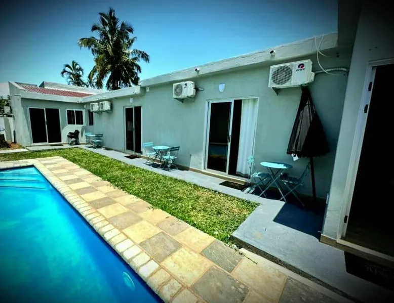 Comfortable Accommodations: Guest house MALAGUETA INN II in Maputo offers comfortable rooms with air-conditioning, private bathrooms, and garden views. Each room includes a tea and coffee maker, work desk, and free toiletries. Exceptional Facilities: Guests can enjoy a sun terrace, outdoor swimming pool, and lush garden. The property features a bar and free WiFi, ensuring relaxation and connectivity. Dining Options: Breakfast options include continental, à la carte, and vegetarian, with juice, cheese, and fruits. Additional amenities include a dining area, microwave, and TV. Prime Location: Located 3.7 mi from Maputo International Airport, the hotel is near attractions such as the Museum of Natural History (18-minute walk) and Maputo City Hall (1.2 mi). Guests can also engage in kayaking or canoeing in the surrounding area. The air-conditioned suite has 1 bedroom and 1 bathroom with a shower and a hairdryer. The suite features a flat-screen TV, a tea and coffee maker, a dining area, a wardrobe as well as garden views. The unit has 1 bed.