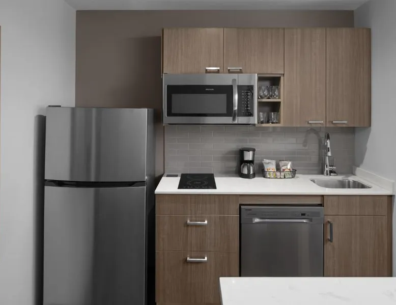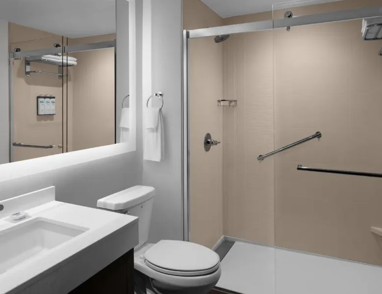 Comfortable Accommodations: Hyatt House Lansing-University Area in Lansing offers rooms with air-conditioning, private bathrooms, and modern amenities. Guests enjoy free WiFi, flat-screen TVs, and work desks. Exceptional Facilities: The hotel features a fitness center, indoor swimming pool, terrace, and outdoor fireplace. Additional amenities include a lounge, minimarket, and barbecue facilities. Dining Experience: A traditional restaurant serves American and Italian cuisines with vegetarian options. Breakfast is available as continental, American, buffet, and vegetarian. Prime Location: Located 7.5 mi from Capital Region International Airport, the hotel is near attractions such as Jack Breslin Arena and Wharton Center. Boating is available in the surroundings. This air-conditioned quadruple room is consisted of of a flat-screen TV with cable channels and a private bathroom. The unit has 2 beds.