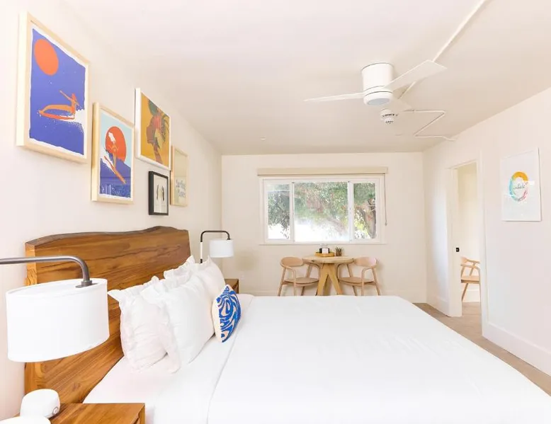 Laguna Beach features local shopping, dining and art galleries all within a short walk from the hotel, this California beachfront hotel features a year-round saltwater pool, hot tub and sauna. Boasting beautiful ocean views, all guest rooms include free Wi-Fi. Featuring a blend of contemporary and traditional decor, all rooms at Laguna Surf Lodge by SCP Hotels include a flat-screen TV with cable. All comfortably furnished rooms provide tea and coffee making facilities, a microwave and fridge. Festival of Arts and Pageant of the Masters is a top Laguna Beach attraction and is located 0.9 miles from the hotel The Laguna Beach Art Gallery is a 15-minute walk away. This suite consists of 1 living room, 2 separate bedrooms and 1 bathroom with a shower and free toiletries. The suite provides heating. The unit offers 4 beds.