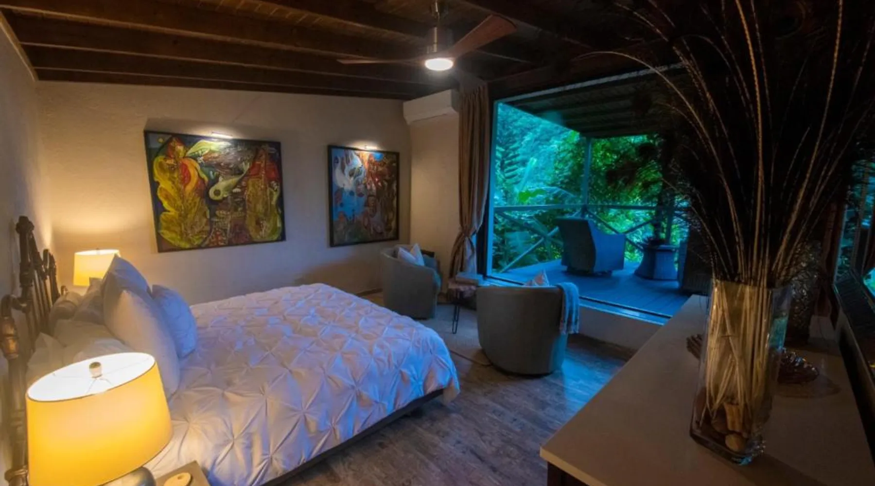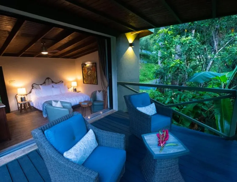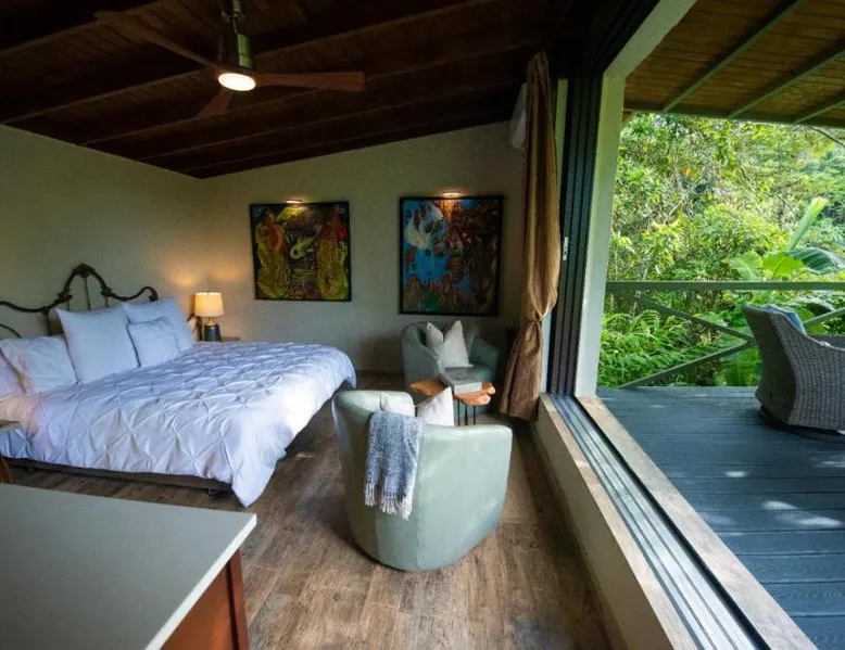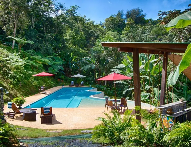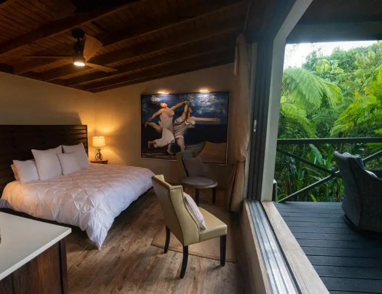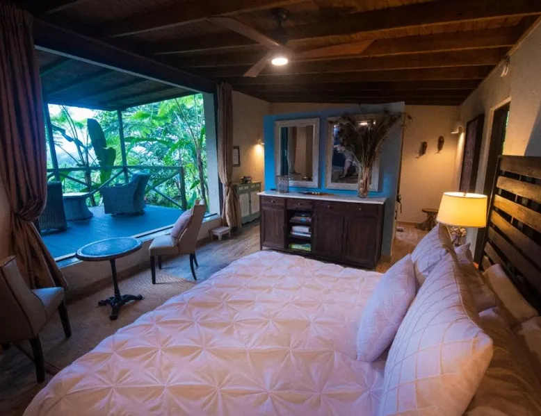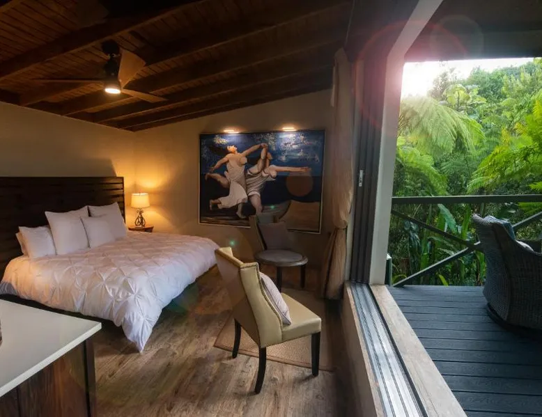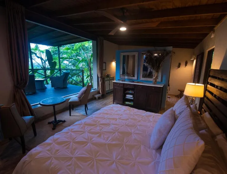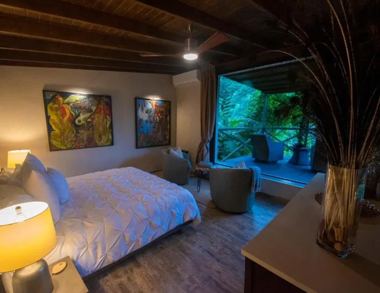 Elegant Accommodations: Mont Carpe Diem in Bayamon offers adults-only resort accommodations with private balconies and garden views. Each room features air-conditioning, a private bathroom, and modern amenities. Exceptional Facilities: Guests can enjoy a swimming pool with a view, open-air bath, terrace, and lush garden. The resort includes a restaurant, bar, and free WiFi, ensuring a comfortable and relaxing stay. Dining Experience: 2> The romantic restaurant serves French, Italian, Mediterranean, and Spanish cuisines, accommodating vegetarian, vegan, and gluten-free diets. Breakfast options include continental, American, and à la carte. Prime Location: Located 20 mi from Isla Grande Airport, the resort is near attractions such as Fort Buchannan (14 mi) and the Museum of Art of Puerto Rico (18 mi). Free on-site private parking is available. The spacious double room offers air conditioning, a private entrance, a terrace with garden views as well as a private bathroom boasting a walk-in shower. The unit has 1 bed.