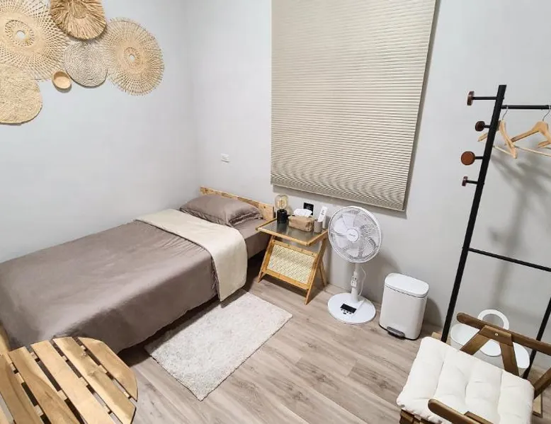 Essential Facilities: The property offers a garden and free WiFi, providing a relaxing environment for all guests. Comfortable Accommodations: Rooms include a lounge, luggage storage, and free on-site private parking. Additional amenities feature a balcony, bath, work desk, and parquet floors. Outdoor Spaces: Guests can enjoy garden and mountain views from the patio and outdoor dining area. The inner courtyard offers a peaceful retreat. Local Attractions: Tai'an Hot Spring is 8.7 mi away, and hiking trails surround the property. Taichung International Airport is 32 mi from the camping. Providing free toiletries, this double room includes a shared bathroom with a bath, a shower and a hairdryer. The double room is furnished with a desk and a seating area and provides a dining area, a wardrobe and garden views. The unit offers 1 bed.