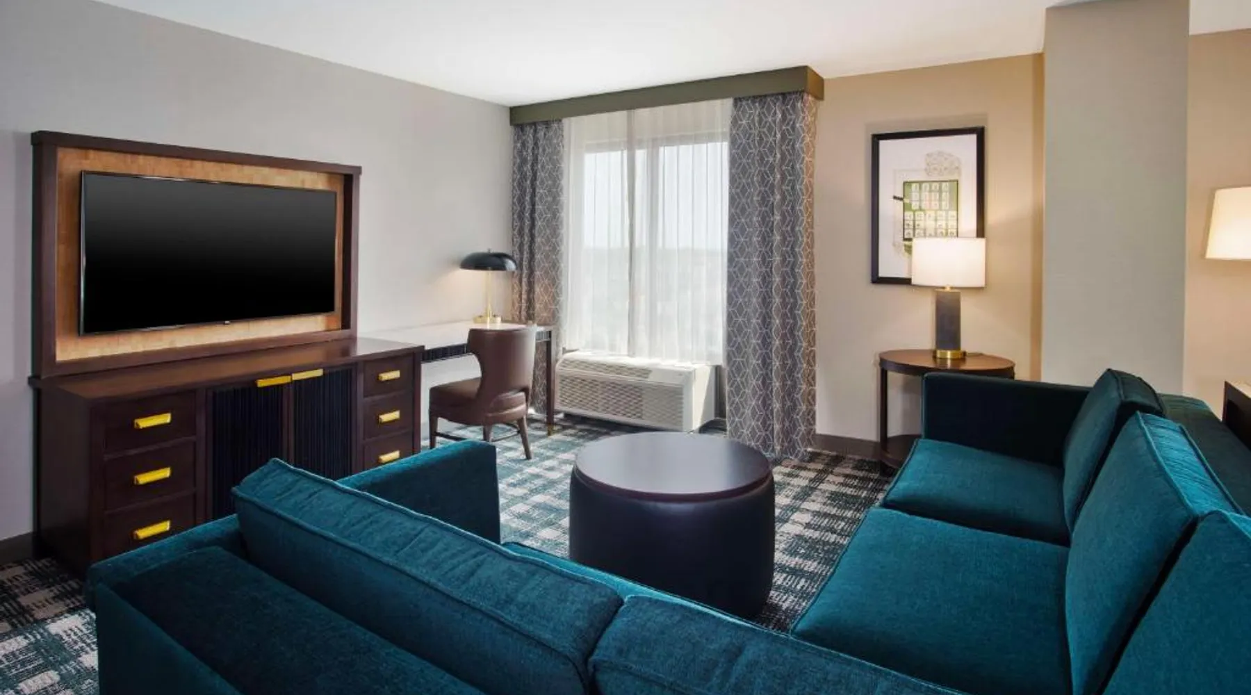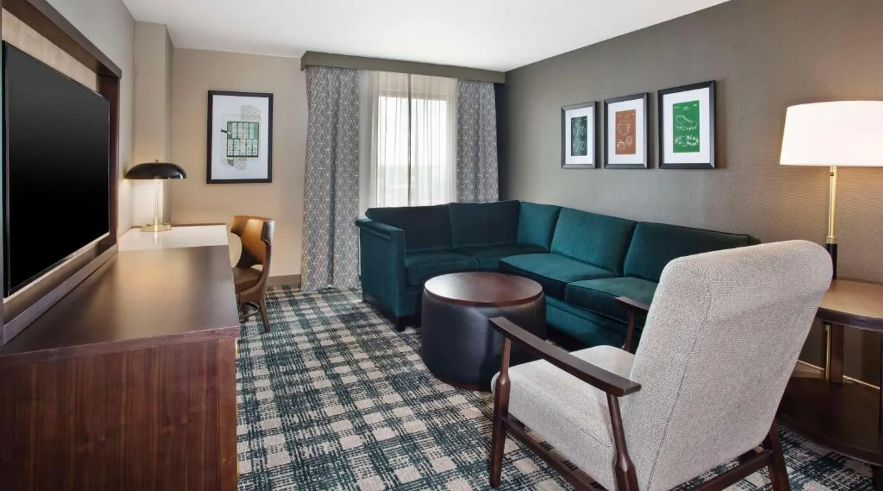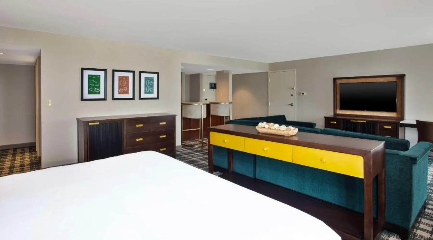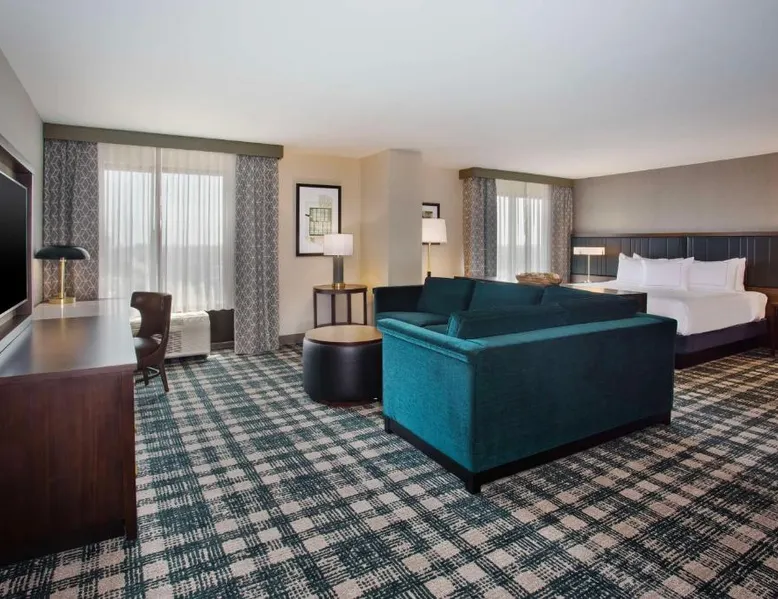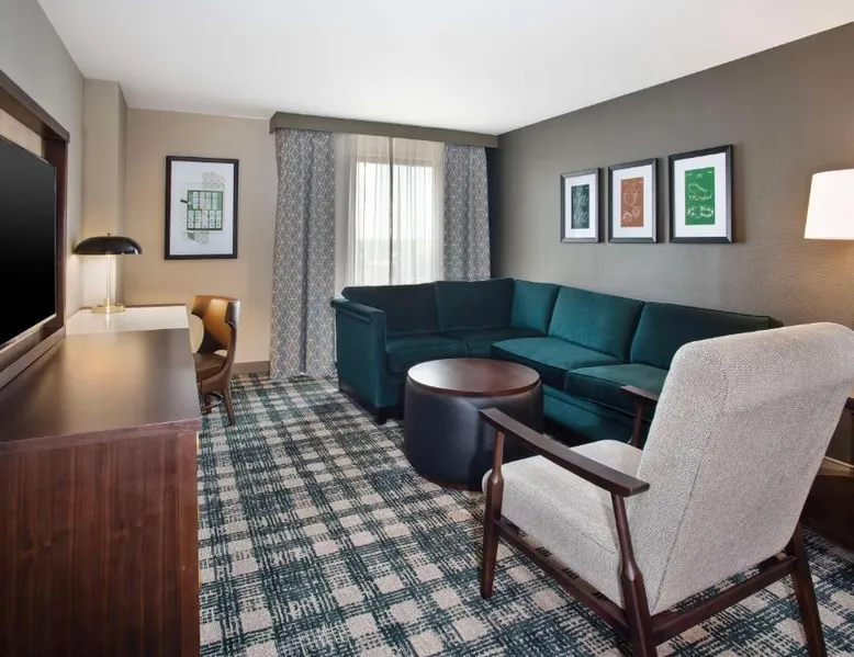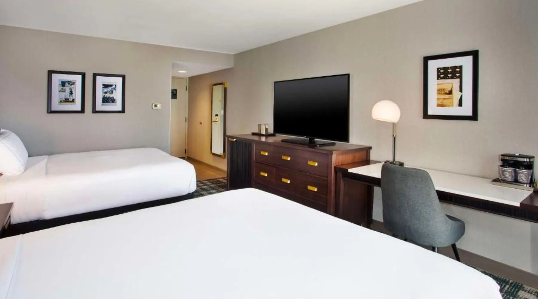 Just off the banks of the Grand River and less than a 4-minute walk from the Michigan State Capitol building, this Lansing hotel features a 24-hour business center, on-site restaurant and bar and indoor swimming pool. Every room at DoubleTree by Hilton Lansing provides a 32-inch flat-screen LCD HDTV with satellite and premium movie channels. A work desk and plush lounge seating are also included. Guests can grab a drink at the bar or enjoy a steak dinner at Capitol City Grille and Lounge. The Lansing Center can be accessed through the indoor walkway skybridge connected to the hotel. Michigan State University is 4 miles from this hotel. The quadruple room provides air conditioning, a tea and coffee maker, a safe deposit box, heating and a flat-screen TV with cable channels. The unit offers 2 beds.