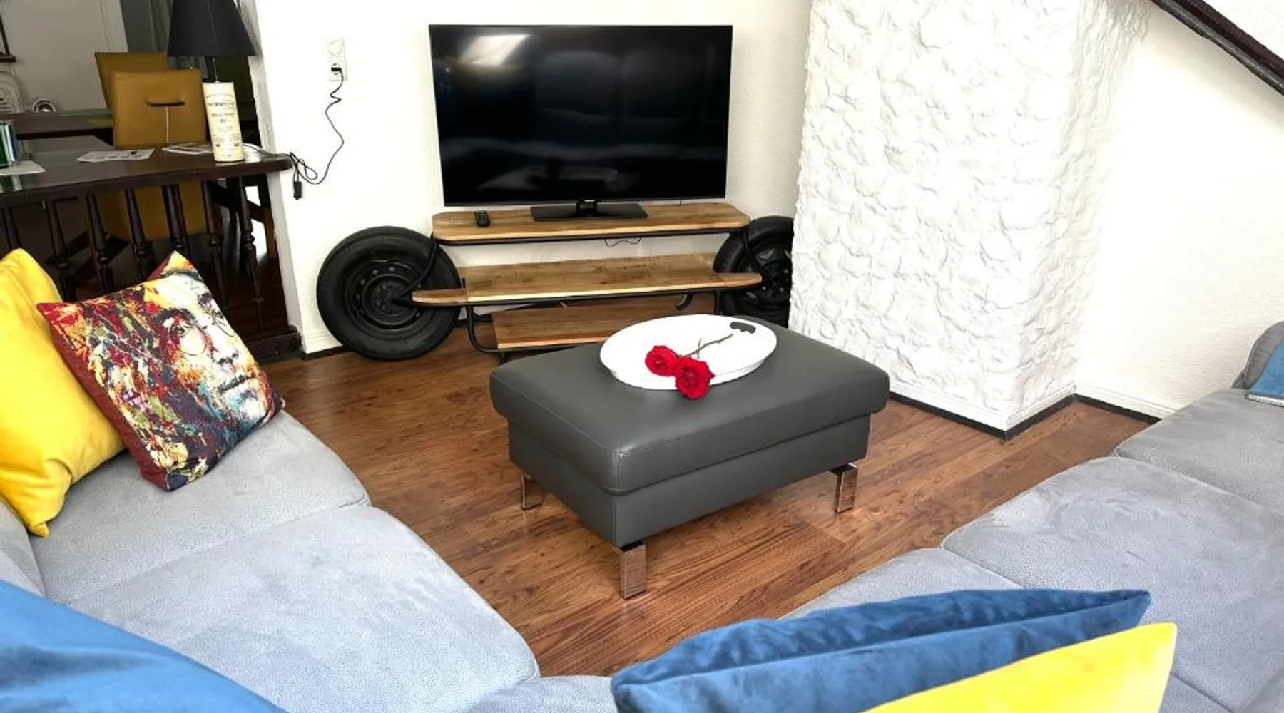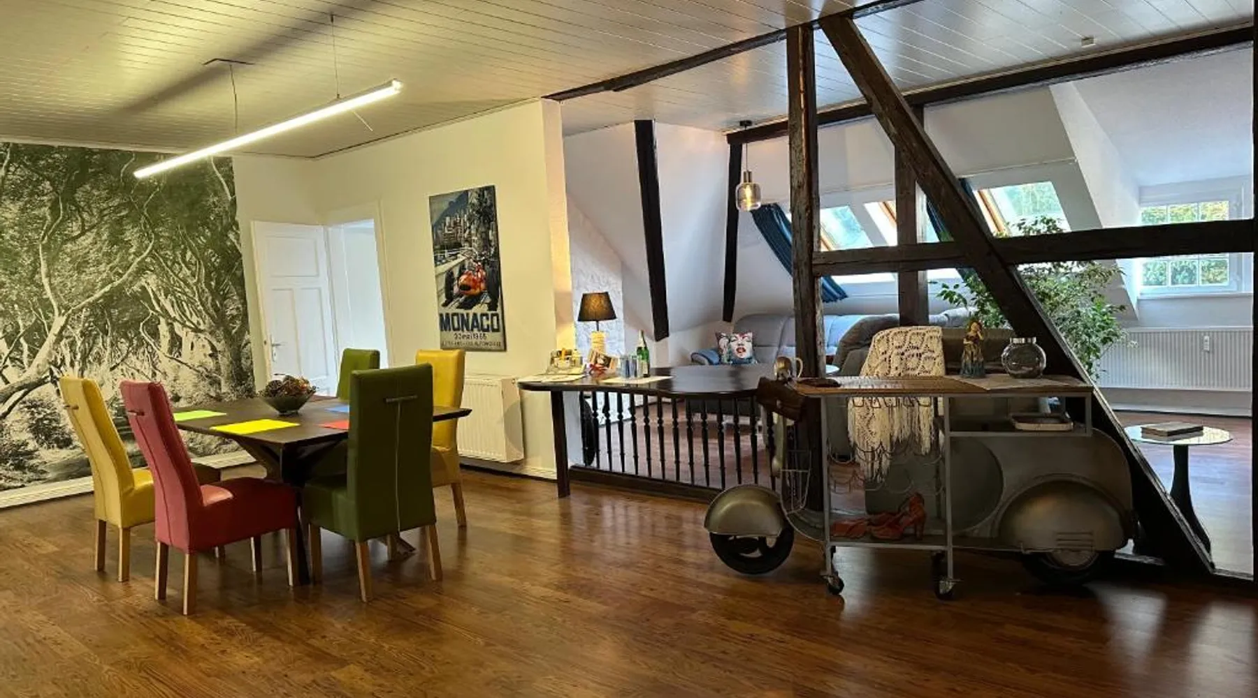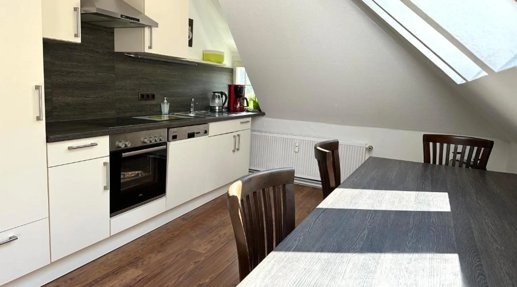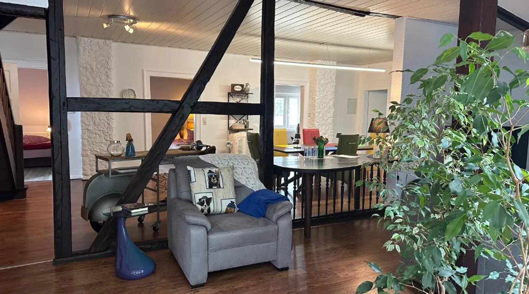 Comfortable Accommodations: Remedium Appartements in Vlotho offers a spacious apartment with a balcony, patio, and garden views. The property features a fully equipped kitchen, private bathroom, and a washing machine. Modern Amenities: Guests enjoy free WiFi, a waterpark, coffee shop, outdoor seating area, and a tour desk. Additional facilities include a work desk, dining area, and a terrace. Convenient Location: Located 48 mi from Hannover Airport, the apartment is near attractions such as GOP Varieté-Theater (5 mi) and Kurpark (5.6 mi). Cycling enthusiasts can explore the surrounding area. Guest Satisfaction: Highly rated by guests, the terrace, garden, and bike/bicycle facilities are particularly appreciated. This spacious apartment is consisted of of a kitchen, a seating area, 4 separate bedrooms and 2 bathrooms with a bath and a shower. Guests can make meals in the kitchen that is fitted with a stovetop, a refrigerator, a dishwasher and kitchenware. Featuring a balcony with garden views, this apartment also offers a washing machine and a flat-screen TV. The unit offers 4 beds.