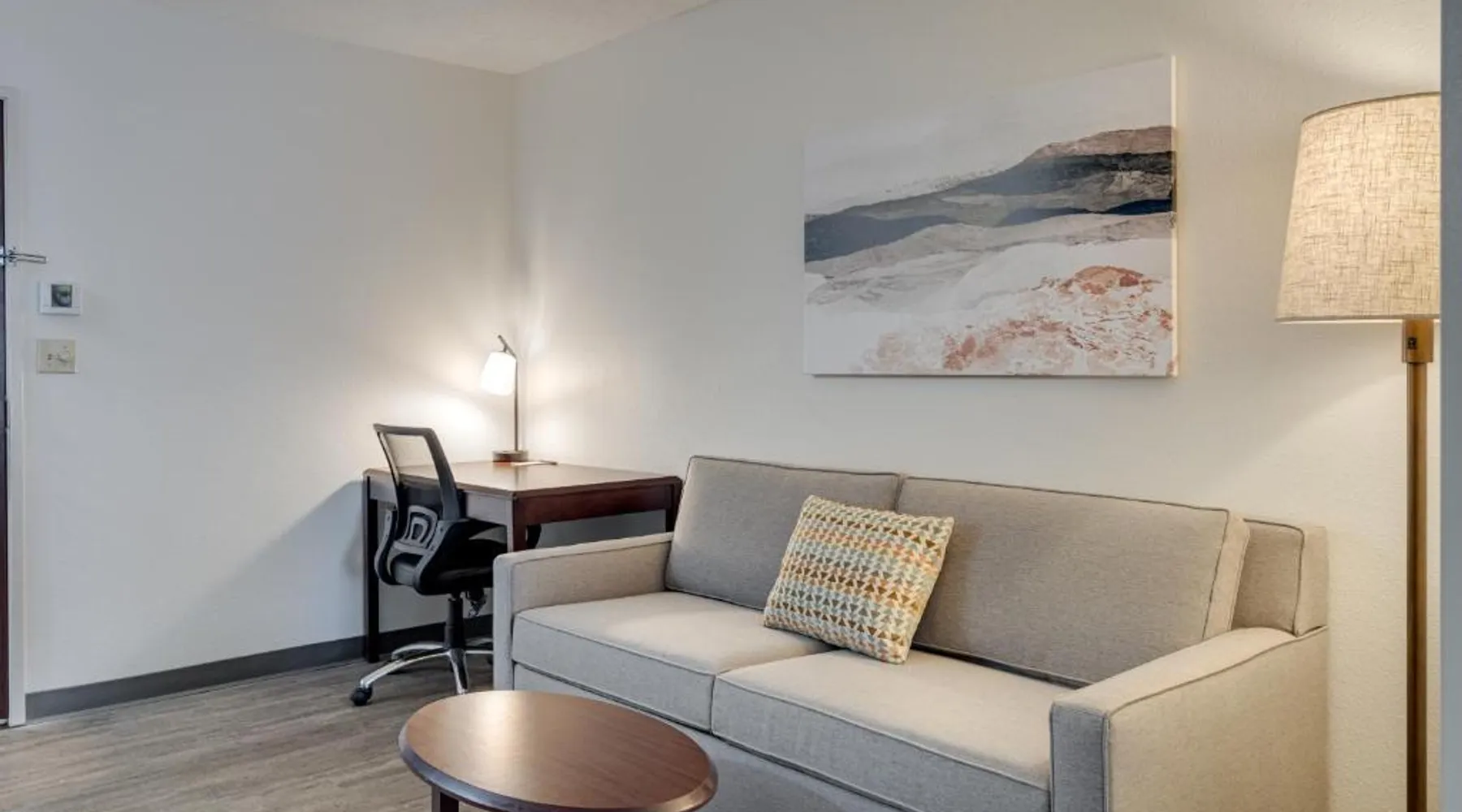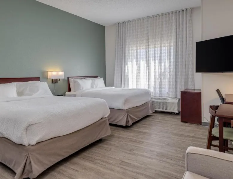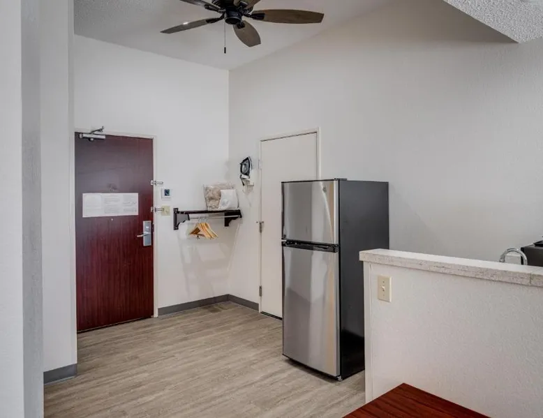 Comfortable Accommodations: MySuites Lawton in Lawton offers family rooms with air-conditioning, walk-in showers, refrigerators, work desks, and TVs. Each room includes a bath, sofa bed, and seating area, ensuring a pleasant stay. Exceptional Facilities: Guests can enjoy a fitness center, terrace, and free WiFi. Additional amenities include a lounge, 24-hour front desk, laundry service, outdoor seating and picnic areas, barbecue facilities, and free on-site private parking. Convenient Location: Located 3.1 mi from Lawton-Fort Sill Regional Airport, the hotel provides easy access to local attractions. Highly rated for its attentive staff, room cleanliness, and comfort, MySuites Lawton ensures a pleasant and memorable stay. This suite features air conditioning, a seating area and a flat-screen TV. The unit offers 3 beds.