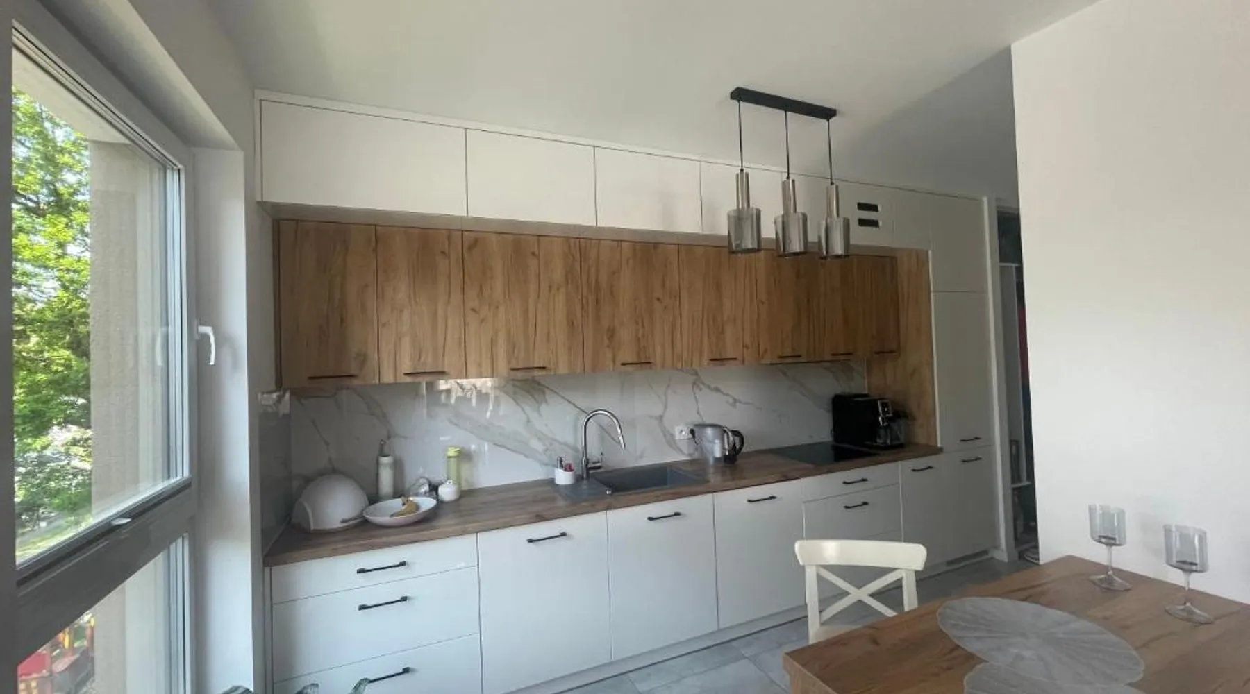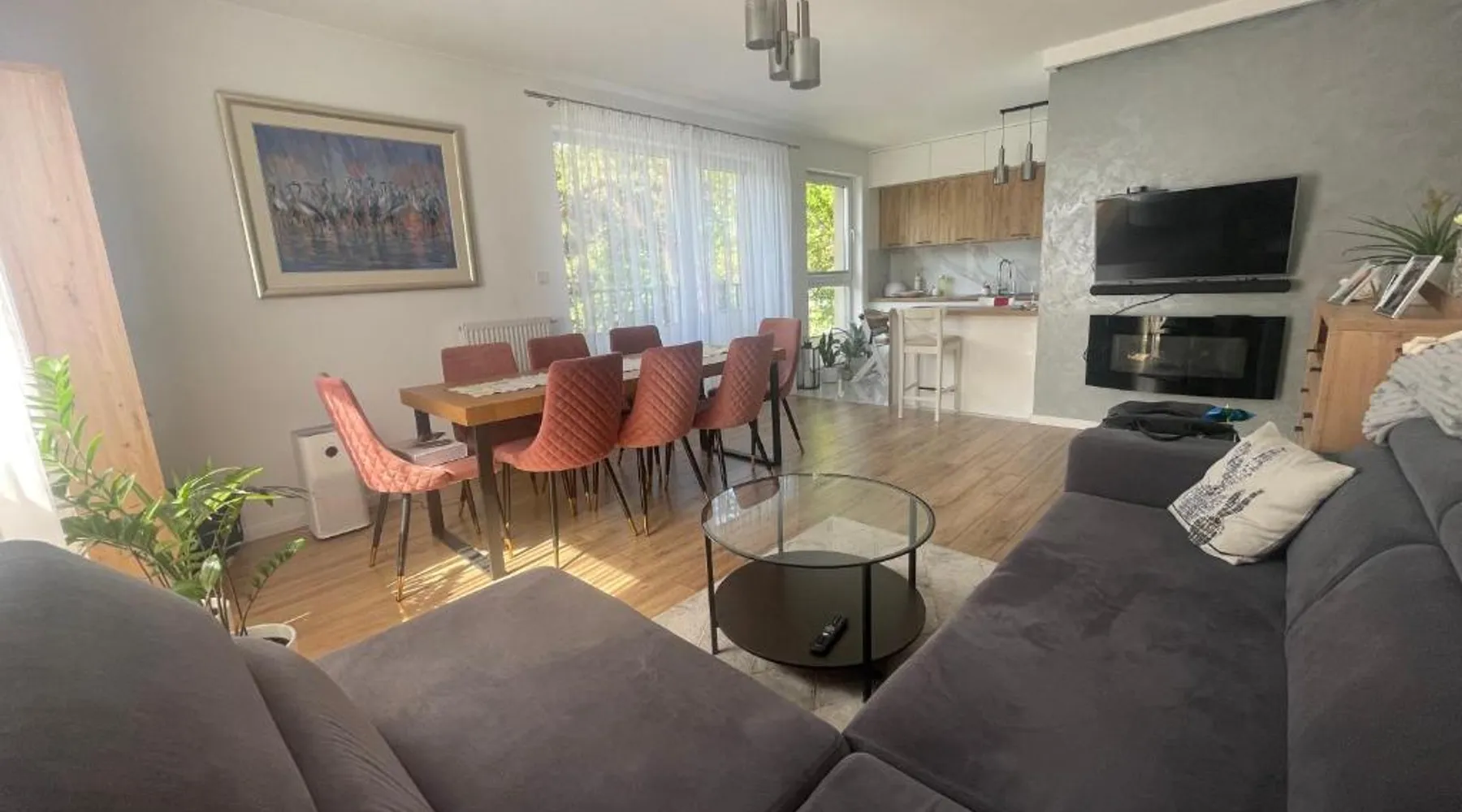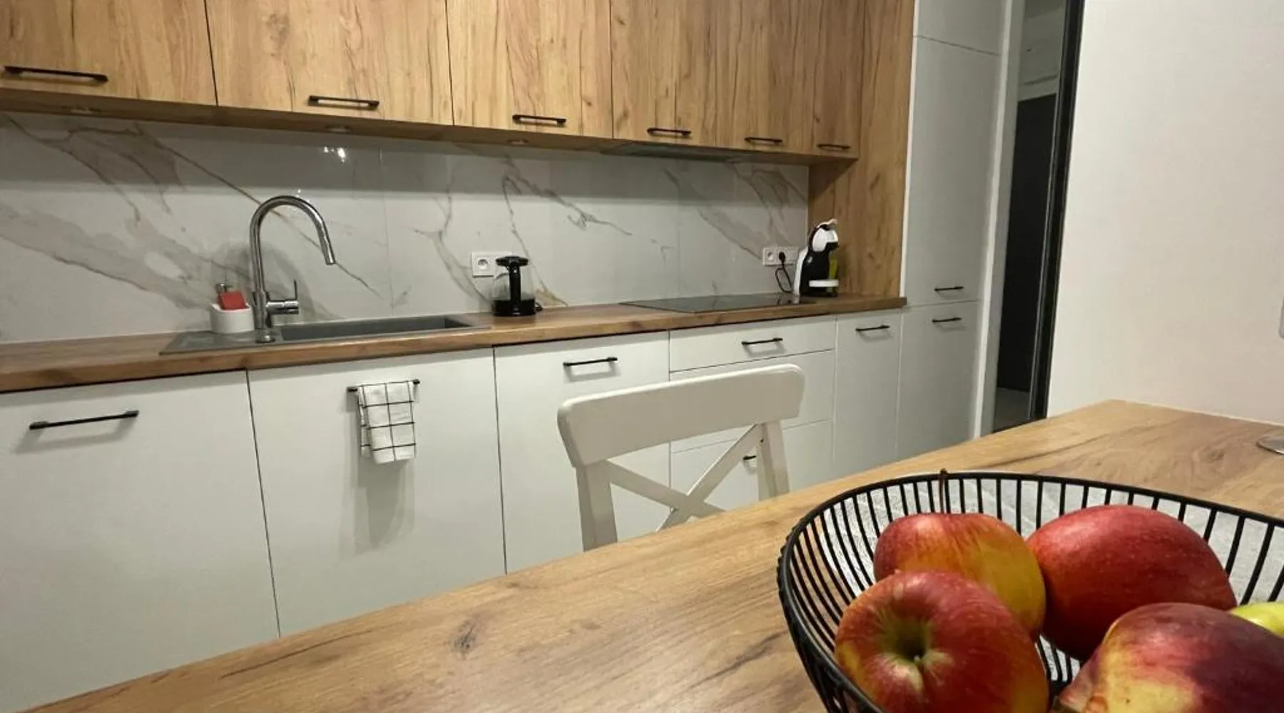 Comfortable Accommodations: Apartamenty Kościuszki in Puławy offers a one-bedroom apartment with a living room. Guests enjoy free WiFi, air-conditioning, and a balcony with a quiet street view. Modern Amenities: The apartment includes a fully equipped kitchen with a refrigerator, microwave, dishwasher, oven, and stovetop. Additional features include a washing machine, dining area, sofa bed, and TV. Convenient Location: Located 35 mi from Radom-Sadkow Airport, the property is near attractions such as Dwór z Moniak (8.7 mi), Castle in Janowiec on the Vistula and Kazimierz Dolny Castle (9.3 mi each), and Taras Widokowy (9.9 mi). Guest Satisfaction: Highly rated for room comfort and convenient location, Apartamenty Kościuszki ensures a pleasant stay for all visitors. This air-conditioned apartment comes with 1 living room, 1 separate bedroom and 1 bathroom with a bath. Meals can be prepared in the well-fitted kitchen, which features a stovetop, a refrigerator, a dishwasher and kitchenware. This apartment has a washing machine, a tea and coffee maker, flat-screen TV, as well as fruit for guests. The unit has 2 beds.