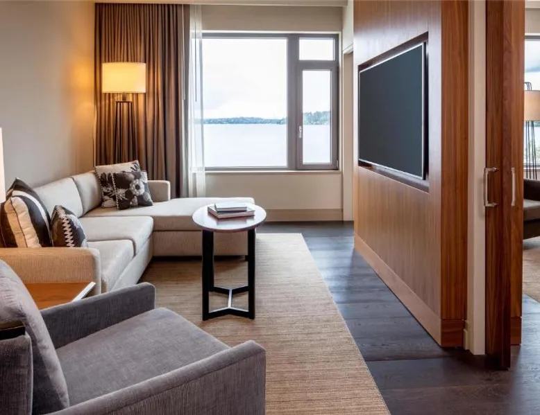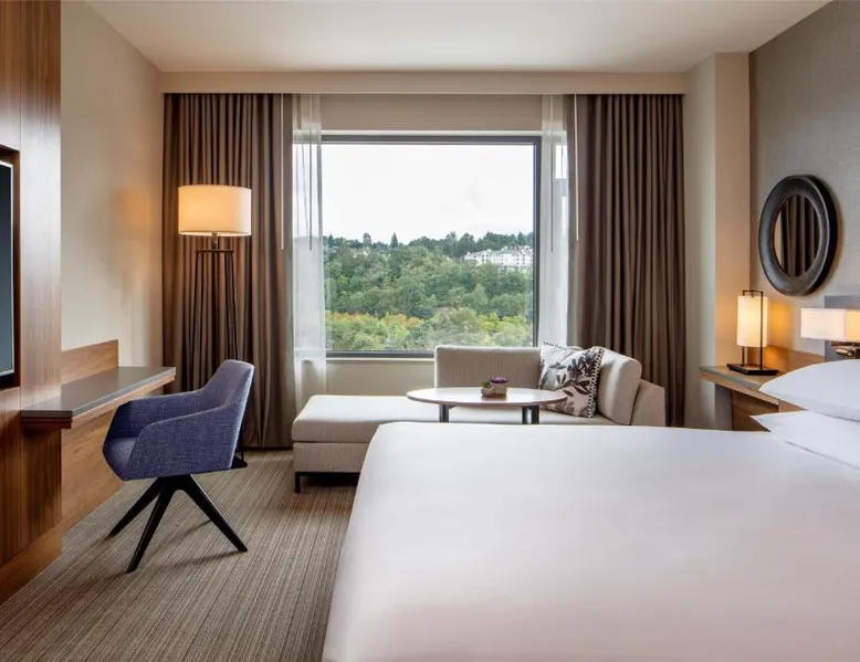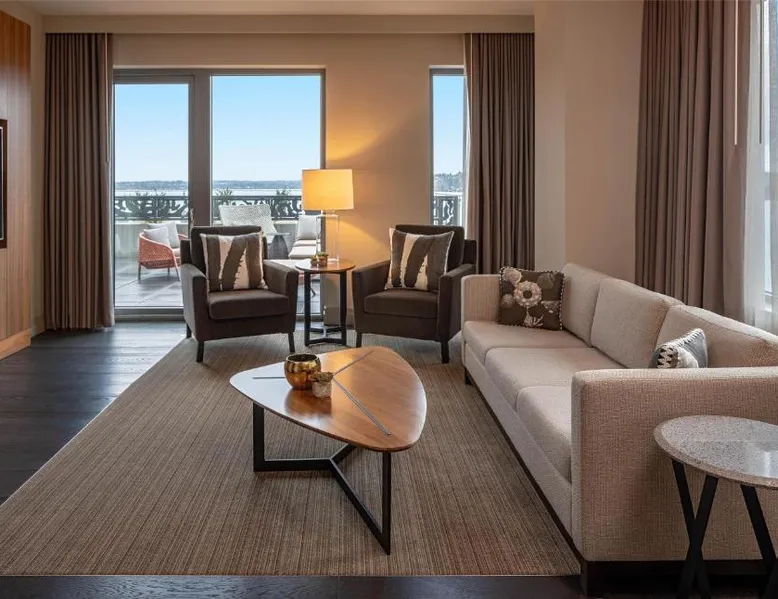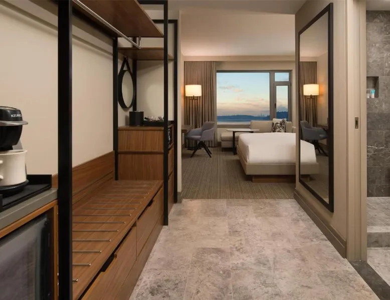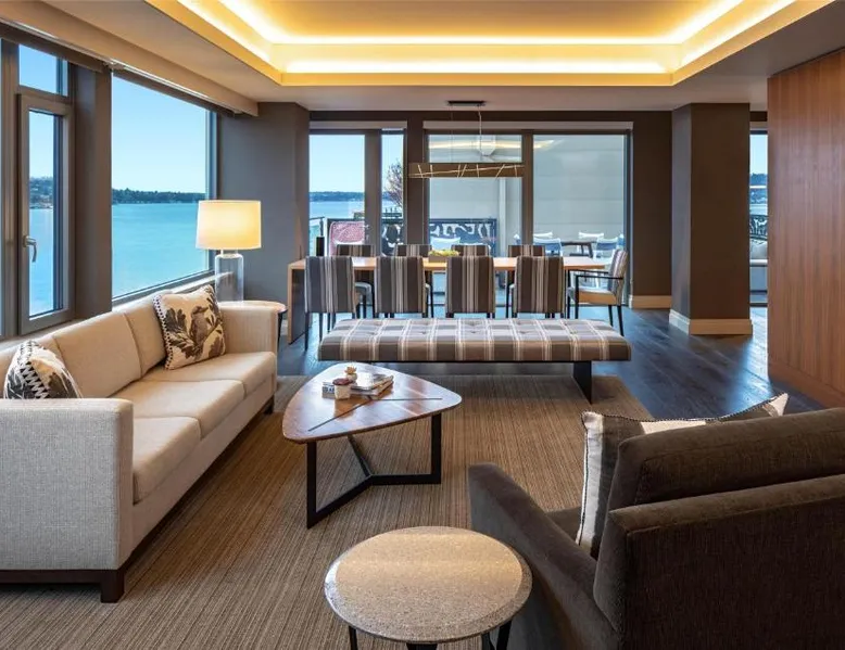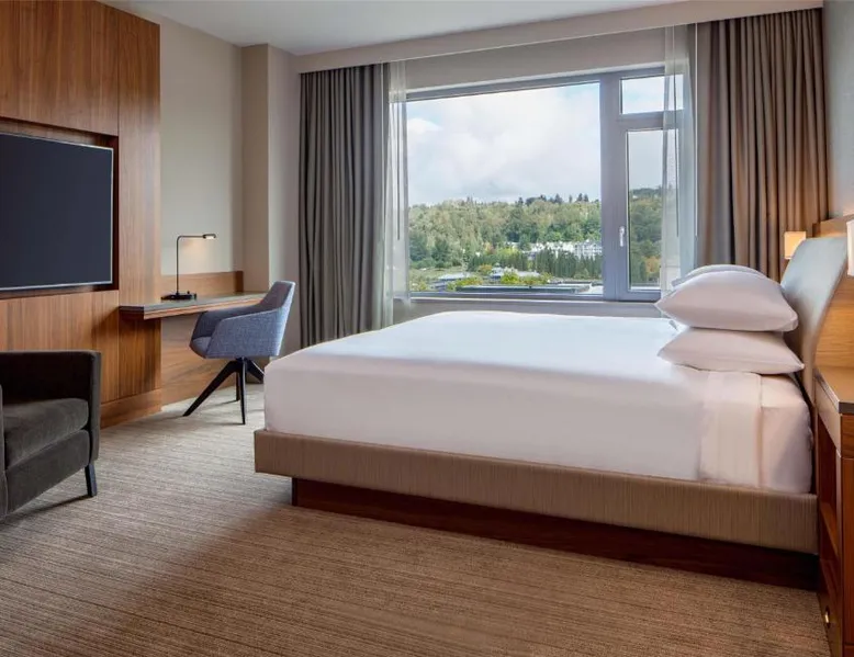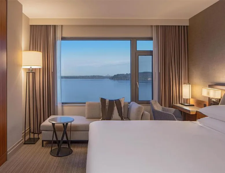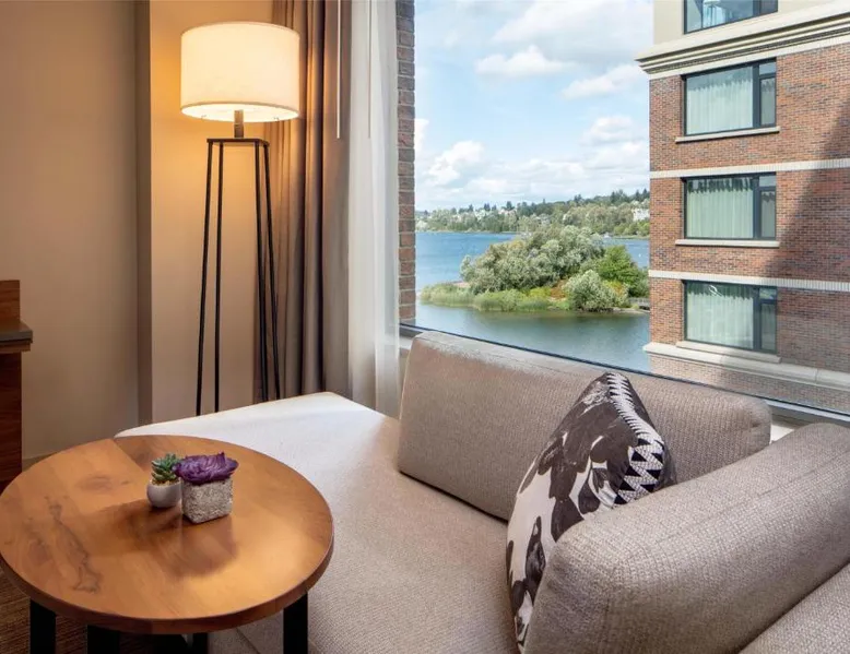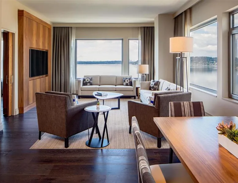 Offering a spa center and hot tub, Hyatt Regency Lake Washington at Seattle's Southport is located in Renton on the shores of Lake Washington. Downtown Seattle is within 30 minutes' drive while Mount Rainier National Park is 50 mi from the property. Some rooms at this hotel features views of Lake Washington and all rooms include a flat-screen TV. Each room comes with a private bathroom. Free WiFi access is also included. The hotel has a 24-hour fitness center and indoor saline pool, and guests can enjoy a meal at the on-site restaurant. Additional amenities include a business center and valet parking. Water's Table, located at the Hyatt Regency, offers a farm-to-table Asian and American cuisine and is open for breakfast, lunch, and dinner. Guests can purchase coffee and snacks from the on-site market 24 hours a day. Sea-Tac Airport is 6.2 mi from the property. This air-conditioned suite includes a flat-screen TV with cable channels, a private bathroom as well as a terrace with lake views.