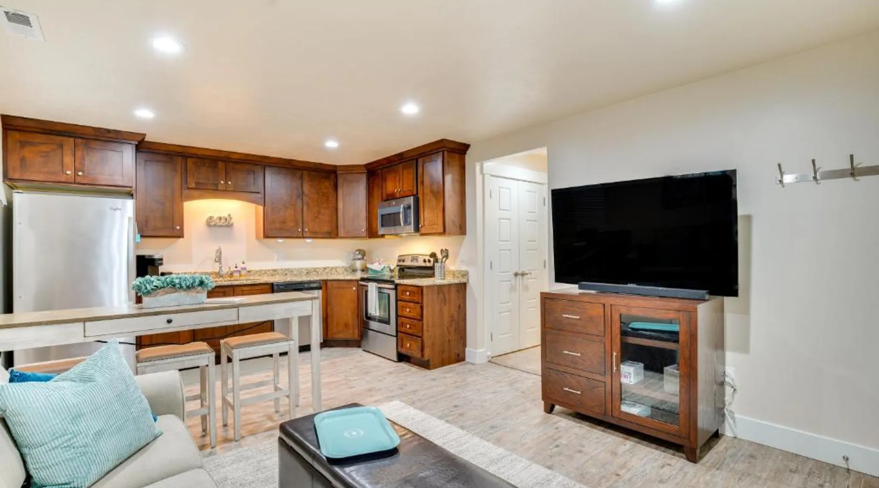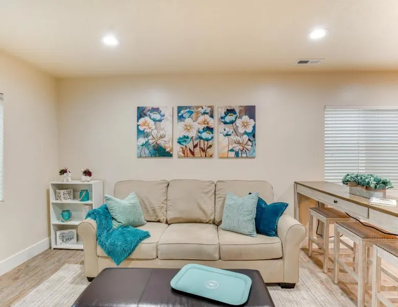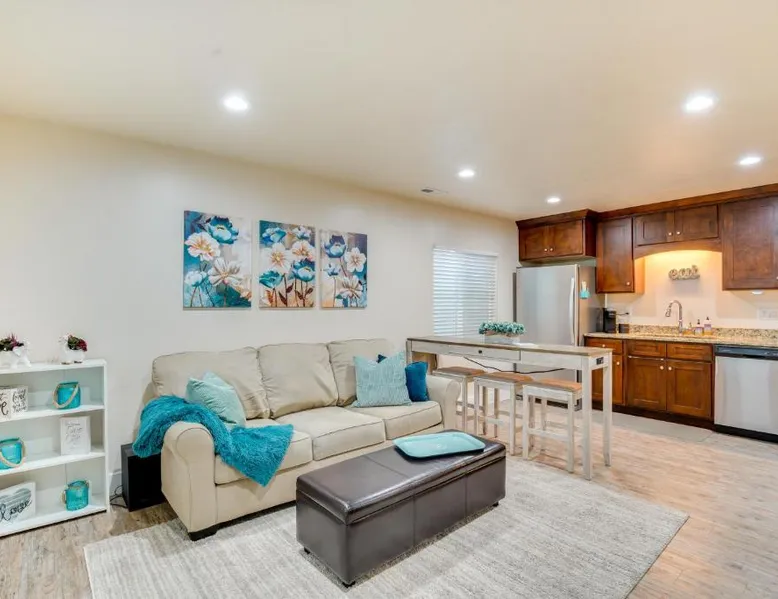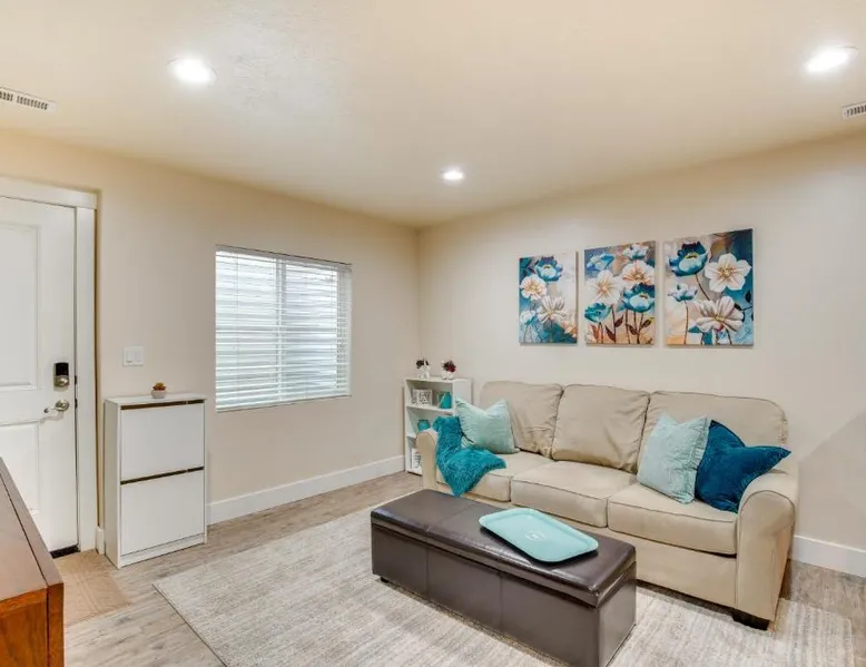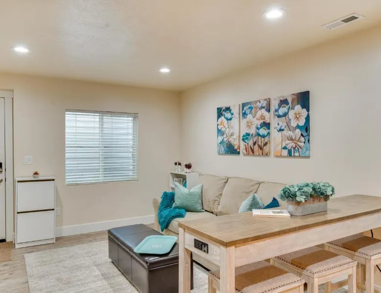 Comfortable Living Space: Modern Lehi Apartment 2 Mi to Thanksgiving Point in Lehi offers a one-bedroom apartment with a living room. The property includes a fully equipped kitchen with a coffee machine, refrigerator, microwave, dishwasher, oven, stovetop, and toaster. Essential Amenities: Guests enjoy free WiFi, air-conditioning, a TV, and a hairdryer. The apartment features a private entrance, ensuring privacy and convenience. Convenient Location: Located 22 mi from Provo Municipal Airport, the apartment is close to attractions such as Thanksgiving Point (3.7 mi), Salt Lake Tabernacle (29 mi), and Temple Square (29 mi). Hiking trails are available in the surrounding area. Highly Rated by Guests: The apartment receives high ratings for its comfortable accommodations and excellent facilities. Featuring a private entrance, this air-conditioned apartment is consisted of of 1 living room, 1 separate bedroom and 1 bathroom with a hairdryer. Meals can be prepared in the kitchen, which is fitted with a stovetop, a refrigerator, a dishwasher and kitchenware. This apartment features a coffee machine, heating and a flat-screen TV with cable channels. The unit offers 1 bed.