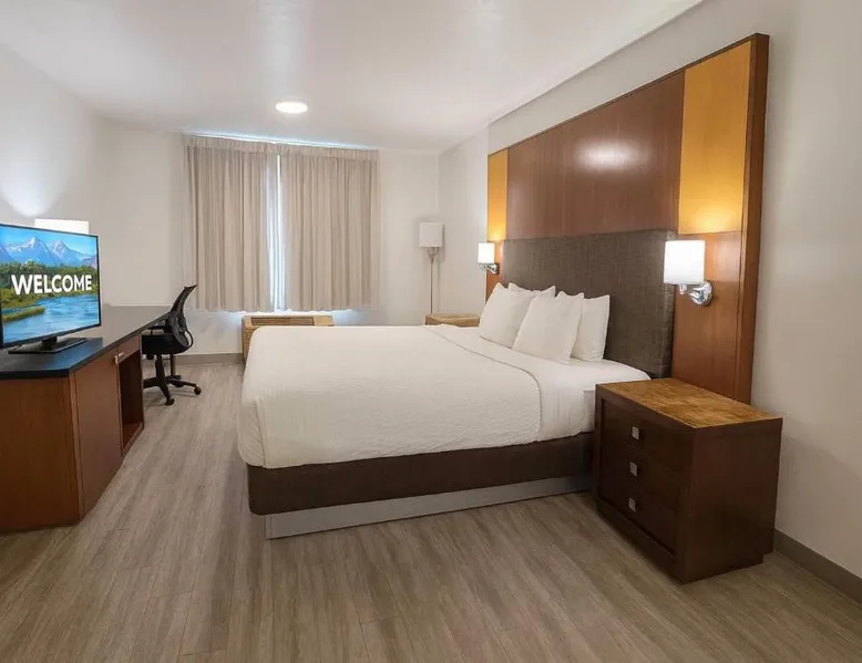 Located on the banks of Snake River, Clarion Inn Idaho Falls Riverfront offers rooms with cable TV with HBO. The hotel, one mile from the Museum of Idaho, features an indoor pool, hot tub and Snake River views. Guest rooms provide free Wi-Fi and ironing facilities. They have microwaves and refrigerators and are also equipped with hairdryers and coffee makers. A gym and business center are available to guests at Clarion Inn Idaho Falls Riverfront. The hotel serves breakfast and offers meeting rooms and laundry facilities. Clarion Inn Idaho Falls Riverfront is within 2 miles of the Art Museum of Eastern Idaho and Tautphaus Park Zoo. It is within 24 miles of Heise Hot Springs and Mountain River Ranch. The spacious double room features air conditioning, a tea and coffee maker and a seating area. The unit has 1 bed.