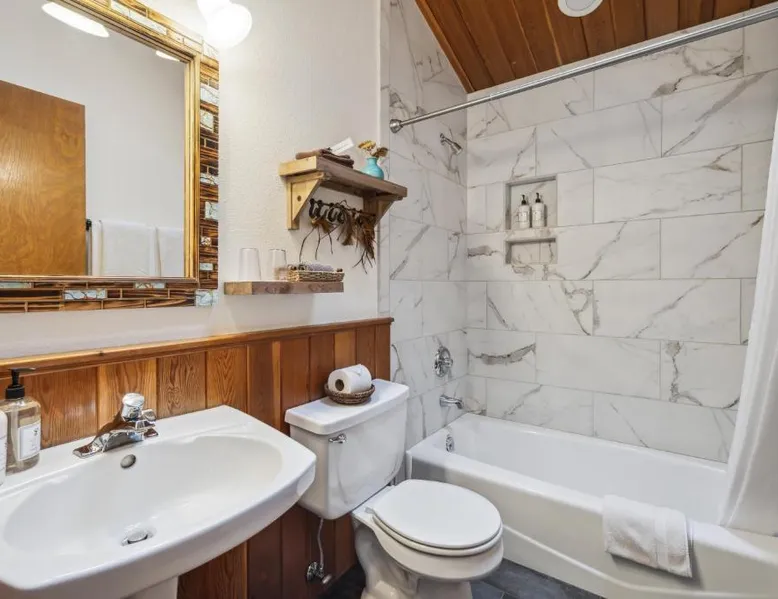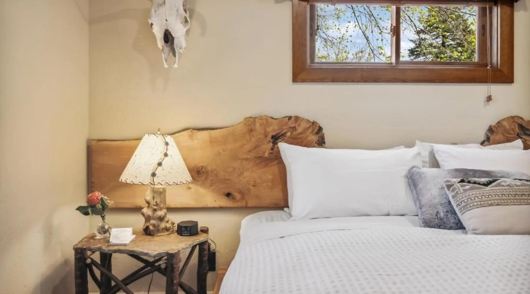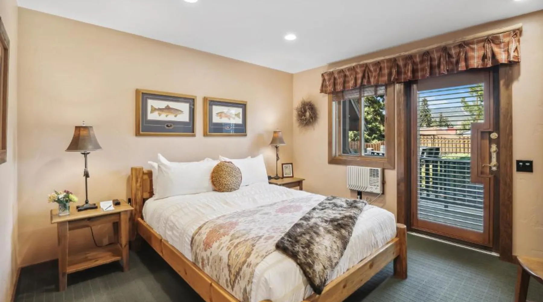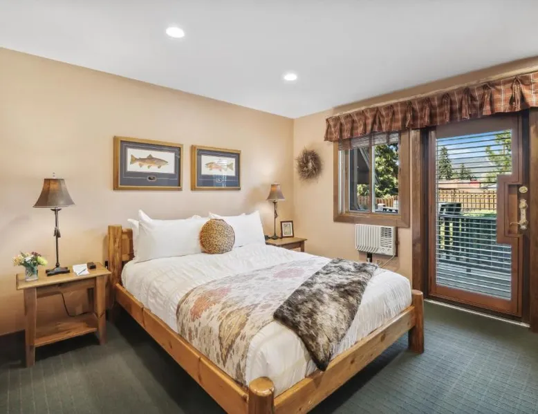 Comfortable Accommodations: Good Medicine Lodge in Whitefish offers family rooms with private bathrooms, air-conditioning, and garden or mountain views. Each room includes a mini-bar, TV, and work desk. Exceptional Facilities: Guests enjoy a sun terrace, garden, and free WiFi. Additional amenities include a hot tub, outdoor fireplace, and outdoor seating area. Free bicycles are available for exploring the surroundings. Delicious Breakfast: A variety of breakfast options are served, including American, vegetarian, vegan, gluten-free, and kosher. Fresh pastries are a highlight. Convenient Location: Located 9.9 mi from Glacier Park International Airport, the lodge is near City Beach (less than 0.6 mi) and Going To The Sun Gallery (15-minute walk). An ice-skating rink is also nearby. This suite's special feature is the hot tub. This spacious suite consists of 1 living room, 2 separate bedrooms and 2 bathrooms with a bath and free toiletries. This air-conditioned suite includes a dining area, a flat-screen TV with streaming services a mini-bar and a terrace. The unit offers 3 beds.