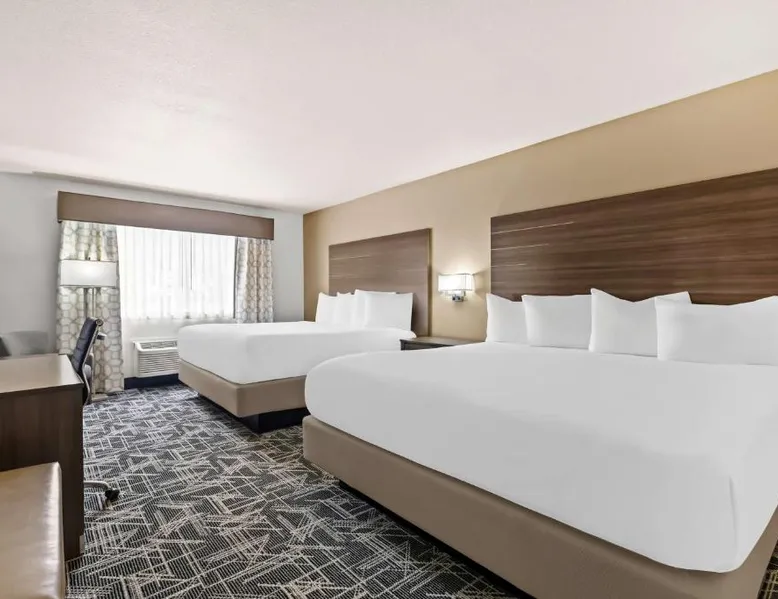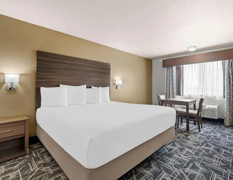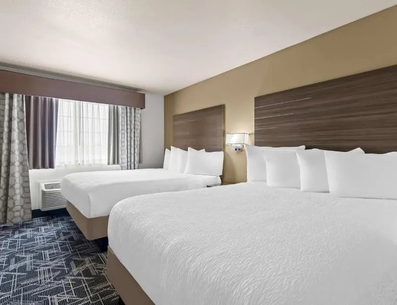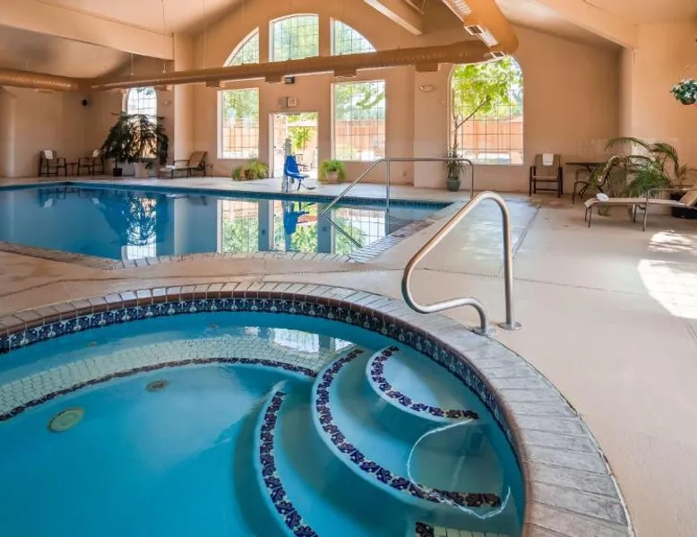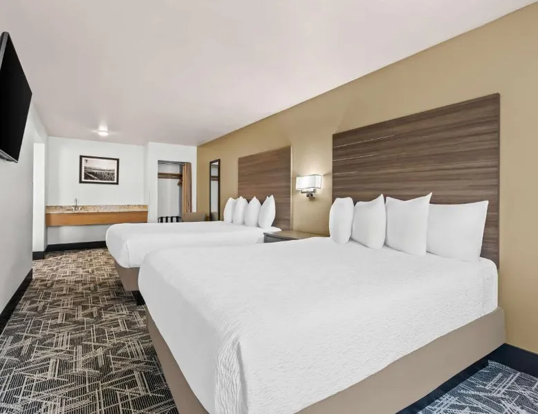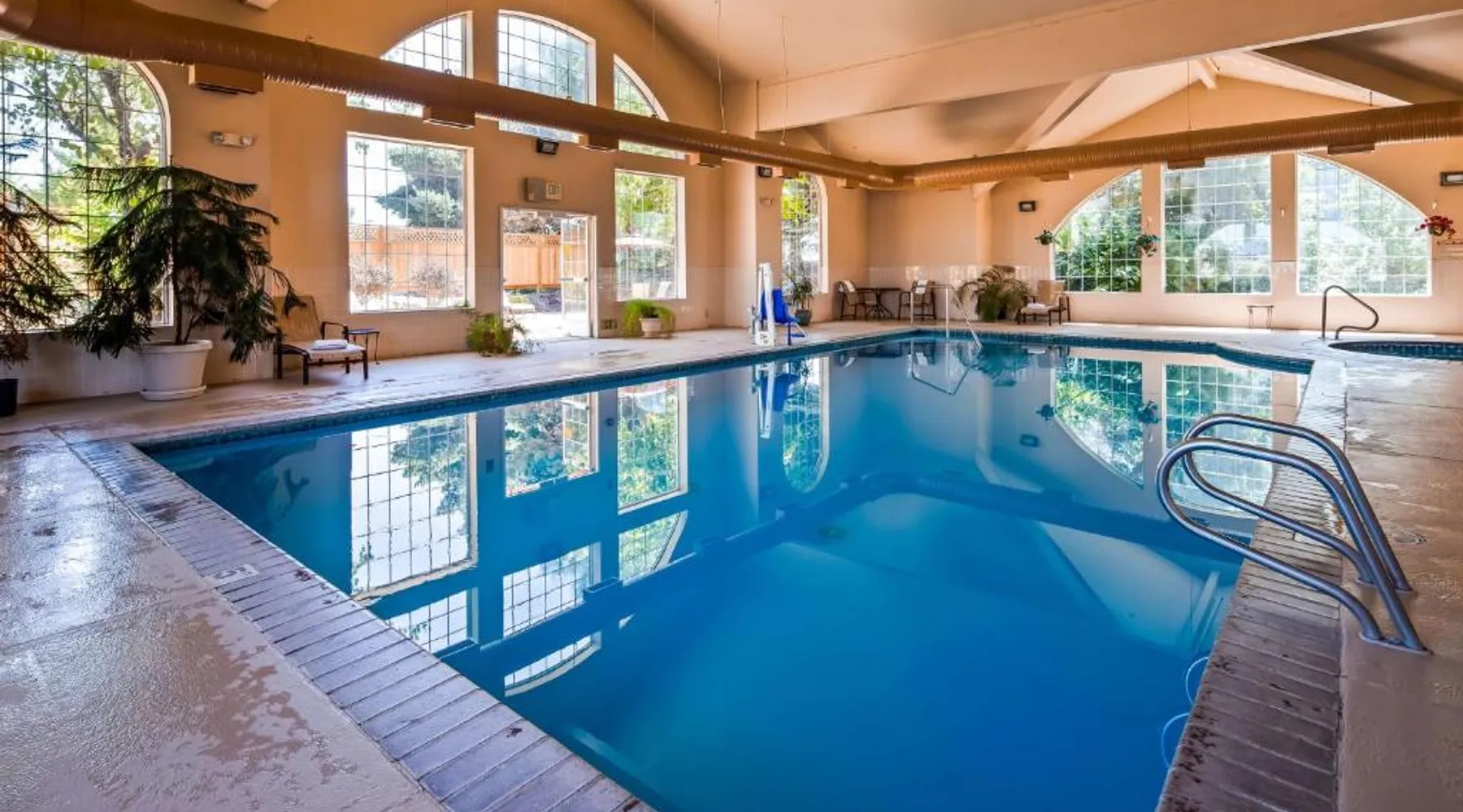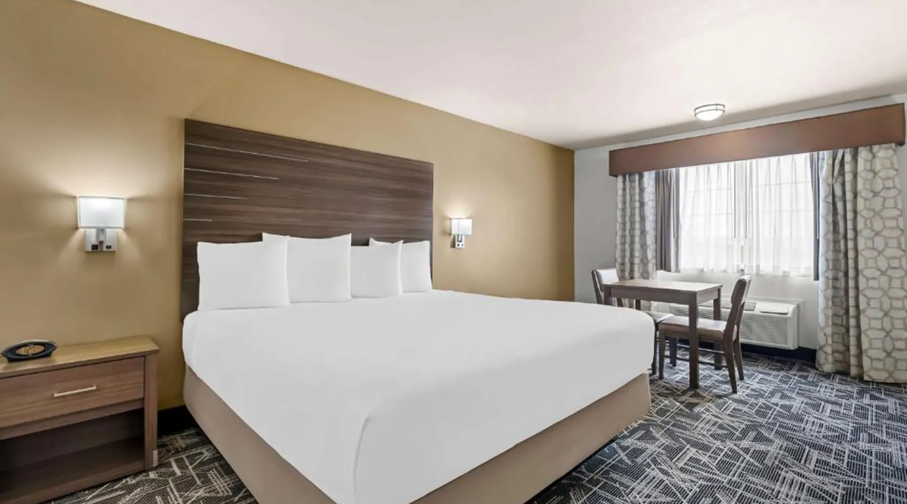 Comfortable Accommodations: Best Western Plus Caldwell Inn & Suites in Caldwell offers family rooms with air-conditioning, free WiFi, and amenities such as a work desk and microwave. Each room includes a tea and coffee maker, refrigerator, and flat-screen TV. Leisure Facilities: Guests can enjoy a fitness center, indoor swimming pool, and hot tub. Additional facilities include a minimarket, business area, outdoor seating, picnic area, and barbecue facilities. Free on-site private parking is available. Dining Options: A buffet breakfast with American and vegan options is served daily. Breakfast includes juice, fresh pastries, pancakes, cheese, and fruits. Location and Attractions: Located 24 mi from Boise Airport, the hotel is near attractions such as Extramile Arena (27 mi) and Roaring Springs Water Park (16 mi). Guests appreciate the friendly staff and excellent service. The spacious double room offers air conditioning, a tea and coffee maker and a seating area. The unit has 1 bed.