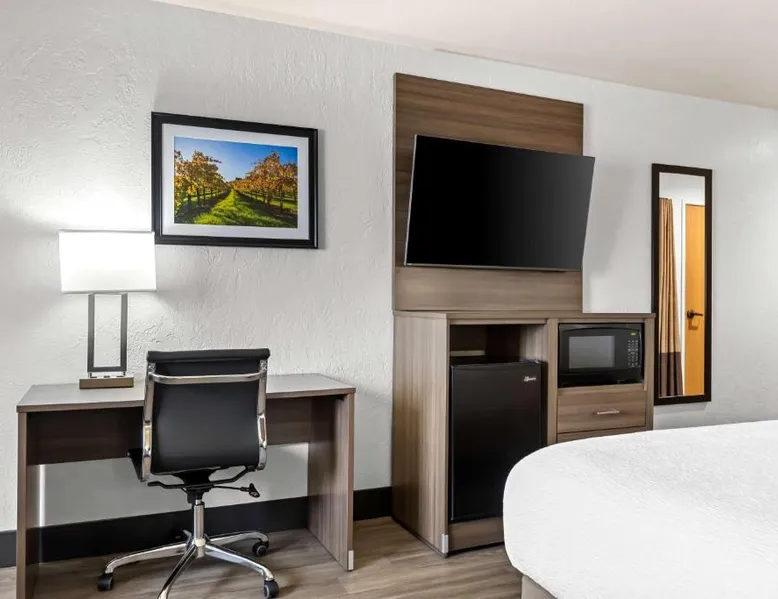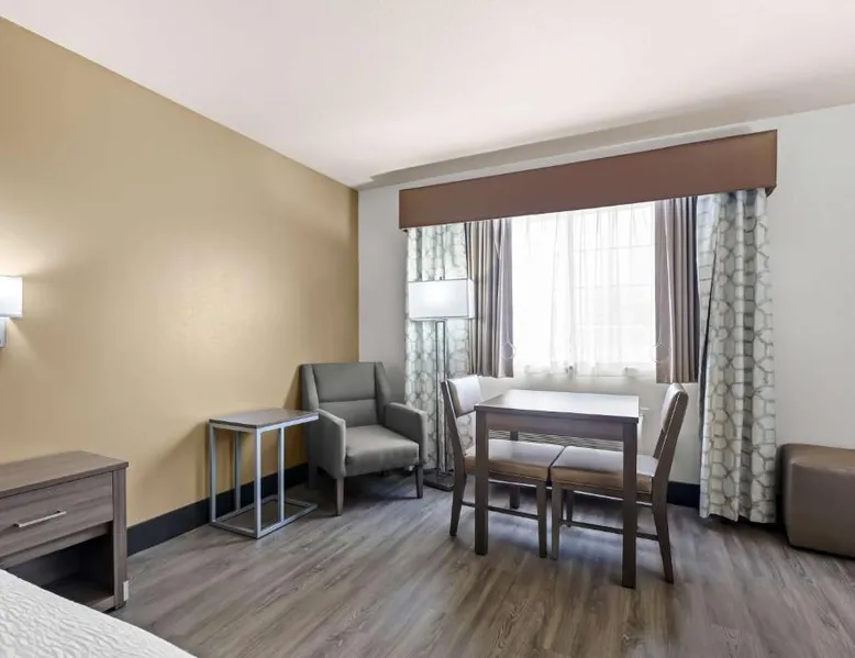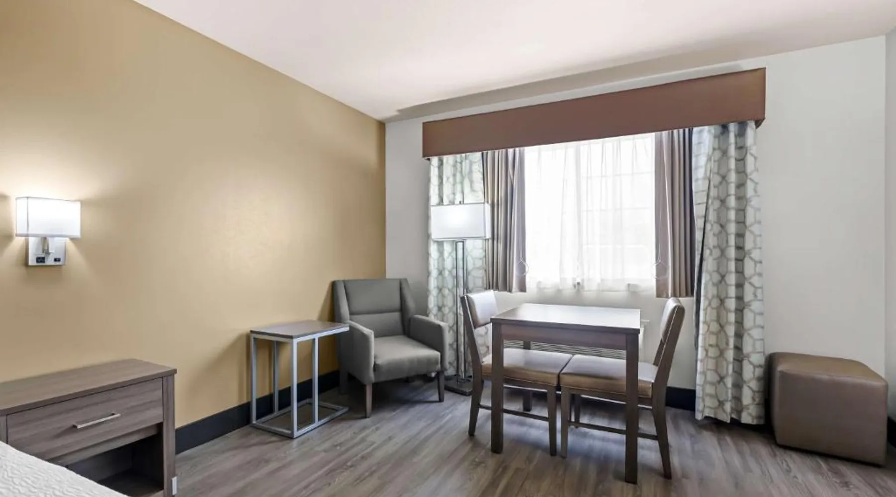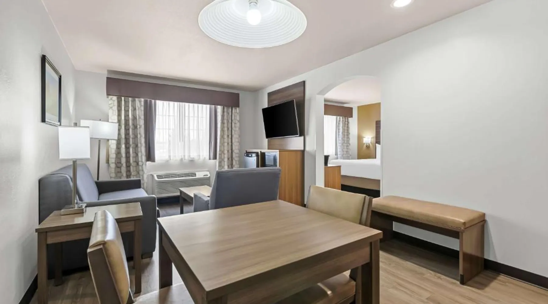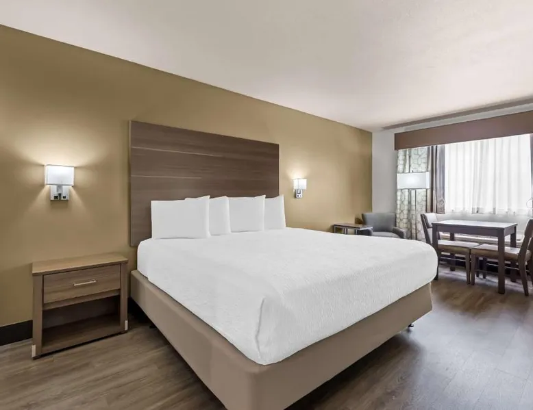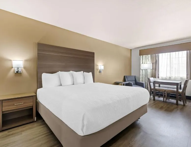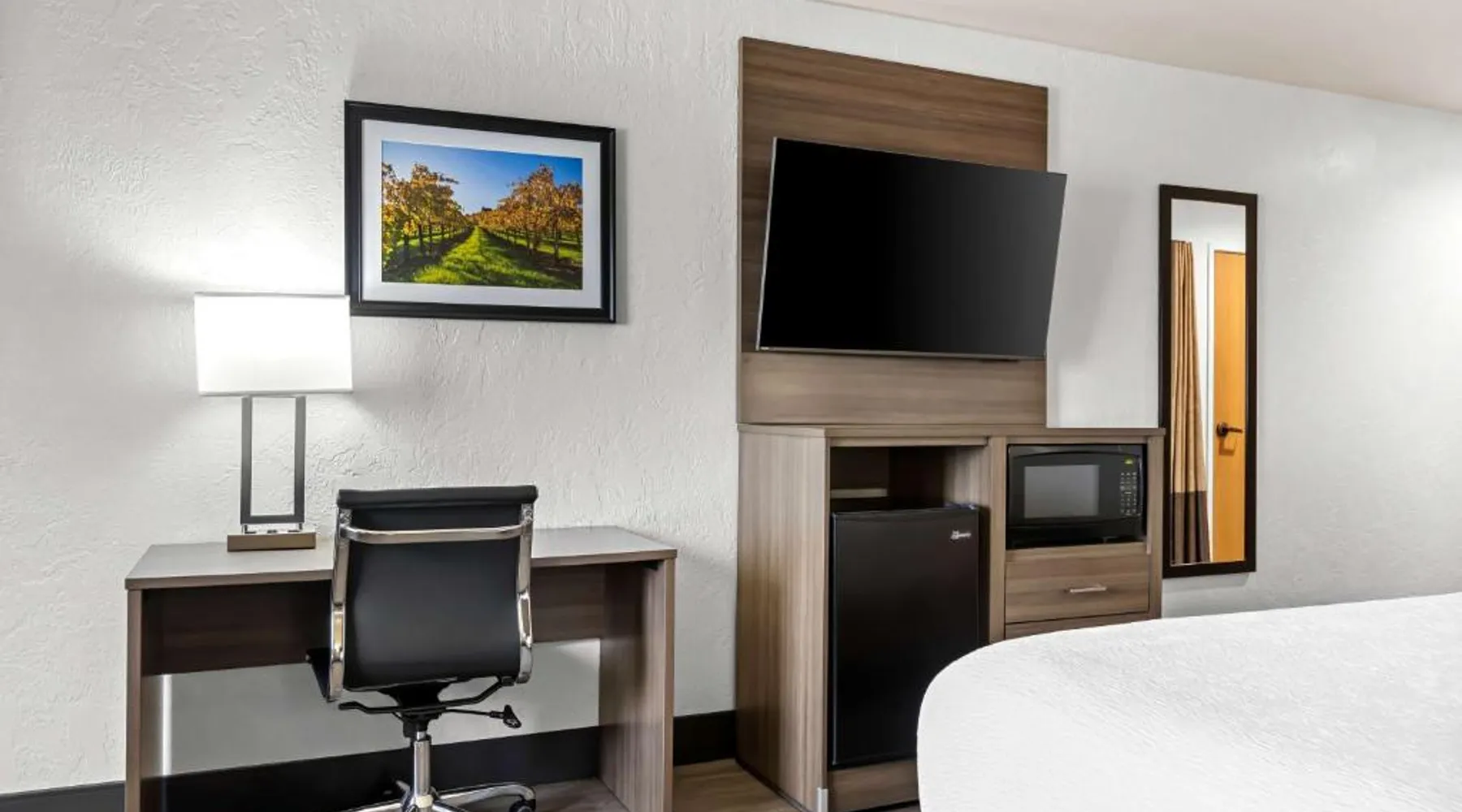 Comfortable Accommodations: Best Western Plus Caldwell Inn & Suites in Caldwell offers family rooms with air-conditioning, free WiFi, and amenities such as a work desk and microwave. Each room includes a tea and coffee maker, refrigerator, and flat-screen TV. Leisure Facilities: Guests can enjoy a fitness center, indoor swimming pool, and hot tub. Additional facilities include a minimarket, business area, outdoor seating, picnic area, and barbecue facilities. Free on-site private parking is available. Dining Options: A buffet breakfast with American and vegan options is served daily. Breakfast includes juice, fresh pastries, pancakes, cheese, and fruits. Location and Attractions: Located 24 mi from Boise Airport, the hotel is near attractions such as Extramile Arena (27 mi) and Roaring Springs Water Park (16 mi). Guests appreciate the friendly staff and excellent service. The spacious double room offers air conditioning, a tea and coffee maker and a seating area. The unit has 1 bed.
