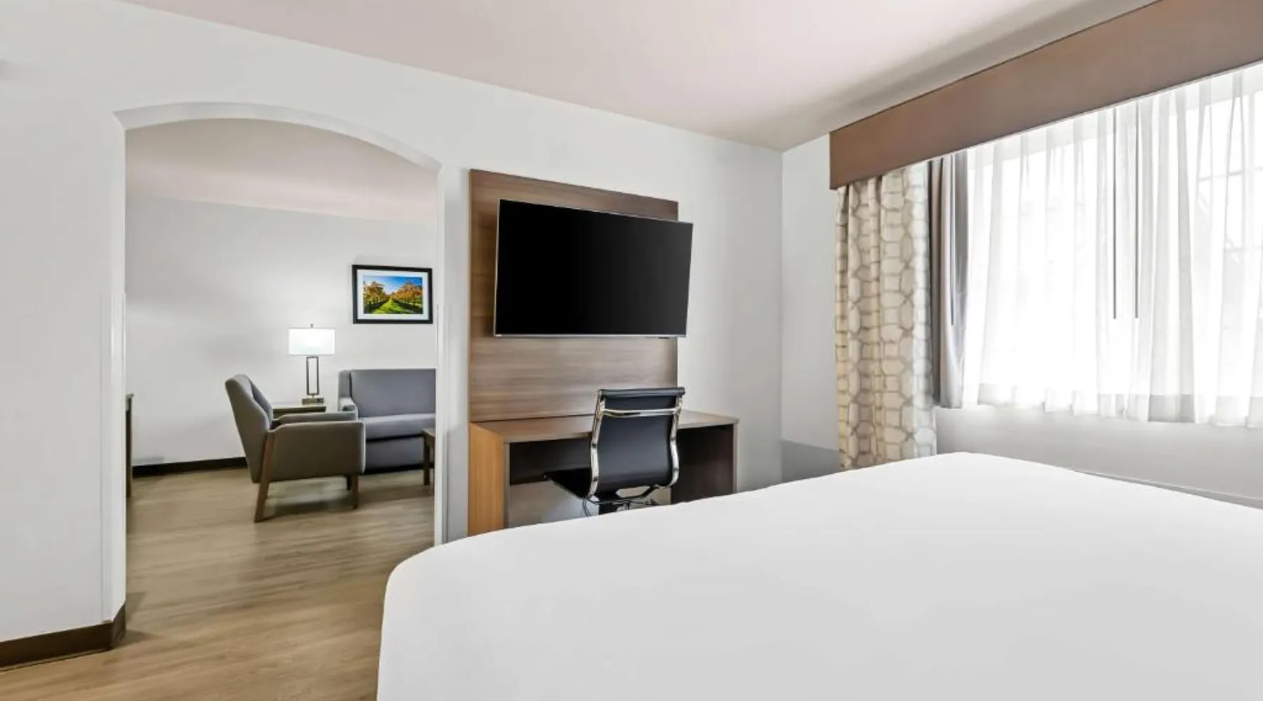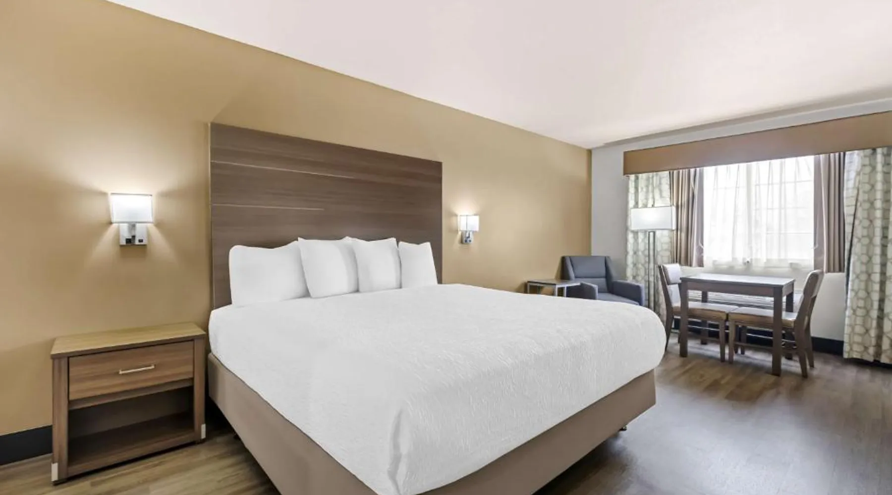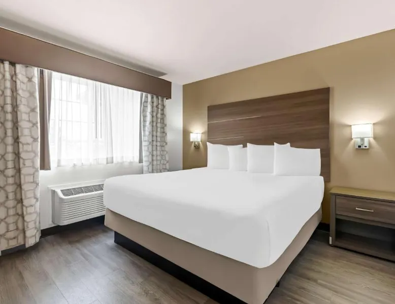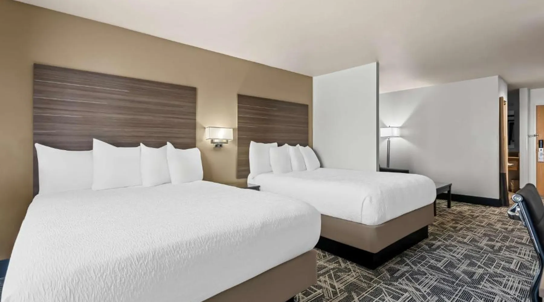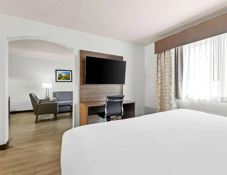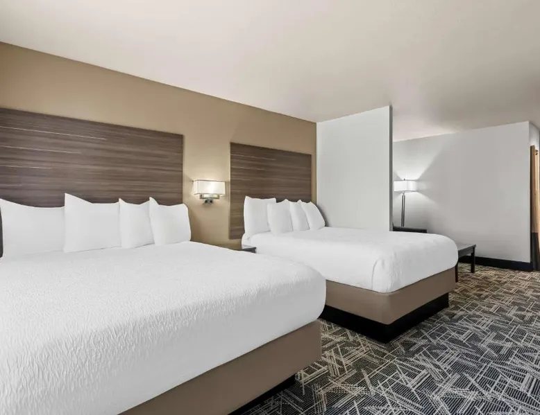 Comfortable Accommodations: Best Western Plus Caldwell Inn & Suites in Caldwell offers family rooms with air-conditioning, free WiFi, and amenities such as a work desk and microwave. Each room includes a tea and coffee maker, refrigerator, and flat-screen TV. Leisure Facilities: Guests can enjoy a fitness center, indoor swimming pool, and hot tub. Additional facilities include a minimarket, business area, outdoor seating, picnic area, and barbecue facilities. Free on-site private parking is available. Dining Options: A buffet breakfast with American and vegan options is served daily. Breakfast includes juice, fresh pastries, pancakes, cheese, and fruits. Location and Attractions: Located 24 mi from Boise Airport, the hotel is near attractions such as Extramile Arena (27 mi) and Roaring Springs Water Park (16 mi). Guests appreciate the friendly staff and excellent service. The spacious double room offers air conditioning, a tea and coffee maker and a seating area. The unit has 1 bed.