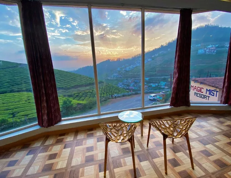 Elegant Accommodations: MAGIC MIST RESORT in Ooty offers family rooms with mountain views, private bathrooms, and modern amenities. Each room includes air-conditioning, a work desk, and a seating area. Outdoor Spaces: Guests can relax in the garden or on the terrace, enjoying the serene surroundings. The resort features an outdoor fireplace and a picnic area, perfect for leisure activities. Convenient Services: Private check-in and check-out, a 24-hour front desk, and free on-site parking ensure a comfortable stay. Additional services include room service, housekeeping, and a paid shuttle. Local Attractions: Ooty Lake is 3.7 mi away, Ooty Rose Garden 1.9 mi, and Ooty Botanical Gardens 2.5 mi. Other points of interest include Ooty Railway Station and Doddabetta Peak, each within 3.1 mi. Featuring a private entrance, this air-conditioned suite consists of 1 living room, 1 separate bedroom and 1 bathroom with a shower. This suite features a tea and coffee maker, a tiled floor and a flat-screen TV with satellite channels. The unit offers 1 bed.