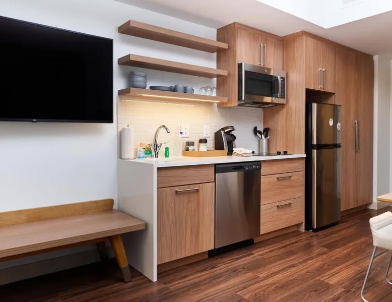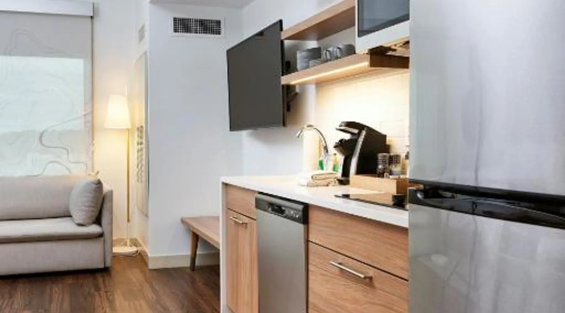 Comfortable Accommodations: Element Chattanooga East in Chattanooga offers family rooms with air-conditioning, private bathrooms, and free WiFi. Each room includes a kitchenette, work desk, and modern amenities. Exceptional Facilities: Guests can enjoy a fitness center, sun terrace, seasonal outdoor swimming pool, and free bicycles. Additional facilities include a restaurant, bar, lounge, and outdoor fireplace. Delicious Breakfast: A variety of breakfast options are available, including American, buffet, Ã la carte, vegetarian, vegan, and gluten-free. Fresh pastries, warm dishes, and juice enhance the morning experience. Prime Location: Located 3.1 mi from Chattanooga Metropolitan Airport, the hotel is near attractions such as Tennessee Aquarium (9.9 mi) and Chattanooga Zoo (8.7 mi). Free on-site private parking and walking tours are provided. In the well-fitted kitchenette, guests will find a refrigerator, kitchenware, a microwave and a tea and coffee maker. This air-conditioned double room is consisted of of a flat-screen TV with cable channels and a private bathroom. The unit has 1 bed.