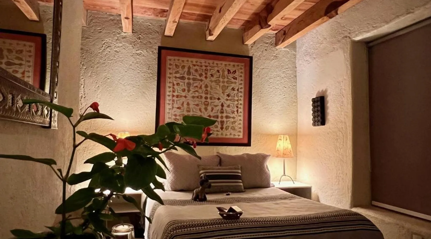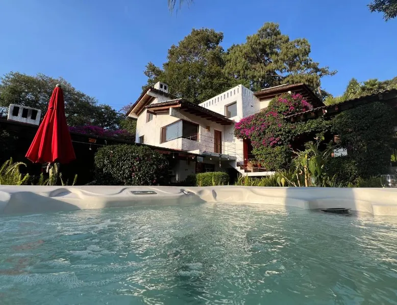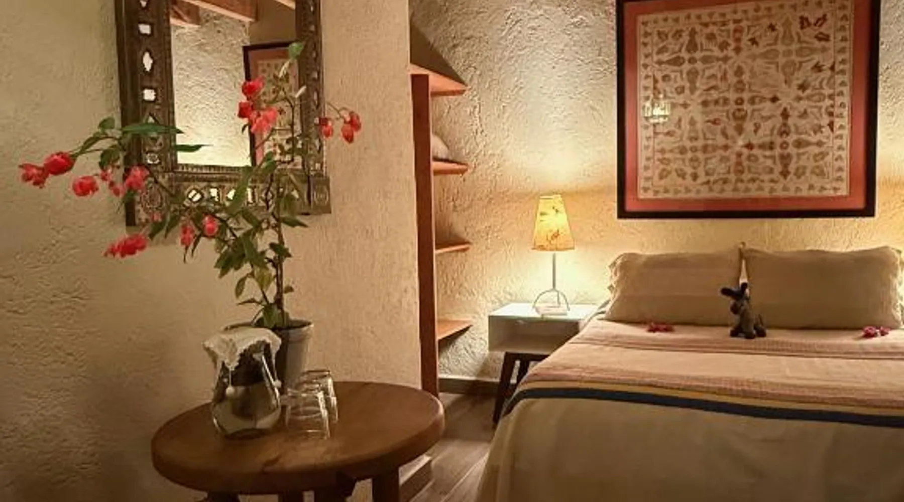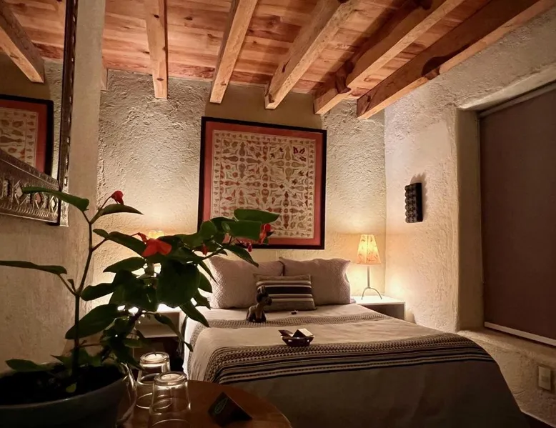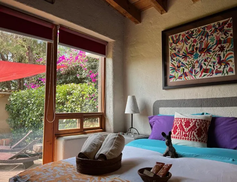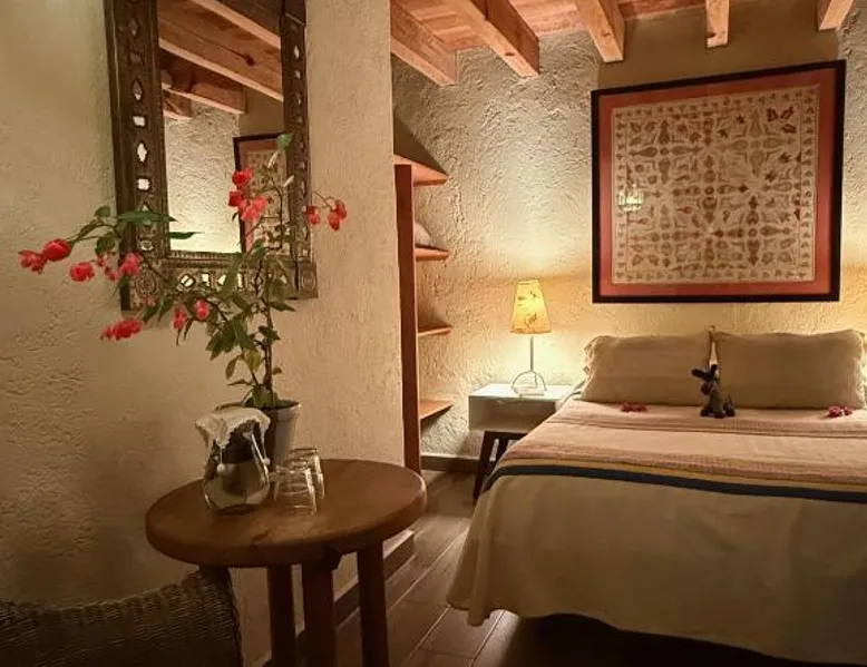 Elegant Accommodations: Las Luciernagas Bed and Breakfast Adults Only in Valle de Bravo offers comfortable rooms with private bathrooms, balconies, and garden or mountain views. Each room includes a terrace, work desk, and free WiFi. Relaxing Facilities: Guests can unwind on the sun terrace, enjoy the garden, or take a dip in the hot tub. The property features an outdoor fireplace, solarium, and outdoor seating area. Wellness packages and a shared kitchen enhance the stay. Convenient Services: The hotel provides free on-site private parking, daily housekeeping, room service, and a tour desk. Additional amenities include a coffee machine, microwave, and dining area. Local Attractions: Located 4.3 mi from Cascadas Velo de Novia and 52 mi from Lic. Adolfo López Mateos International Airport, the property offers easy access to local points of interest. This split-level suite offers a private terrace with panoramic views of the surrounding countryside. It has 1 king-size bed and 1 double bed, a fireplace, dining table and kitchenette with microwave, mini-bar and coffee maker. There is a flat-screen TV and DVD player and a spacious bathroom. Please note that the price is based on 2 guests. Maximum occupancy is 4 (see Hotel Policies).